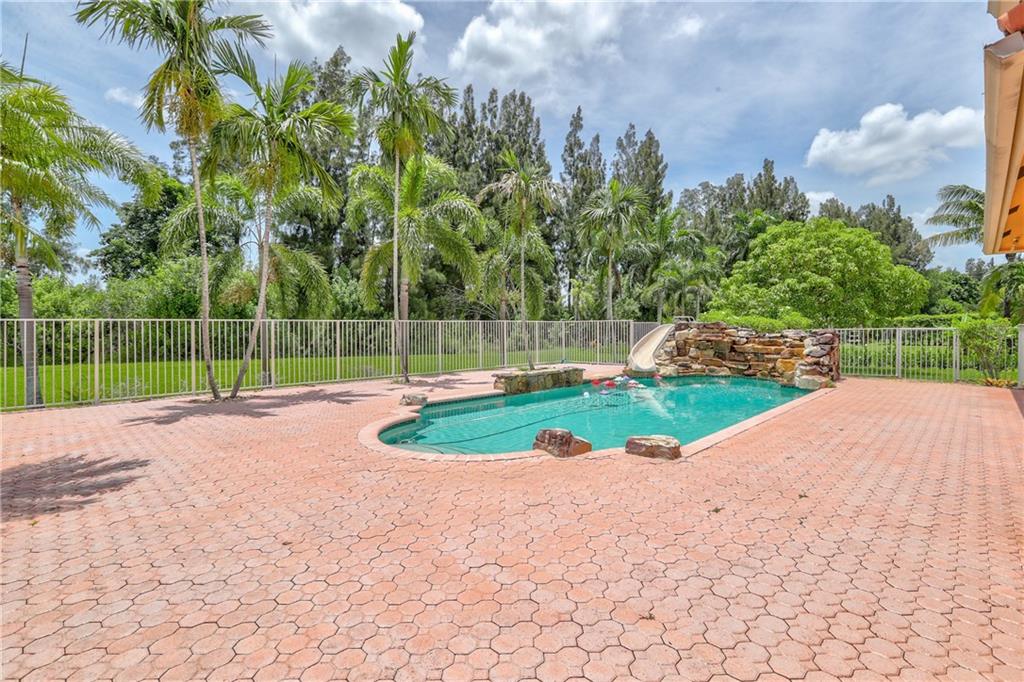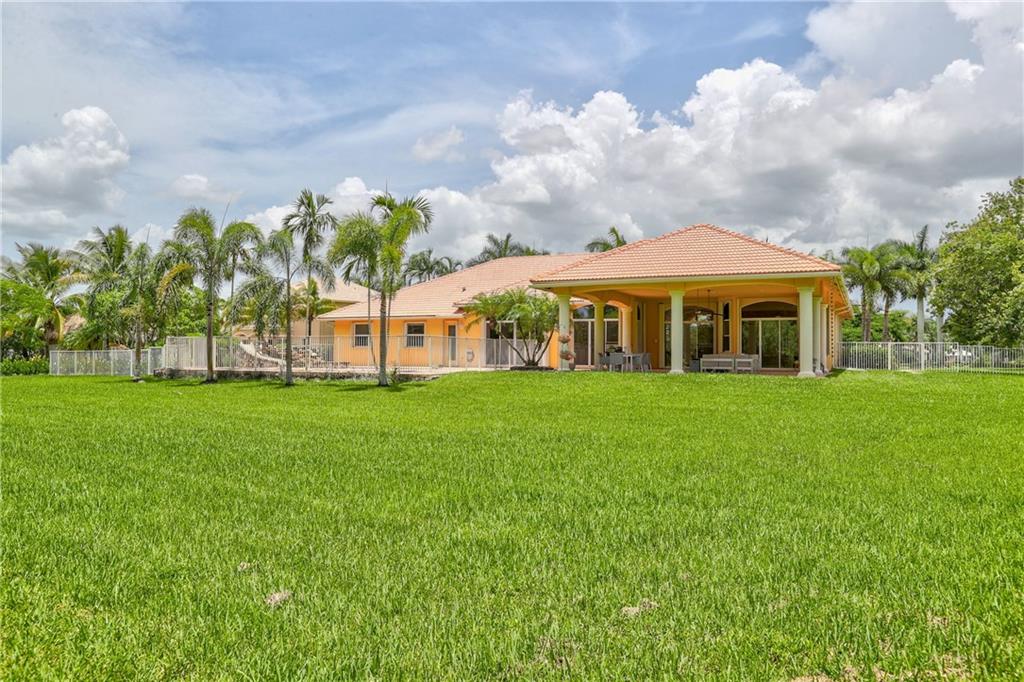 Gorgeous Estate Home in Guard Gated Community of Emerald Springs! Enormous 1200+ sq ft overhang/ porch area great for entertaining. Well appointed on 1+ acre/47000+ sq ft pie shaped lot! Brand New Renovated kitchen with white shaker door wood cabinetry, waterfall granite counter tops and stainless steel appliances. Accordion Shutters & Impact Garage Doors. Split floor plan pool home with 5 bed 4 bath plus Office. Oversized driveway lined with beautiful Royal Palms. Passive Park approved to be built on vacant land behind the home! Homes in the same neighborhood selling for over 1 Million!!