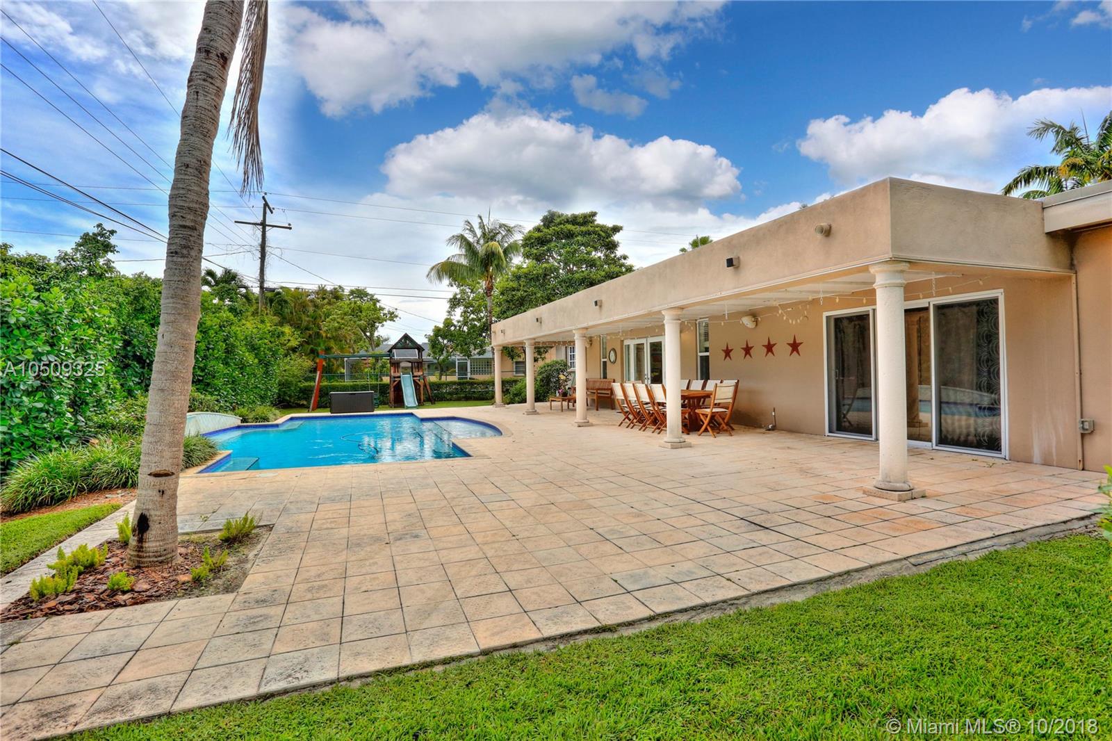 Looking for the ideal family home on a kid-friendly street near great schools? This 4 bedroom, 3.5 bath smart home has a triple-split floor plan on a 15,000 SF lot and is located within walking distance to all three Palmetto schools. The house was remodeled in 2006 with a new salt water pool, wood floors, eat-in kitchen and updated bathrooms. Newer renovations include a brand new flat roof in 2018, covered patio, cabana bath and full hurricane protection. The interior layout offers great flow through the kitchen, family room and out to the backyard pool area. The Master Suite is tucked away for privacy and the guest bedroom can double as a home office. Other features include a 2-car garage, circular driveway, Ring and Nest technology, laundry room and extra closet space.