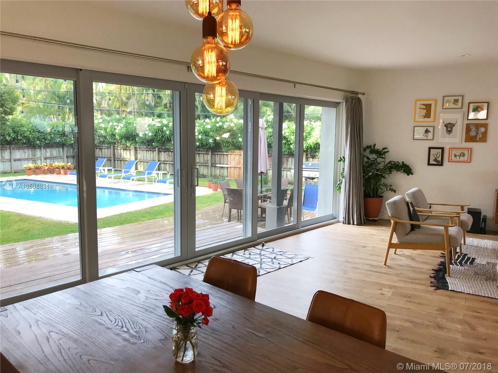 One-of-a kind, dream layout of a house, gutted and tastefully remodeled in 2017 with brand new kitchen, 3 full baths (along with plumbing) electrical, impact windows and doors. Amazing open-design main room that flows from living room into kitchen, perfect for entertaining. Beautiful wide-plank oak flooring throughout, Marca Corona terra-cotta tile design unique in each bathroom and New Mexico tiles as kitchen centerpiece. Custom oak kitchen island top, farmhouse sink, huge cupboards for storage. Gorgeous stacking wall-to-wall sliding door system, with breathtaking 13’ opening making indoor/outdoor feel like 1 space. Brand new deck steps down to 28’ pool alongside huge yard and gorgeous Japanese Blueberry tree. Cool breezes across the street from water in coveted east end of Miami Shores.