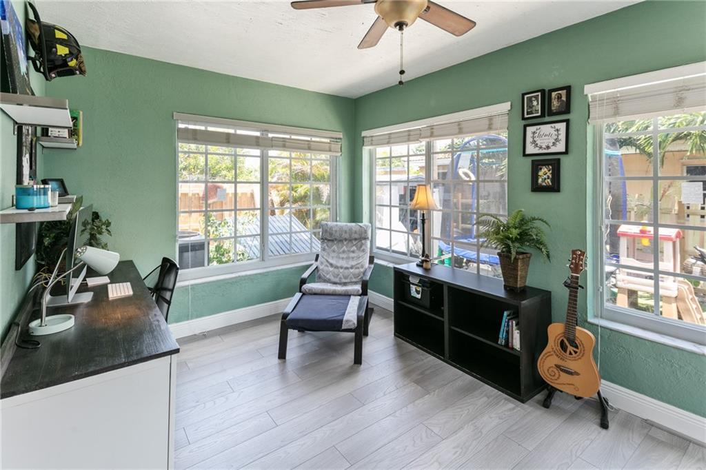 A beautiful well decorated and upgraded 3/2 home on a corner lot. New roof, AC, plumbing & electrical. Impact windows. Open floor plan with wood flooring, decorative fire place & feature wood plank wall in the living room. Kitchen cabinets were upgraded with lots of storage, granite counters, additional built ins & breakfast counter to dining room. Florida room has French door access to newly fenced rear yard. Master bath is nicely upgraded with free standing tub & glass tile and upgraded guest bath.