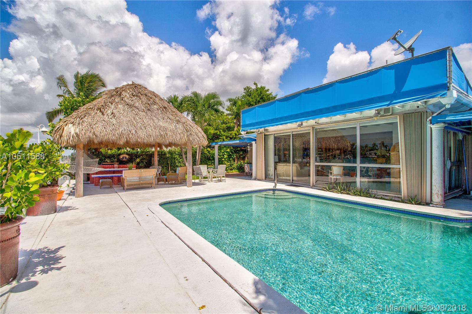 Wide Bay Beauty on Biscayne Point; most sought after island on Miami Beach! 3407 square feet of relaxing tropical living, complete with pool, Tiki Hut, dock and boat lift. Southern views of bay and intracoastal, allow you to enjoy sunsets from your back yard. The entire property is gated, private and beautifully landscaped. Gourmet kitchen complete with gas stove and anything a skilled chef might desire. Biscayne Point is a gated private island just 8 blocks from the ocean and minutes to Haulouver cut by boat. This incredible island is centrally located between South Beach and Bal Harbour. The 16,000 lb. boat lift is currently occupied by a 1968 Bertram 28 ft. Classic that could be purchased separately. Call Victoria Federici for a private showing today!