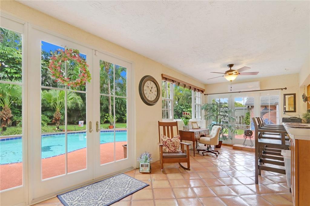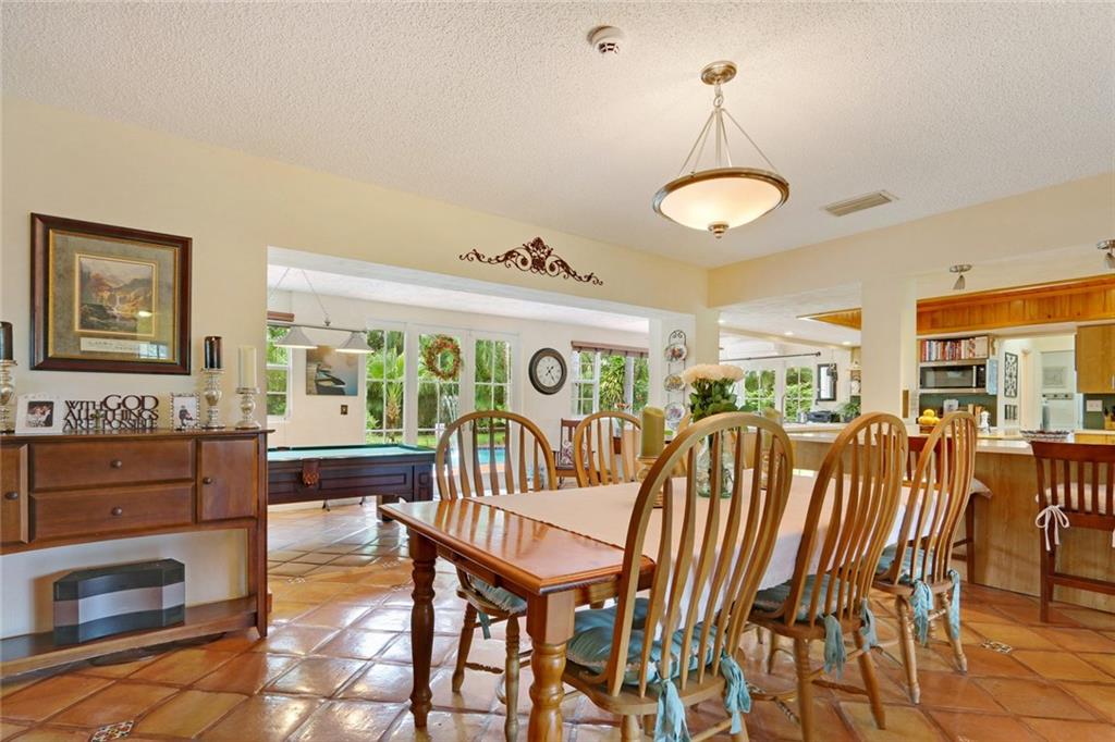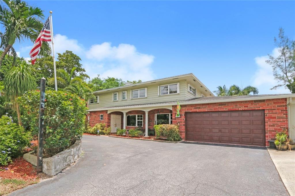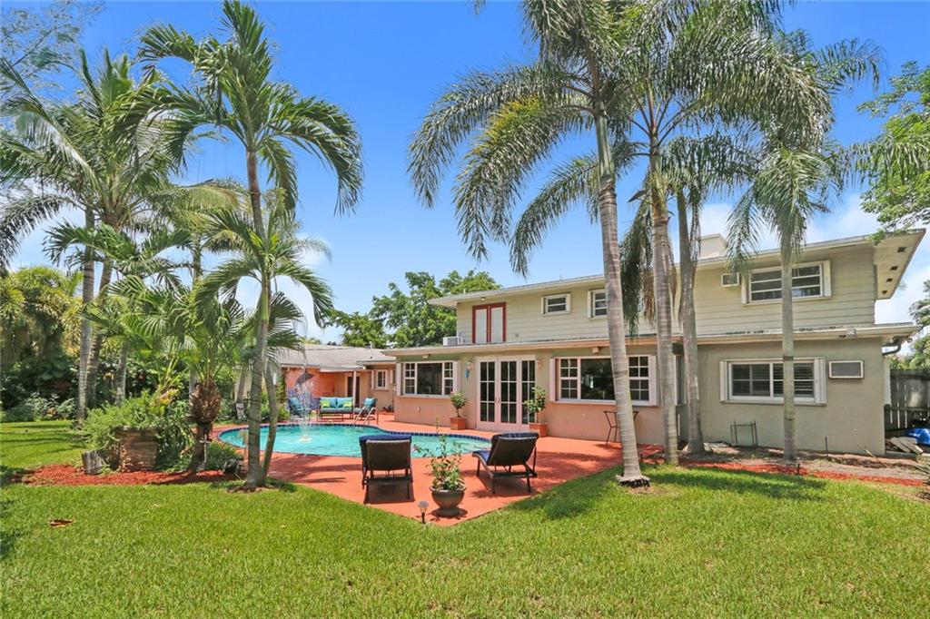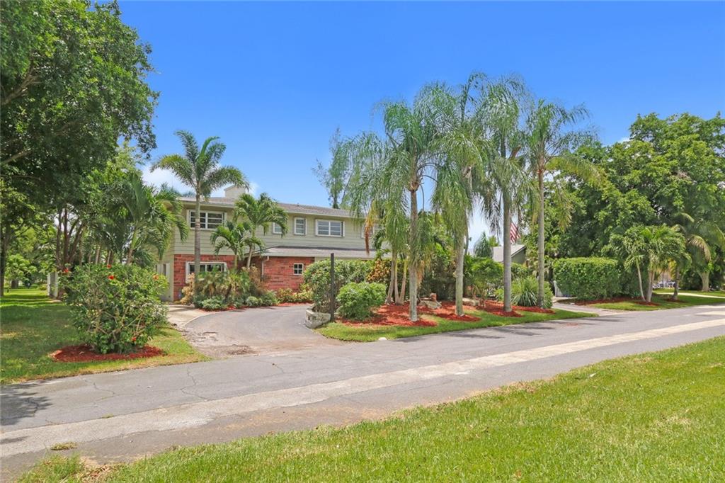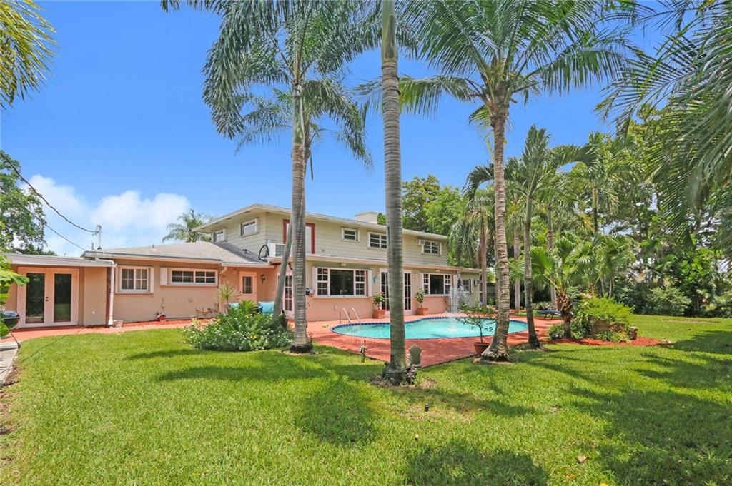 You enter this rarely available 2-story home with 5 bedrooms, 3.5 baths on almost an acre zoned Single Family or Duplex via a 230' private drive! Spacious floor plan, open kitchen, stainless appliances.Wonderful living area, bay windows, impact glass, family room, large dining area plus 2 bedrooms and 1.5 baths. Upstairs is a huge master suite with spa like bath and 2 more bedrooms and a bath. Beautiful landscaped with pool. Attached 2-car garage with separate 4 -car garage and shop. Close to Golf Course.