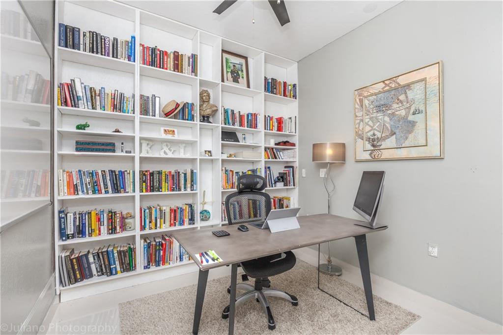 Amazing natural light fills this beautiful 3 bedroom Townhome. White Porcelain tile floors flow throughout the living area and Pergo is upstairs. Updated kitchen with SS appliances. High-end washer and dryer. 1/2 Garage has been tastefully converted to a library/office, 1/2 into accessible storage. Master bath has been completely updated with modern finishes. Highly desirable corner lot. Its rare you find a townhome with a yard of this size. Completely fenced. This home hits all the notes, act fast!