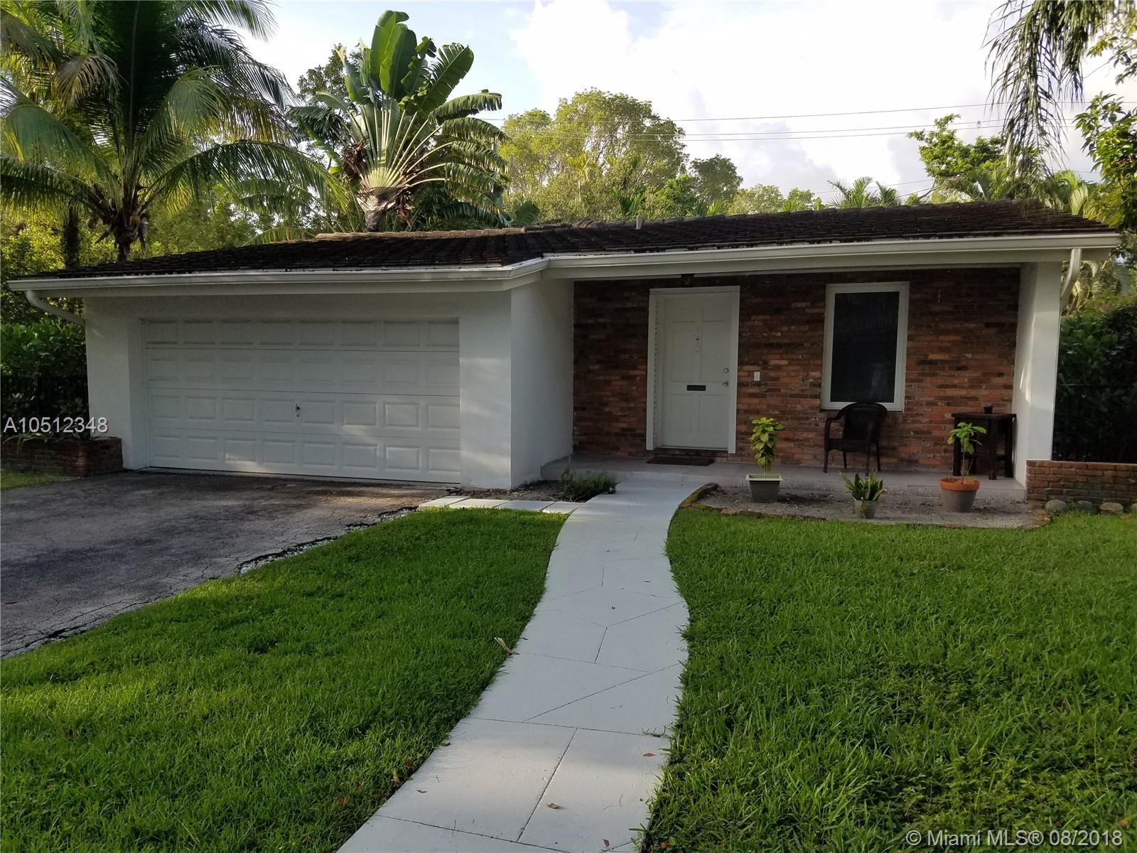 Mid-Century Modern 3/2.5 bath in the Biltmore section of the Gables (Golden Triangle) with rare 2 car garage and gardener's 1/2 bath. This home needs some updating, but all the major components have been upgraded or replaced with permits - newer impact windows/sliding glass door, newer flat tile roof, newer reinforced storm ready garage door, HVAC, upgraded sprinkler system, fence and landscaping. Remodeling needed is cosmetic and it will make it perfect. Great floor plan with spacious bedrooms. Walk to the CG Public Library, Youth Center, Biltmore Hotel, Venetian Pool, Miracle Mile, Giralda Plaza and great schools.