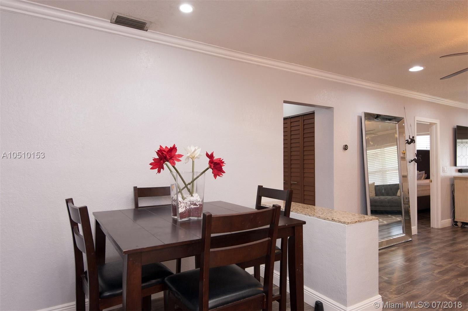AMAZING OPPORTUNITY… HOMES LIKE THIS RARELY COME TO THE MARKET! Gorgeous Tiled Porch leads to Front Glass Door. Interior Features Tile & Wood Laminate Flooring throughout, Recessed LED Lighting, Crown Molding, Smooth Ceilings, Tasteful colors, Etc… Kitchen FULLY upgraded w/ White Cabinets, Granite Countertops, Glass Tile Backsplash, & HIGH-END S.S. Appliances. Spacious Master Bedroom comes complete w/ Walk-In Closet & Modern Bath. Home also features an open BONUS room w/ French Doors leading to back covered Patio. Nicely maintainable Backyard offers plenty of play room, storage Shed, & a Mango tree. Complete Home Security & Storm ready w/ IMPACT WINDOWS throughout. Main Roof replaced 2014, installed 2nd A/C 2017, & Drain Field replaced 2016. ONLY 4 HOMES FROM COMMUNITY PARK!