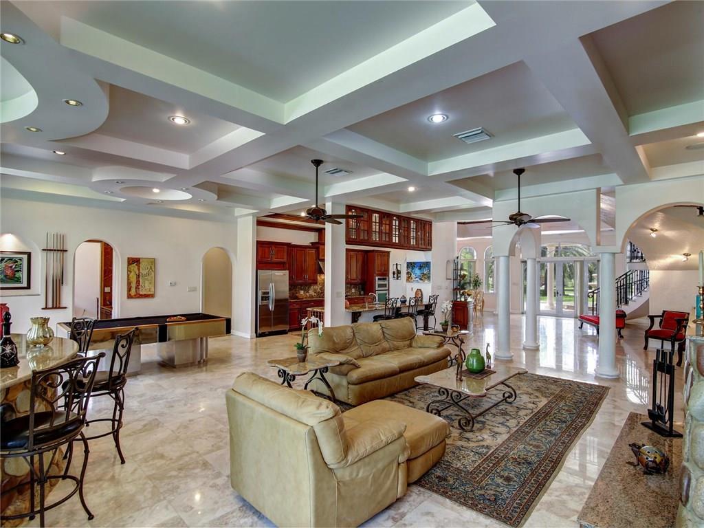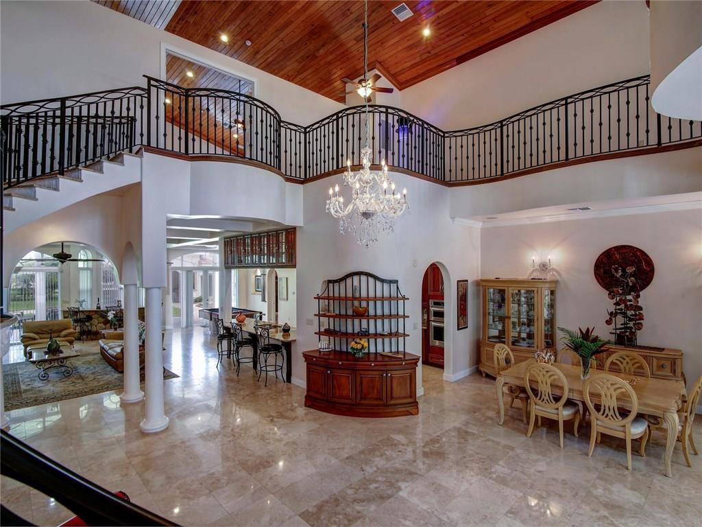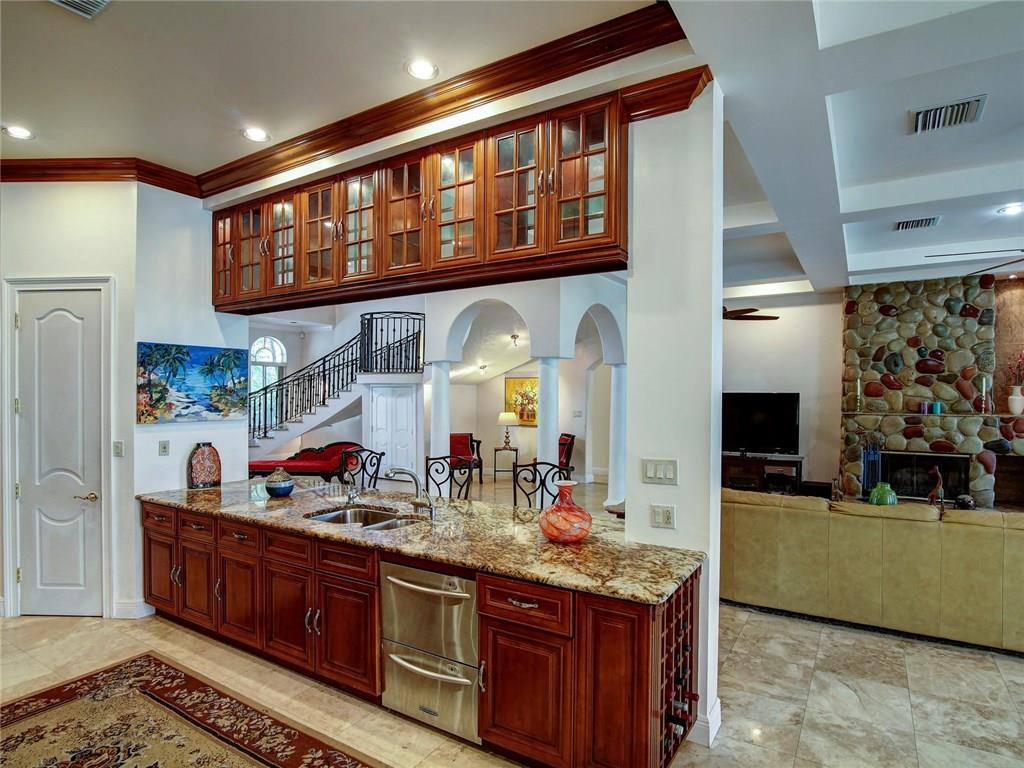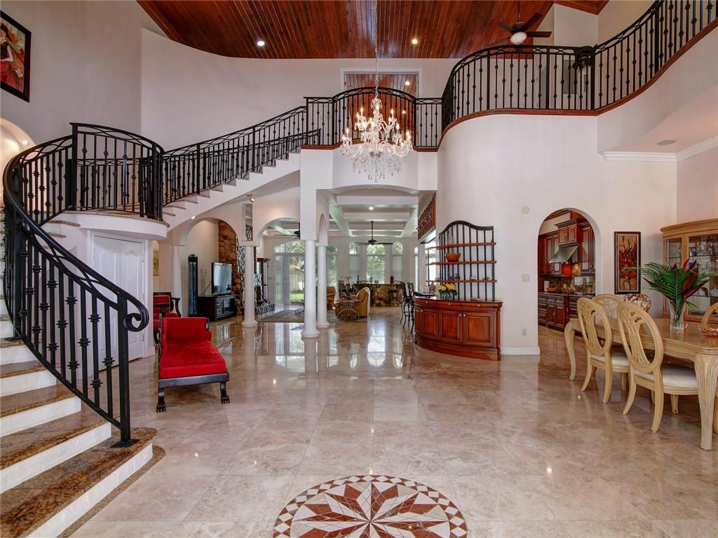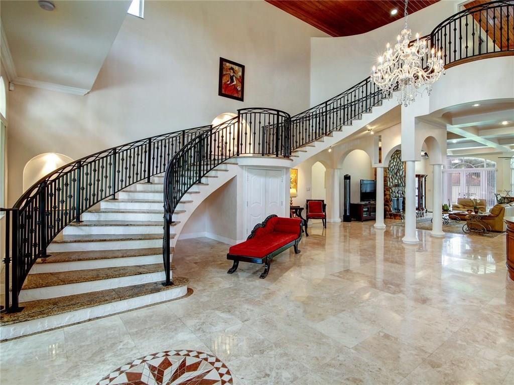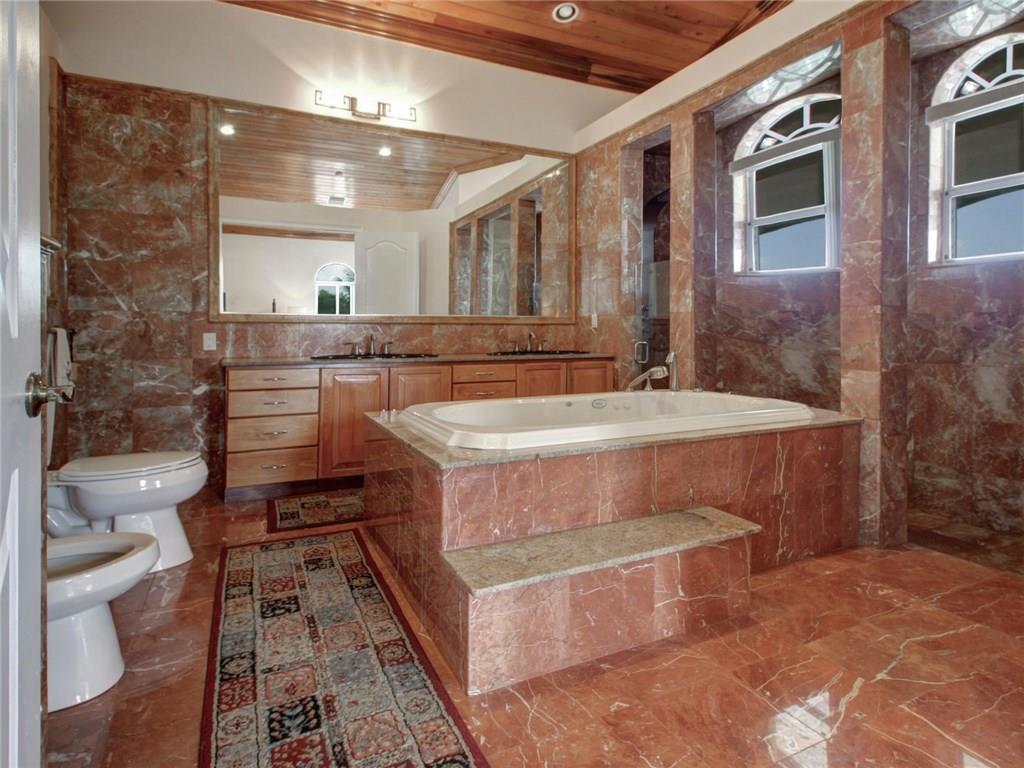 FROM THE MOMENT YOU ENTER YOU ARE GREETED WITH SOARING CEDAR CEILINGS, AND A ONE OF A KIND EXQUISITE GRANITE AND WROUGHT IRON STAIRCASE. LIVING AREA BOASTS DESIGNER SOFFIT CEILINGS AND FIREPLACE. 2 HUGE MASTER SUITES, ONE UPSTAIRS AND ONE DOWN, BOTH COMPLETE WITH MARBLE BATHS, WITH SPA TUBS, AND SEAMLESS SHOWERS. 2 ENORMOUS TERRACES UPSTAIRS. MAIN HOME 4 BEDROOMS AND 3 BATHS GUEST HOUSE 2 BEDROOMS AND 1 BATH,COMPLETE WITH ITS OWN PATIO AND SUMMER KITCHEN.RACKETBALL/BASKETBALL COURT & FRUIT TREES GALORE!
