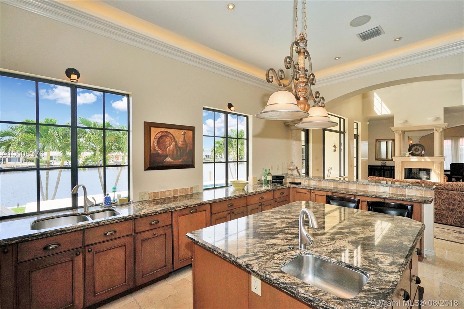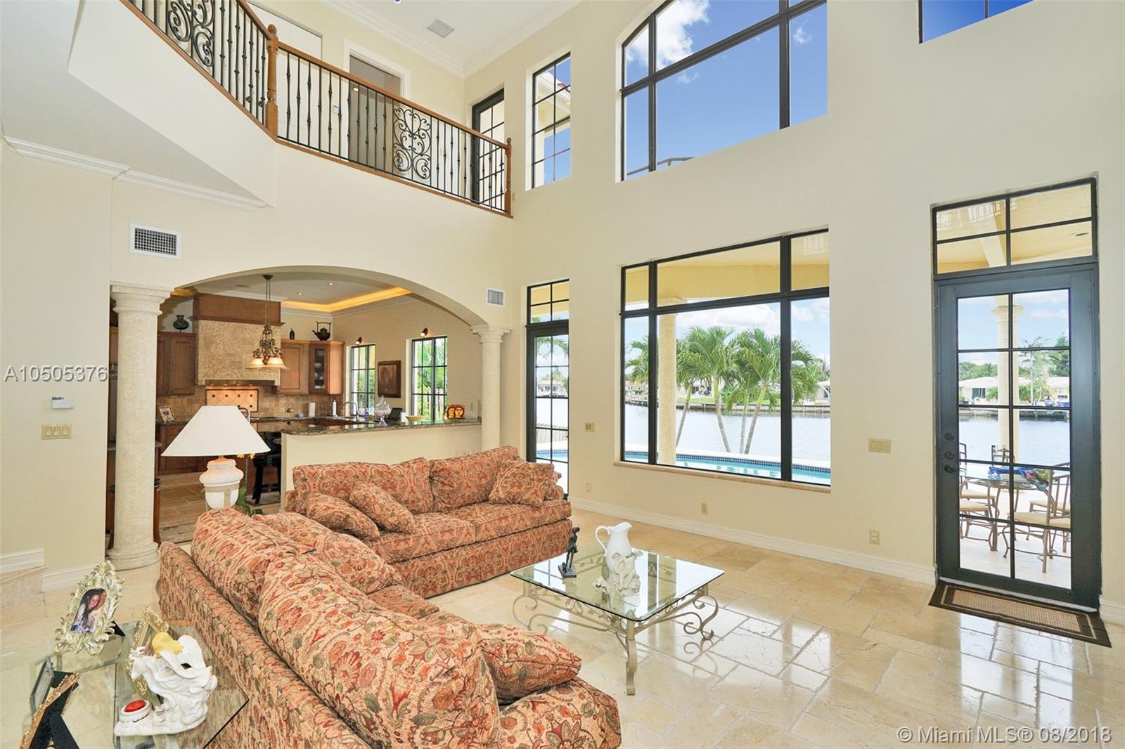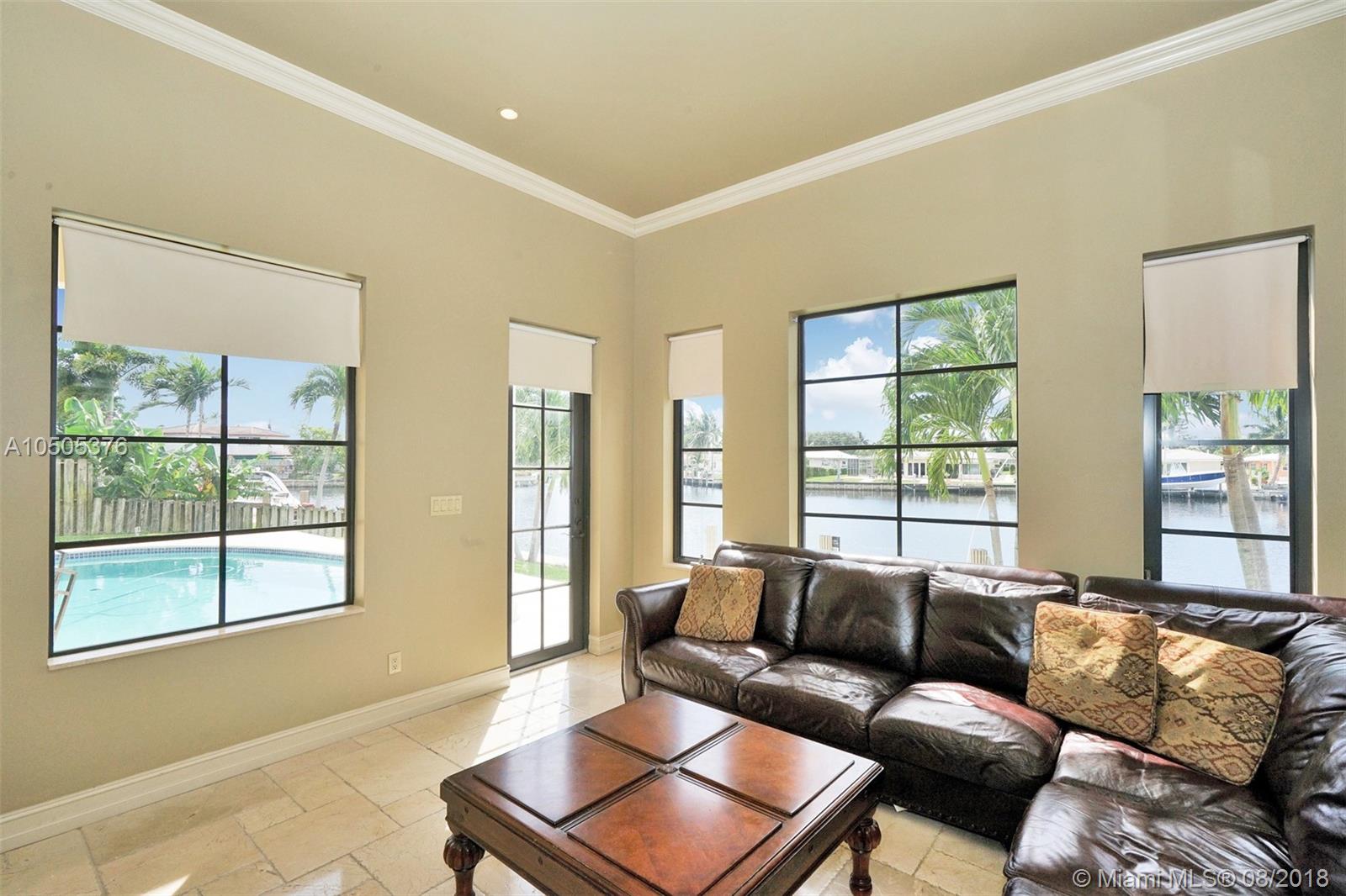 Stunningly beautiful 4/3.5 home in Pompano Beach w/ 80 ft of waterfront! Impact windows and doors throughout. Open floor plan with marble floors on 1st floor. Volume ceilings when you walk in (25ft) with natural lighting with the house facing SE. Beautiful gourmet Omega Kitchen w/ granite countertops and island. All Miele built in appliances including warming drawer, steamer, Espresso machine, convection oven, microwave, and dishwasher that are all digital. Upstairs master has expansive views on one of the largest width canals that intersects with double balcony access. Custom tray ceilings with recessed lighting. Upstairs also has a huge loft with hardwood floors and large crown molding throughout. 2 large rooms with Jack & Jill bathroom all with Italian marble. 4 train AC units 2008.