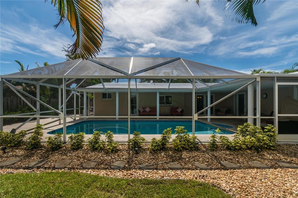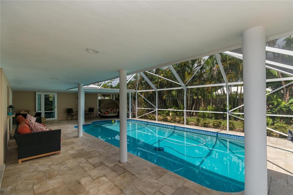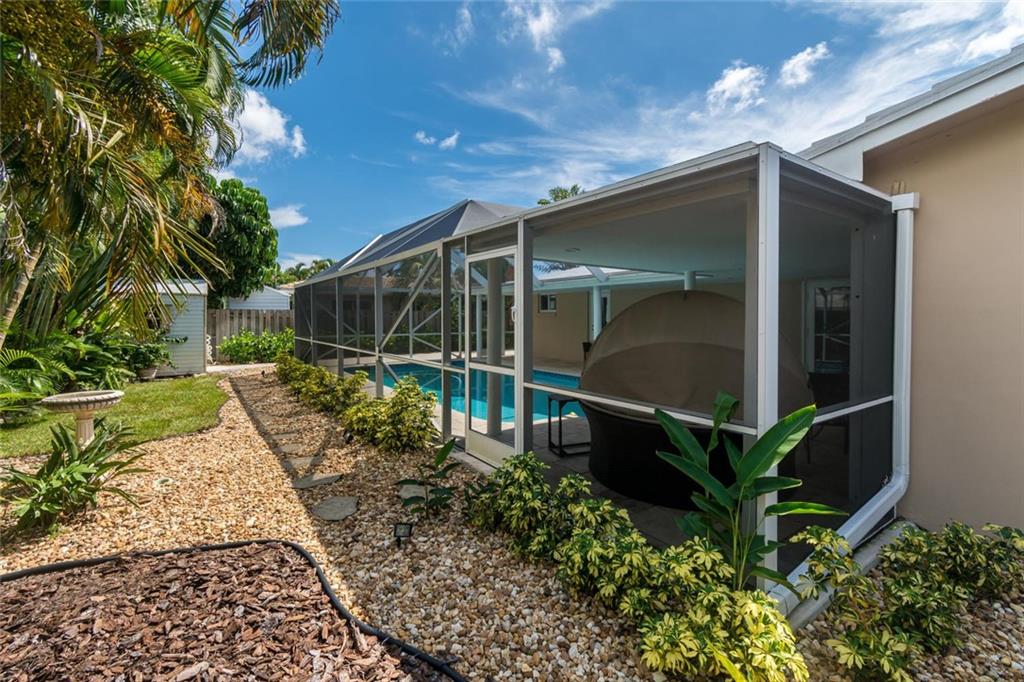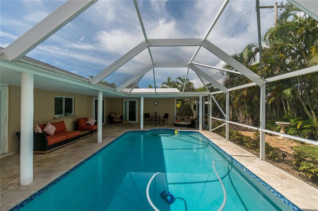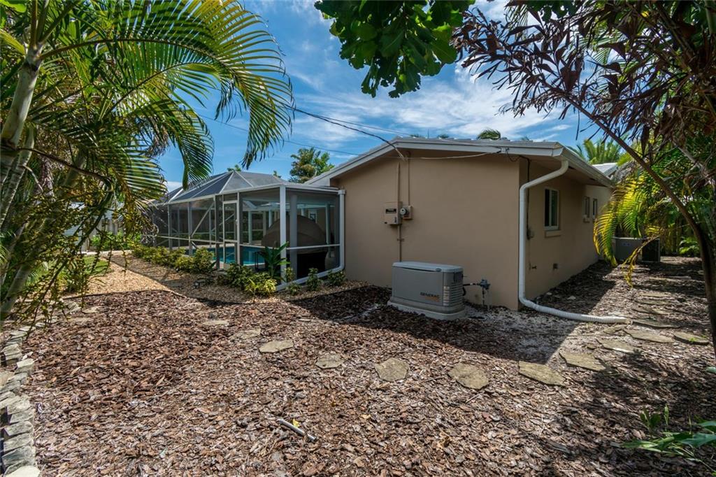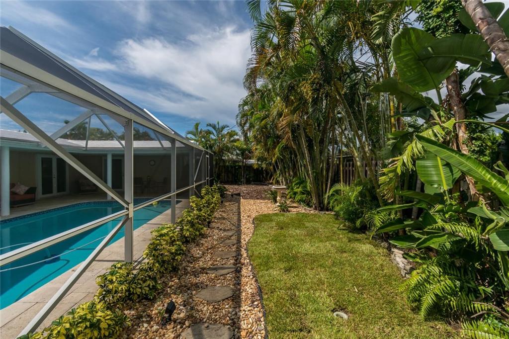 This lovely home exemplifies true pride of ownership. The kitchen features custom light wood cabinetry with granite counters, stainless appliances and is open to living areas. Ideal home office with built ins and sitting area.Other benefits inc: new impact glass, newer AC unit and ducts custom window treatments, beautiful wood floors, high end fixtures. The yard is stunning with high screened pool area and huge overhang allowing for perfect outside enjoyment. WHOLE HOUSE GAS GENERATOR. 2 miles to beach.