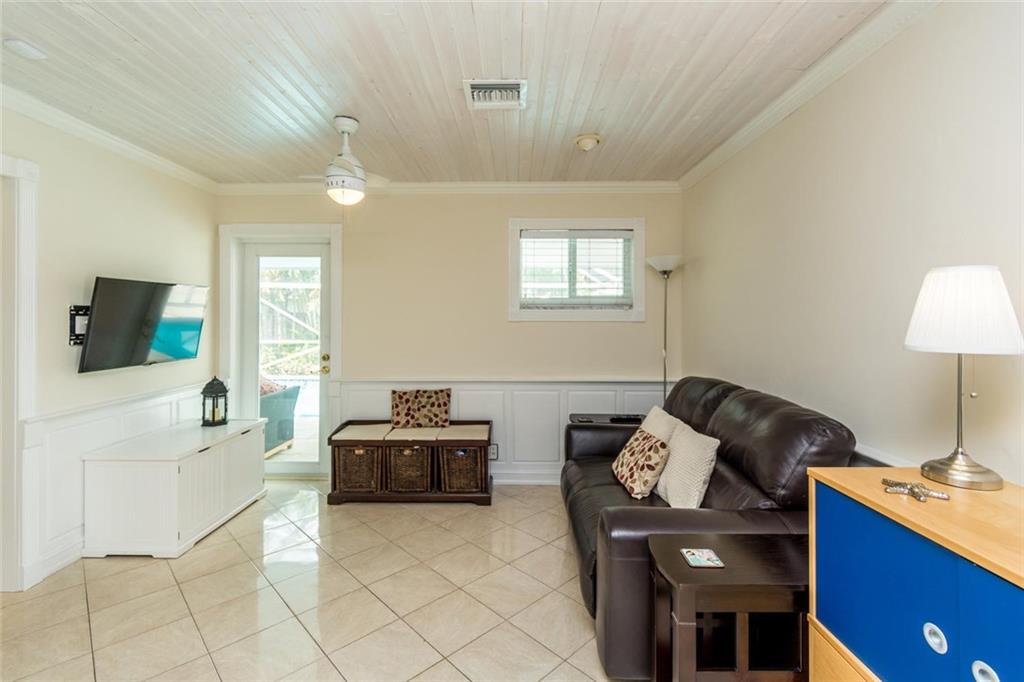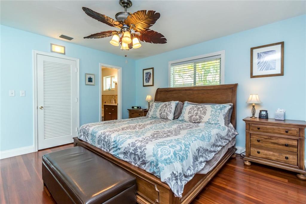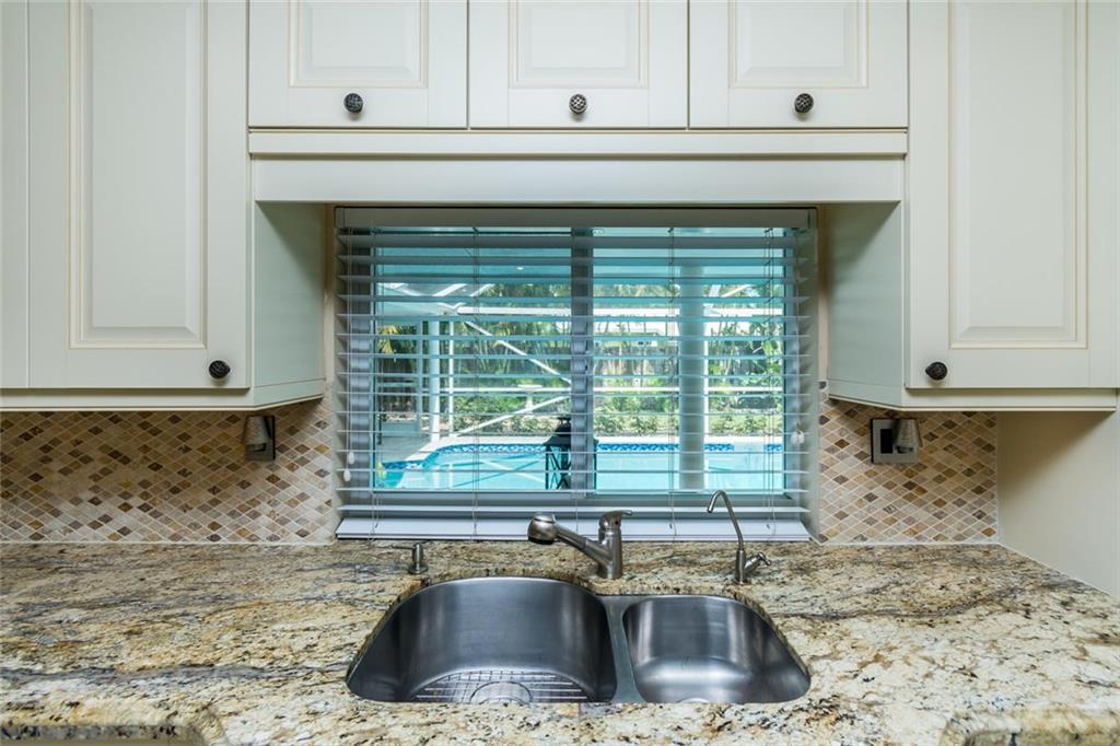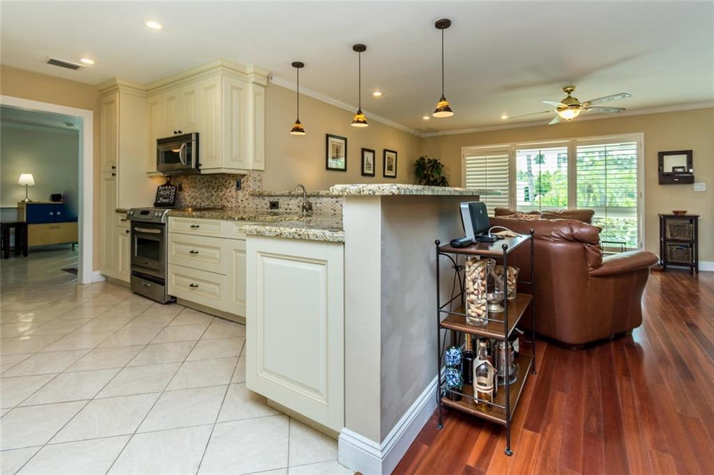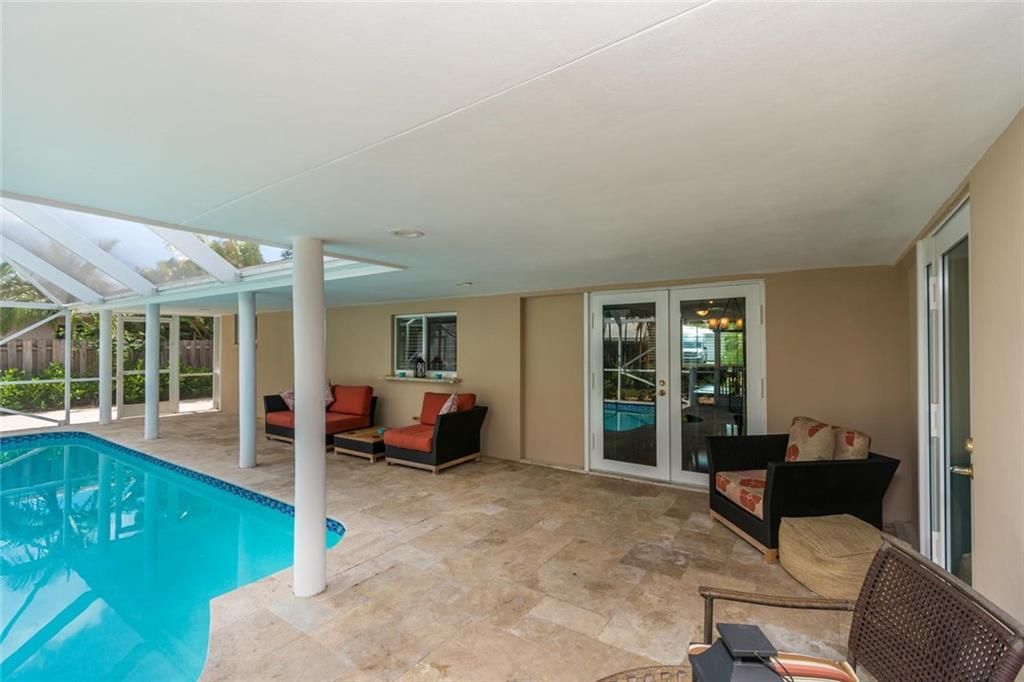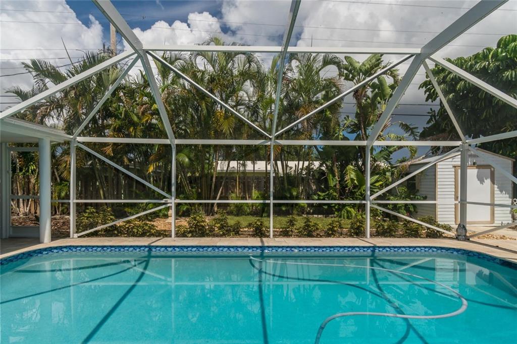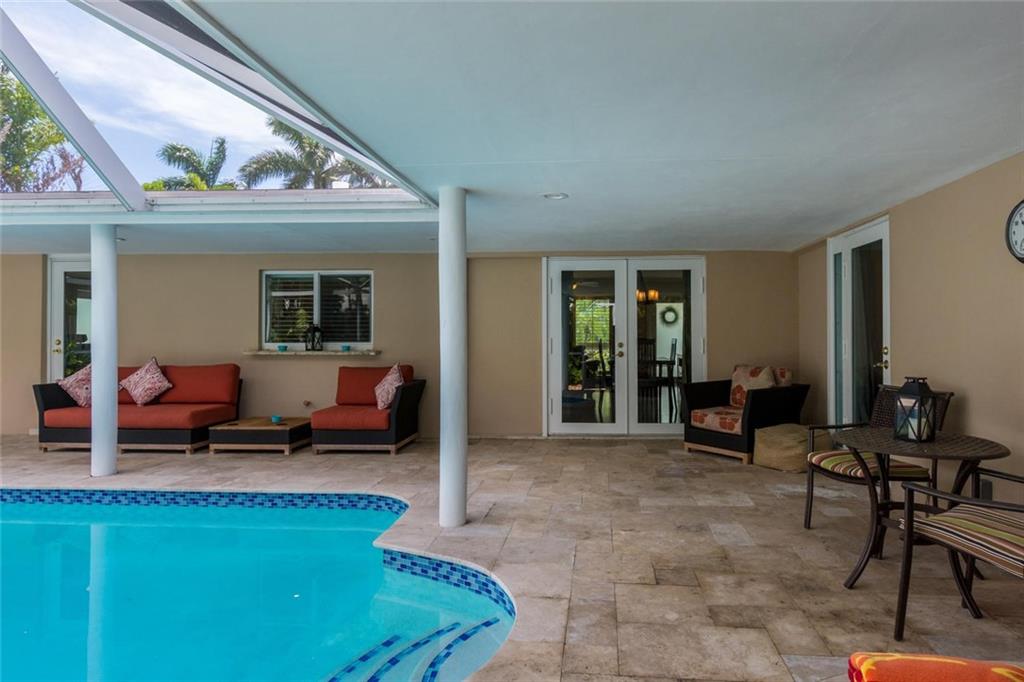 This lovely home exemplifies true pride of ownership. The kitchen features custom light wood cabinetry with granite counters, stainless appliances and is open to living areas. Ideal home office with built ins and sitting area.Other benefits inc: new impact glass, newer AC unit and ducts custom window treatments, beautiful wood floors, high end fixtures. The yard is stunning with high screened pool area and huge overhang allowing for perfect outside enjoyment. WHOLE HOUSE GAS GENERATOR. 2 miles to beach.
