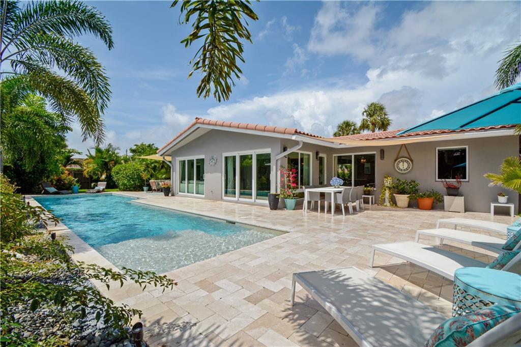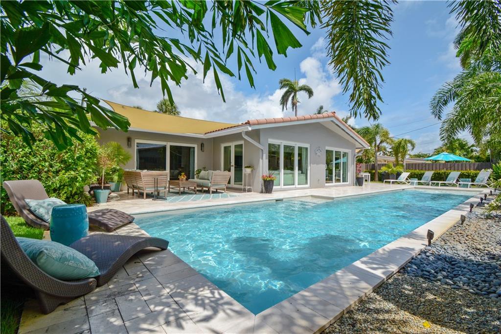 Resort-Like contemporary located in the premier community of Coral Ridge Country Club, on an expansive corner lot. Fully renovated & ready for year-round entertaining. 50 ft heated salt water pool, newer front & back landscaping, outdoor lighting, redone terrazzo floors, top-of-the-line kitchen, High impact windows & doors, well for the sprinklers and freshly painted inside & out. 2 car air-conditioned garage & newer paver driveway. Everything has been thought of, and flawlessly cared for, inside and out.