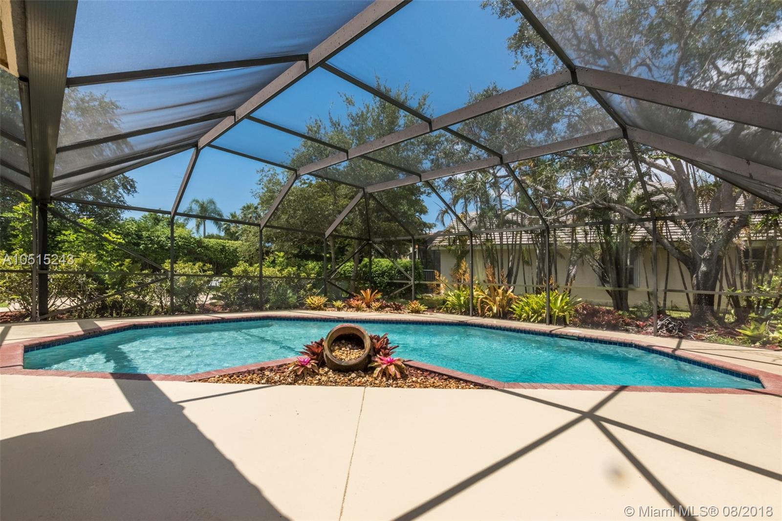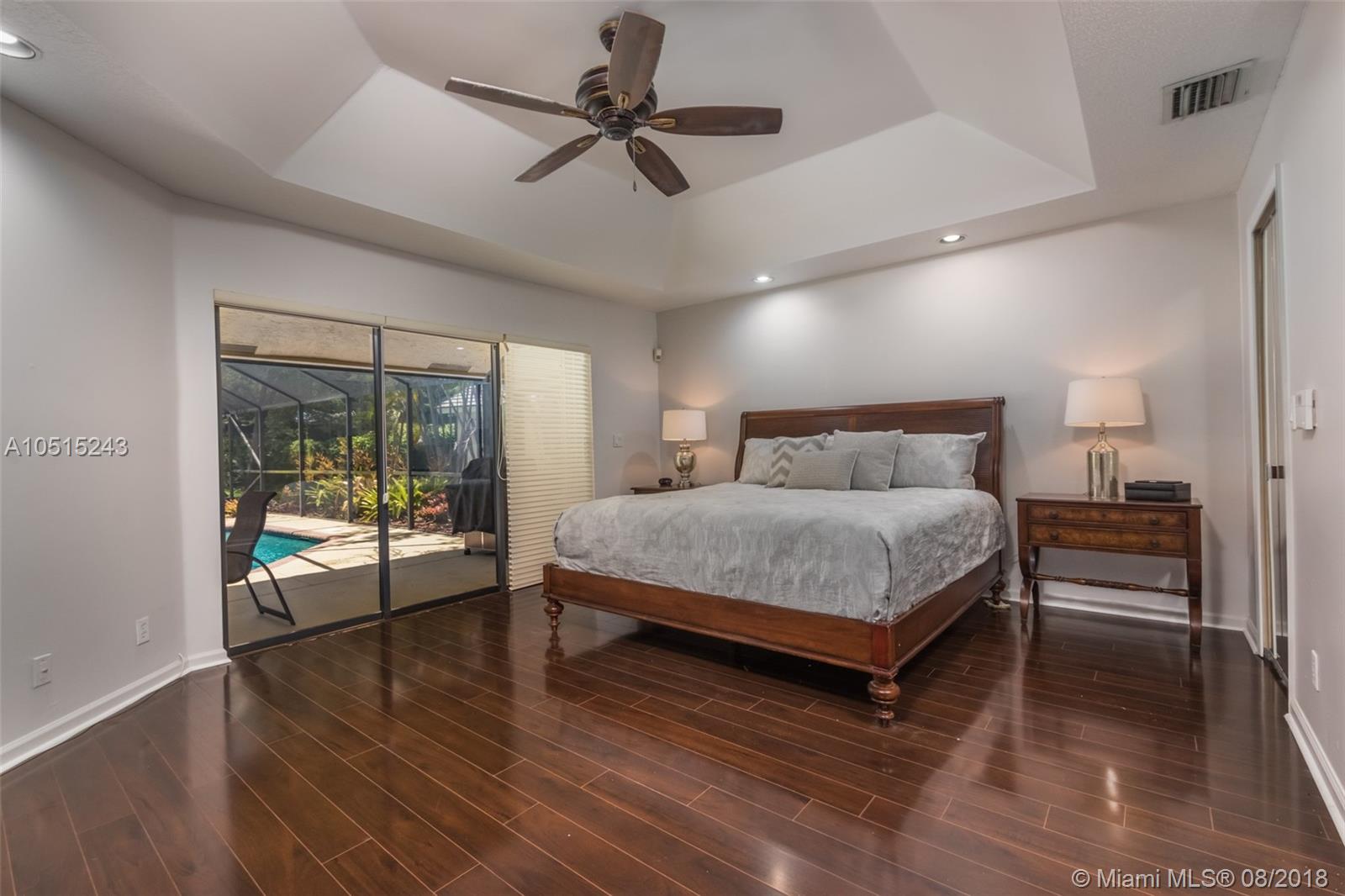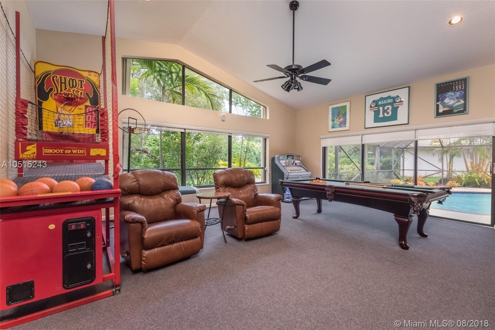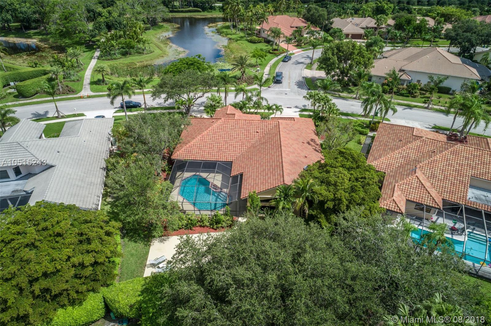 Tucked on a quiet royal palm tree lined street in the boutique gated community of Palm Island. This custom home is set on an oversized lushly landscaped lot with spacious patio and screened pool plus yard with playcourt. 4 spacious bedrooms plus 450 sq ft playroom. New Roof (2014) Brand New contemporary white kitchen (2018) with Stainless Steel Appliances and quartz countertops. All bathrooms remodeled.This elegant home greets you with a circular driveway and impact front door. Soaring ceilings let in the light. Freshly painted in today’s colors. Full accordion protection. Exterior recently painted. * front view of lake * garage hurricane protected/ impact * LED lights throughout * wireless burglar alarm * laundry room recently updated * backyard has half basketball court *