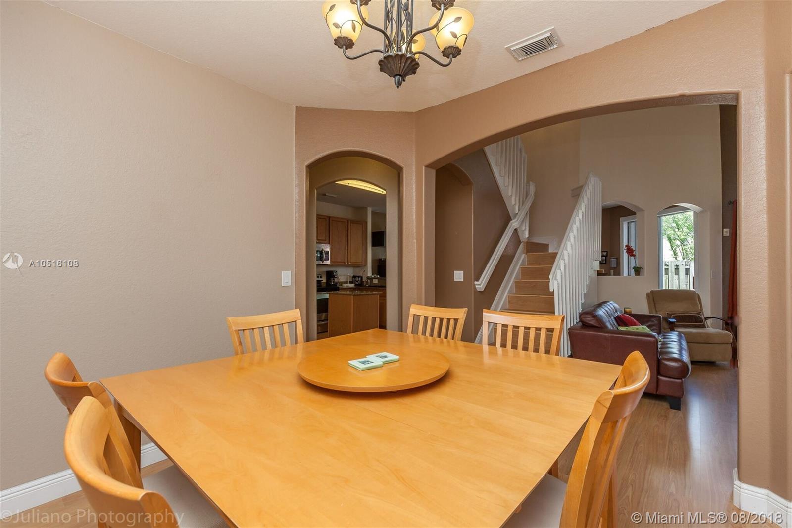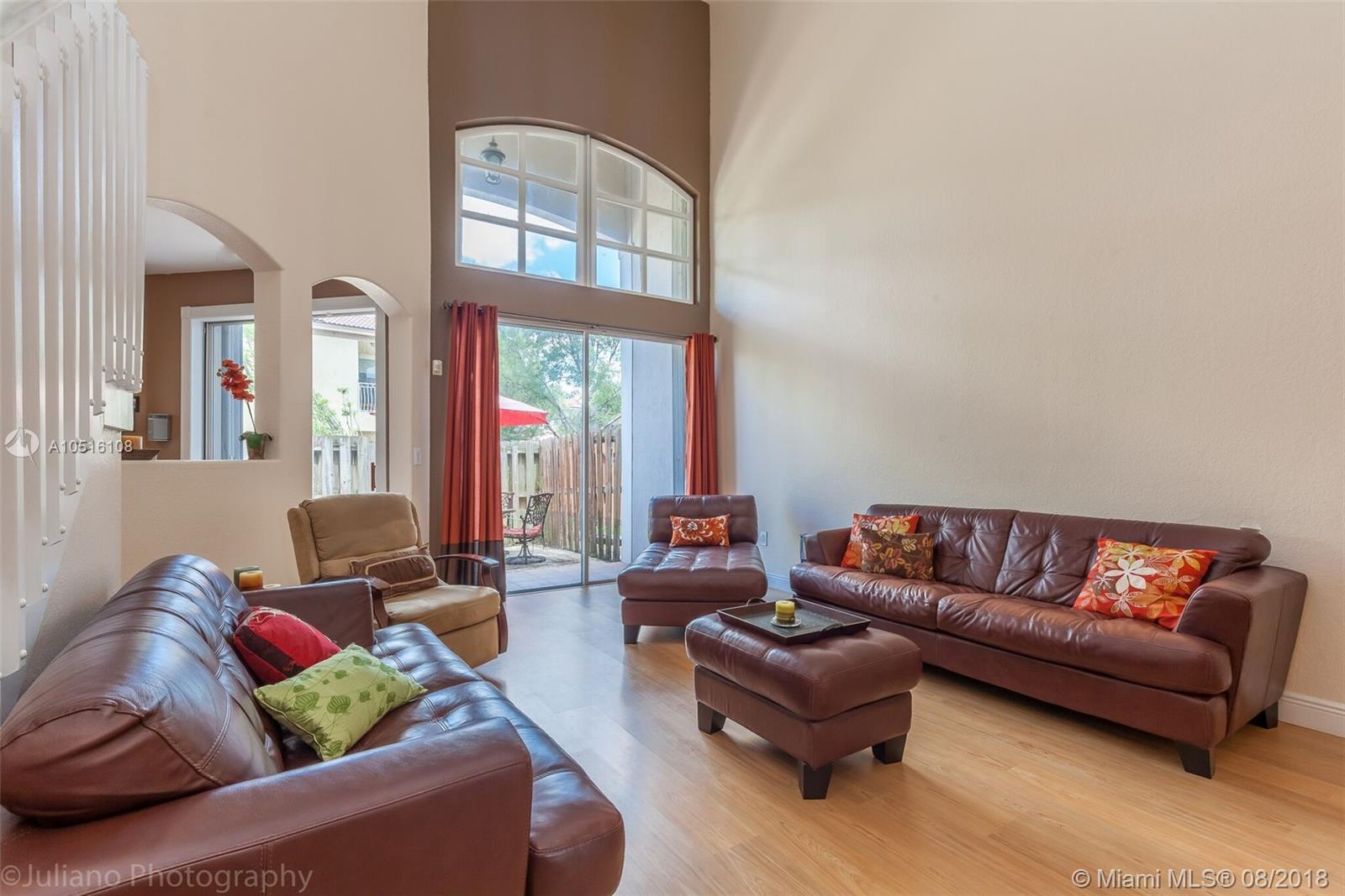 BEAUTIFUL AND COZY TOWNHOUSE IN THE LUXURIOUS GATED COMMUNITY, NETHERLANDS AT DORAL!! THIS UNIT OFFERS 3 BEDROOM / 2.5 BATHROOMS + A HUGE DEN + WALK-IN CLOSETS. BEAUTIFUL KITCHEN WITH STAINLESS STEEL APPLIANCES, WOOD CABINETS AND GRANITE COUNTERTOPS WITH BREAKFAST AREA BAR. LOTS OF WINDOWS THAT GIVE YOU FULL NATURAL LIGHT! FORMAL DINING ROOM AND LIVING ROOM FACING THE PATIO AREA. ACCORDION SHUTTERS. NICE NEIGHBORHOOD CLOSE TO SCHOOLS AND VERY CLOSE TO THE SHOPS AND RESTAURANTS