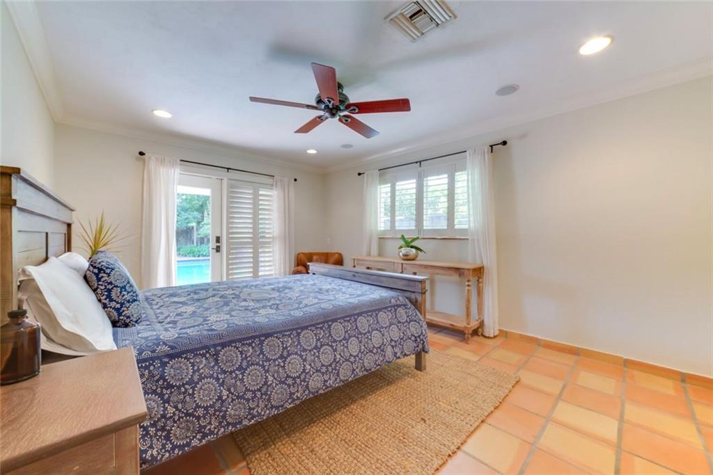 Welcome Home To This Warm & Inviting Pool Home*Located on one Of The Most Desirable Streets N the neighborhood*Oversized 3/2 Split Floor Plan w/2 Owners Suites*Pool Views Offered from every room*Waterfall Pool W/Lush Tropical Landscaping & Private Fence Surrounding*Newer Chefs Eat In Kitchen w/Stilestone &KitchenAide (all appliances)Natural gas stove*Polished Terrazzo &Tile Floors*High Hat Lighting*Crown Molding*Larger Closets*Tank-less Gas Water Heater*Screened Patio Over Looks the pool & Private Grounds