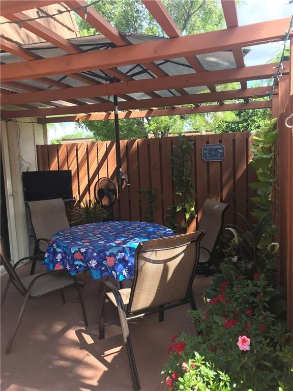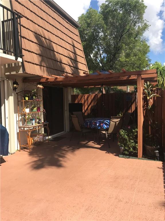 GOLFER'S DREAM, THIS SPACIOUS 2 BEDROOM, 2 1/2 BATH PLUS A DEN OR OFFICE IS BEING USED AS A 3RD BDRM, NEWER HIGH END KITCHEN APPLIANCES, AND MOSIAC BACKSPLASH, AND NEW TILE FLOOR IN KITCHEN, LARGE CLOSET IN 2ND BDRM & WALK IN CLOSET IN MASTER, WASHER/DRYER, ACCORDION SHUTTERS, PRIVATE FENCED IN PATIO WITH A BEAUTIFUL PERGOLA GREAT FOR ENTERTAINING, SHED W/NEW ROOF ON PATIO. THERE IS AN ADDITIONAL $150 YR FOR COUNTRY CLUB ACCESS & THEY GIVE YOU $150 BACK IN DINNER COUPONS.