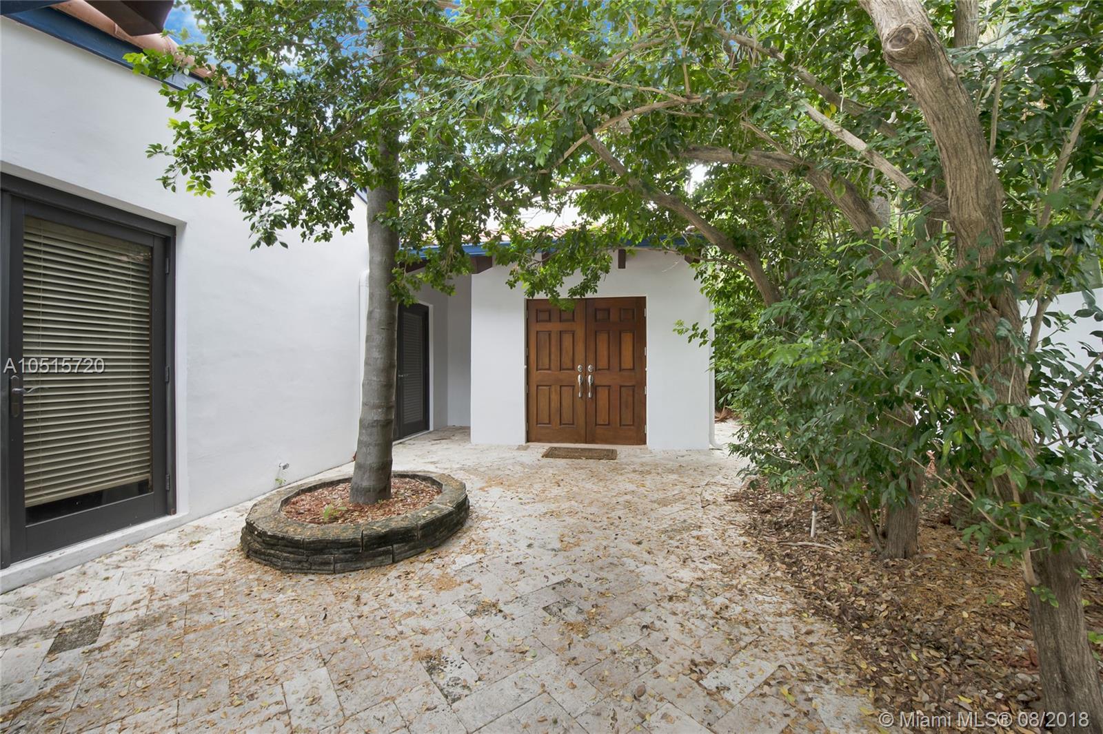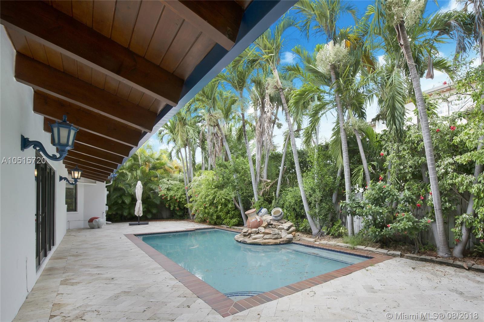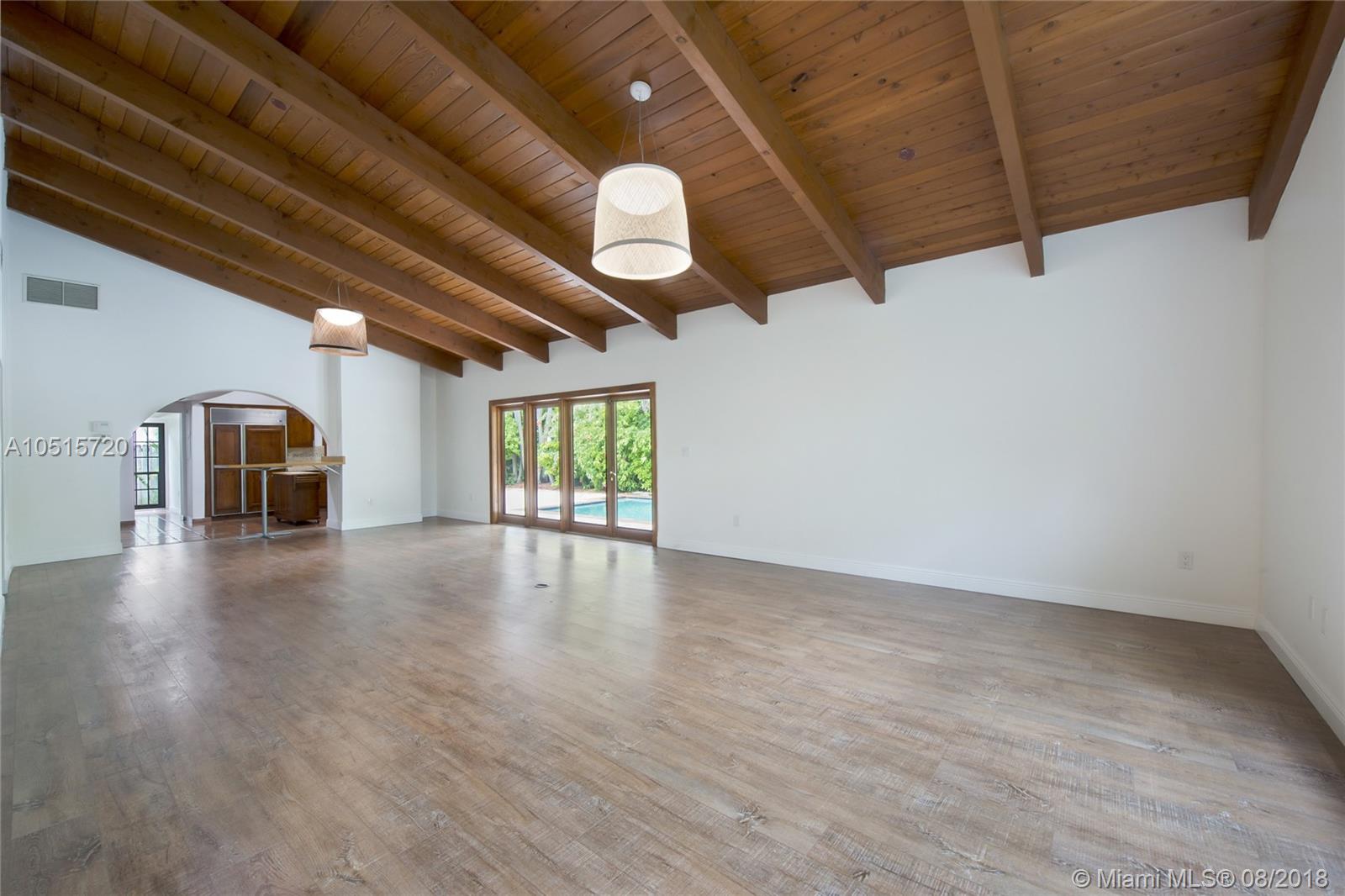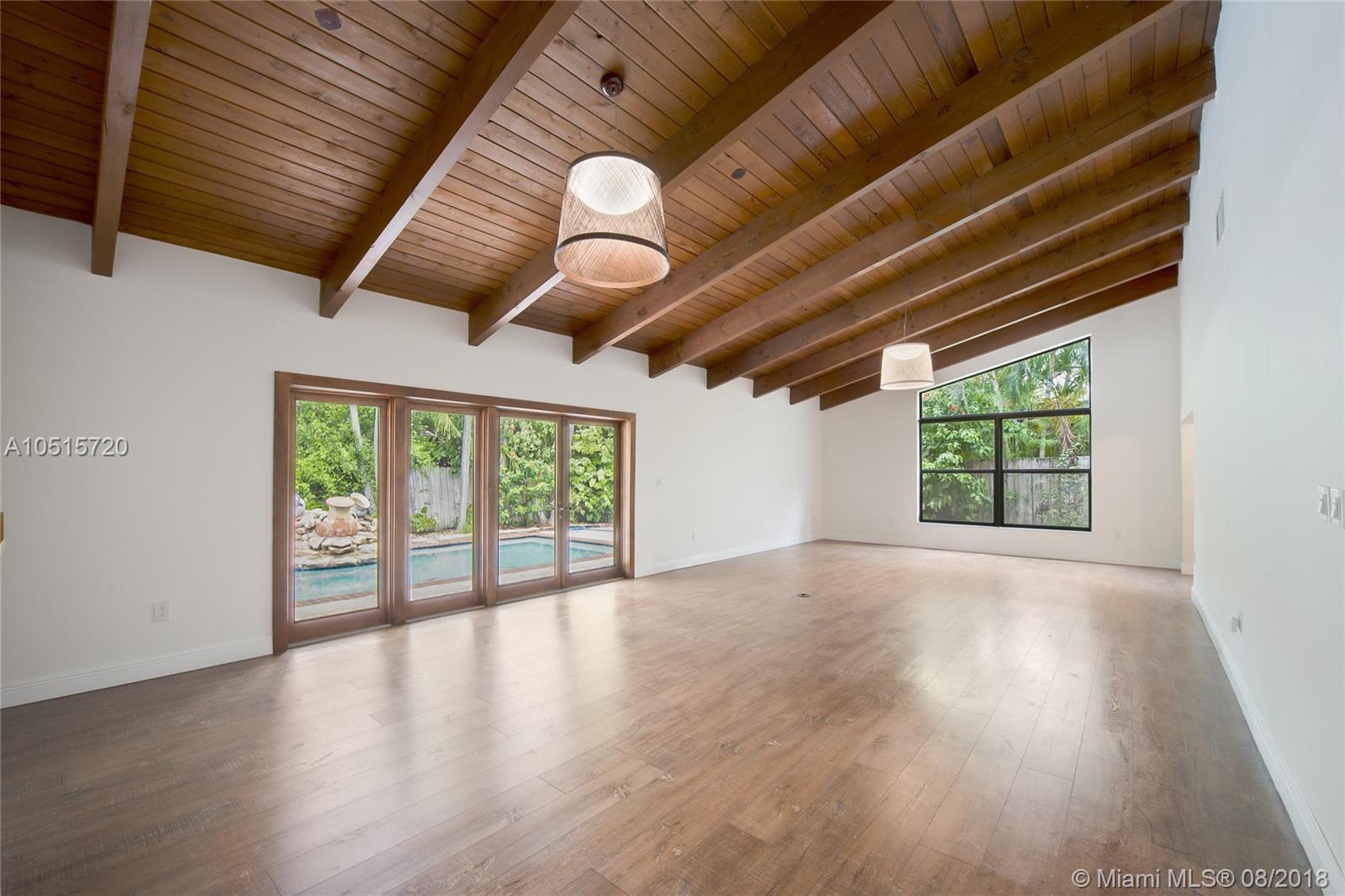 Elegant, spacious, bright and updated pool home with vaulted wood ceilings inviting light into all the house. Open and easy flowing floor plan featuring 5 large bedrooms, 3.5 baths, one bedroom (guest or service quarter) is located adjacent to the kitchen. Living areas open through French doors to a delightful pool and patio area. This is your perfect Key Biscayne location on a quiet street, carport and gated interior courtyard front entrance. This beautiful home is located within easy walking distance to all KB schools, shops, cafes, restaurants, parks, and places of worship. This elegant home won't last! Make your private viewing appointment today!