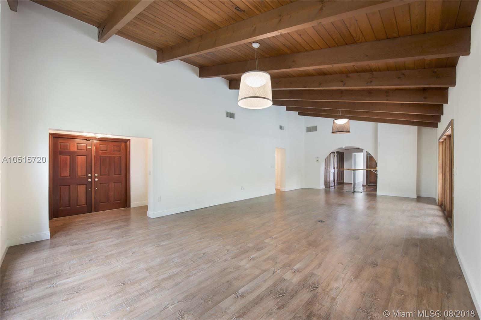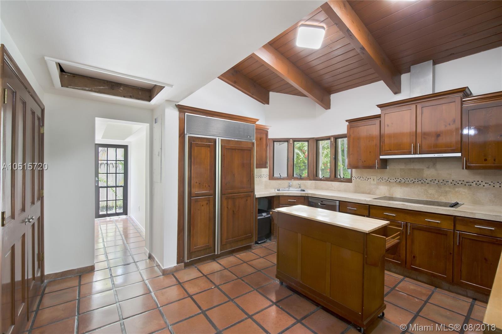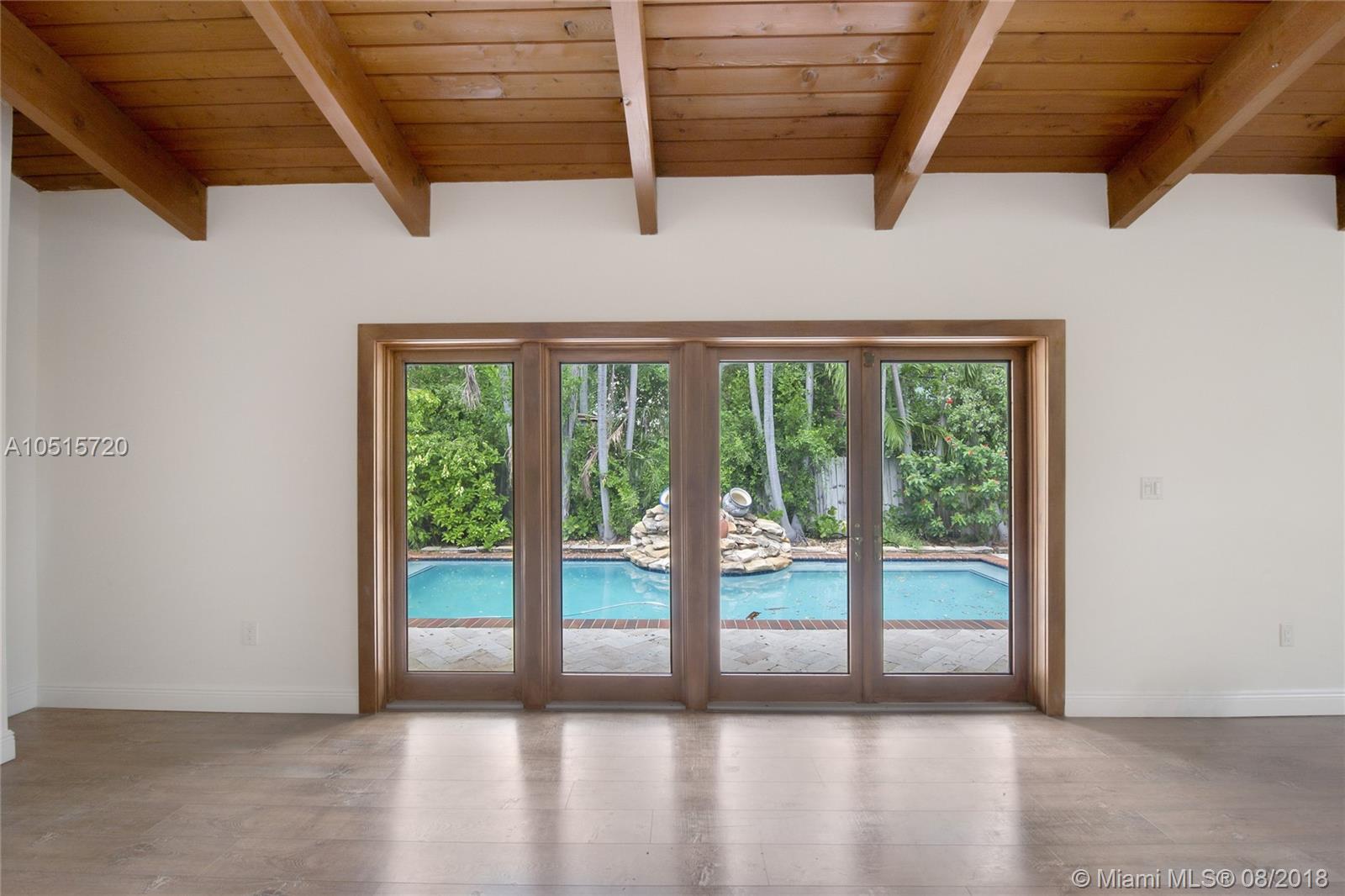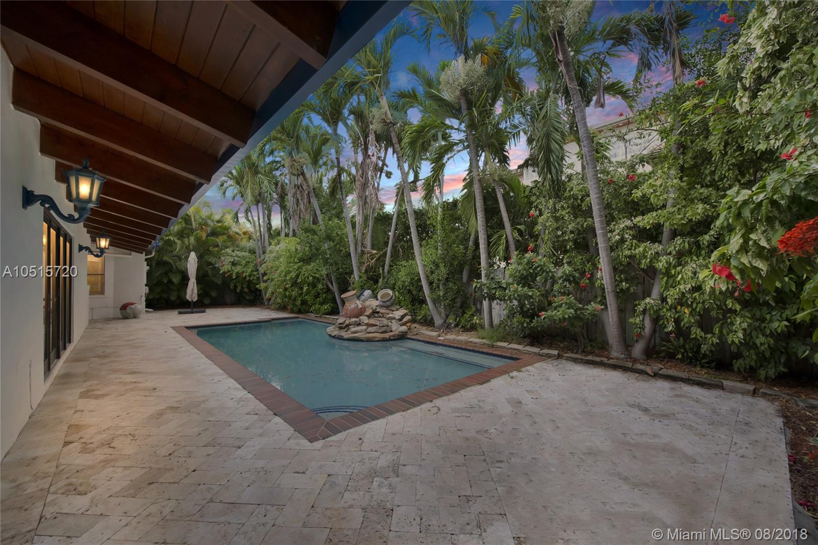 Elegant, spacious, bright and updated pool home with vaulted wood ceilings inviting light into all the house. Open and easy flowing floor plan featuring 5 large bedrooms, 3.5 baths, one bedroom (guest or service quarter) is located adjacent to the kitchen. Living areas open through French doors to a delightful pool and patio area. This is your perfect Key Biscayne location on a quiet street, carport and gated interior courtyard front entrance. This beautiful home is located within easy walking distance to all KB schools, shops, cafes, restaurants, parks, and places of worship. This elegant home won't last! Make your private viewing appointment today!