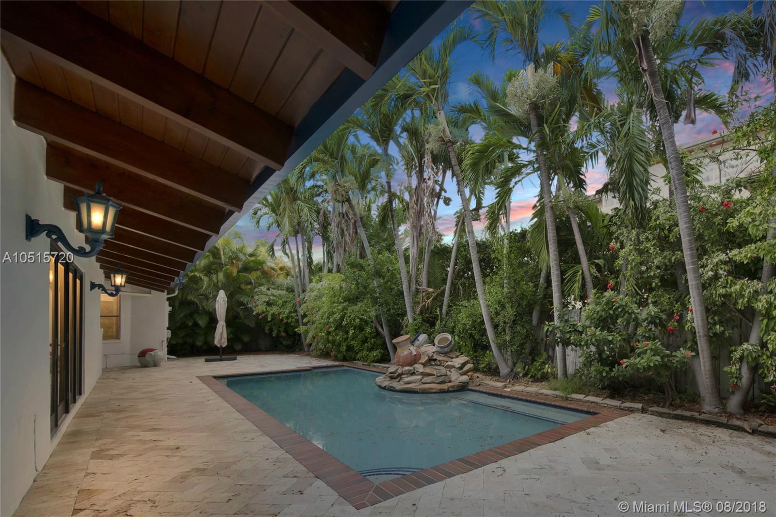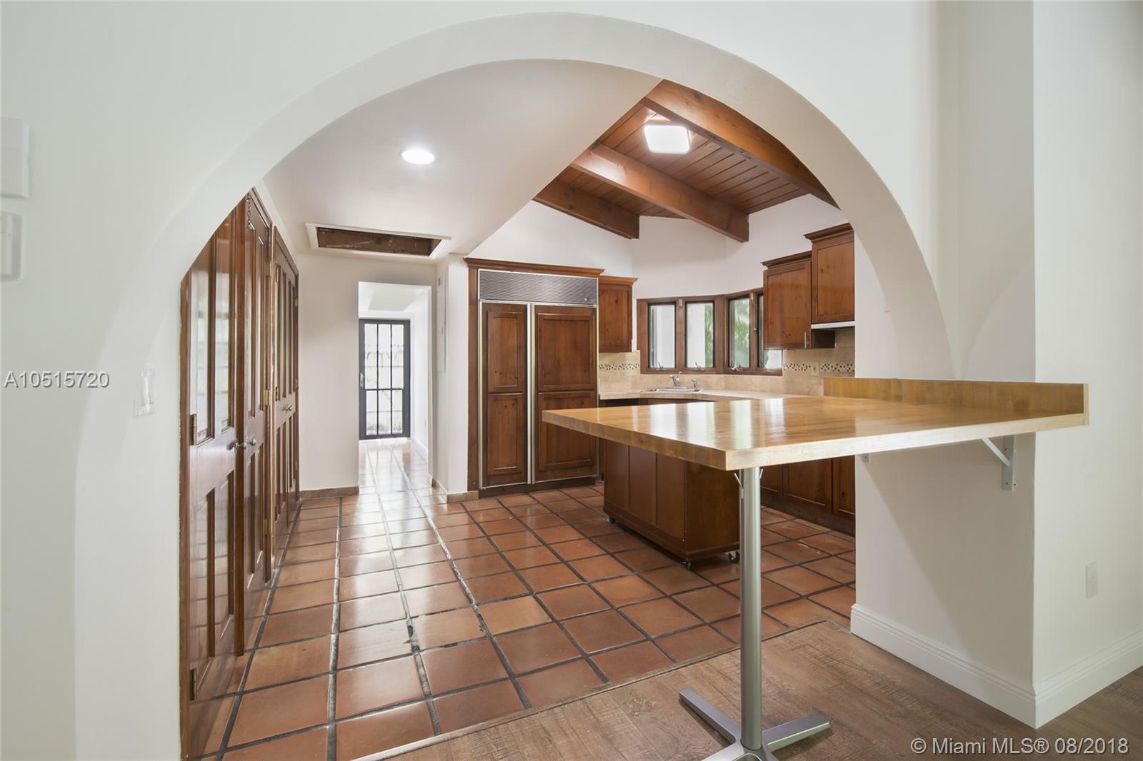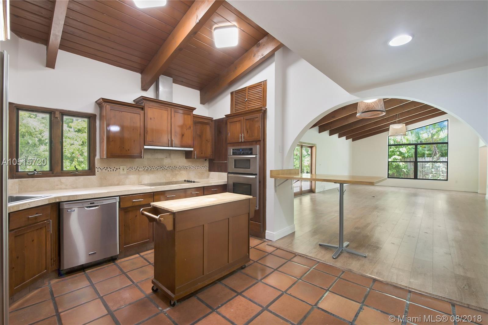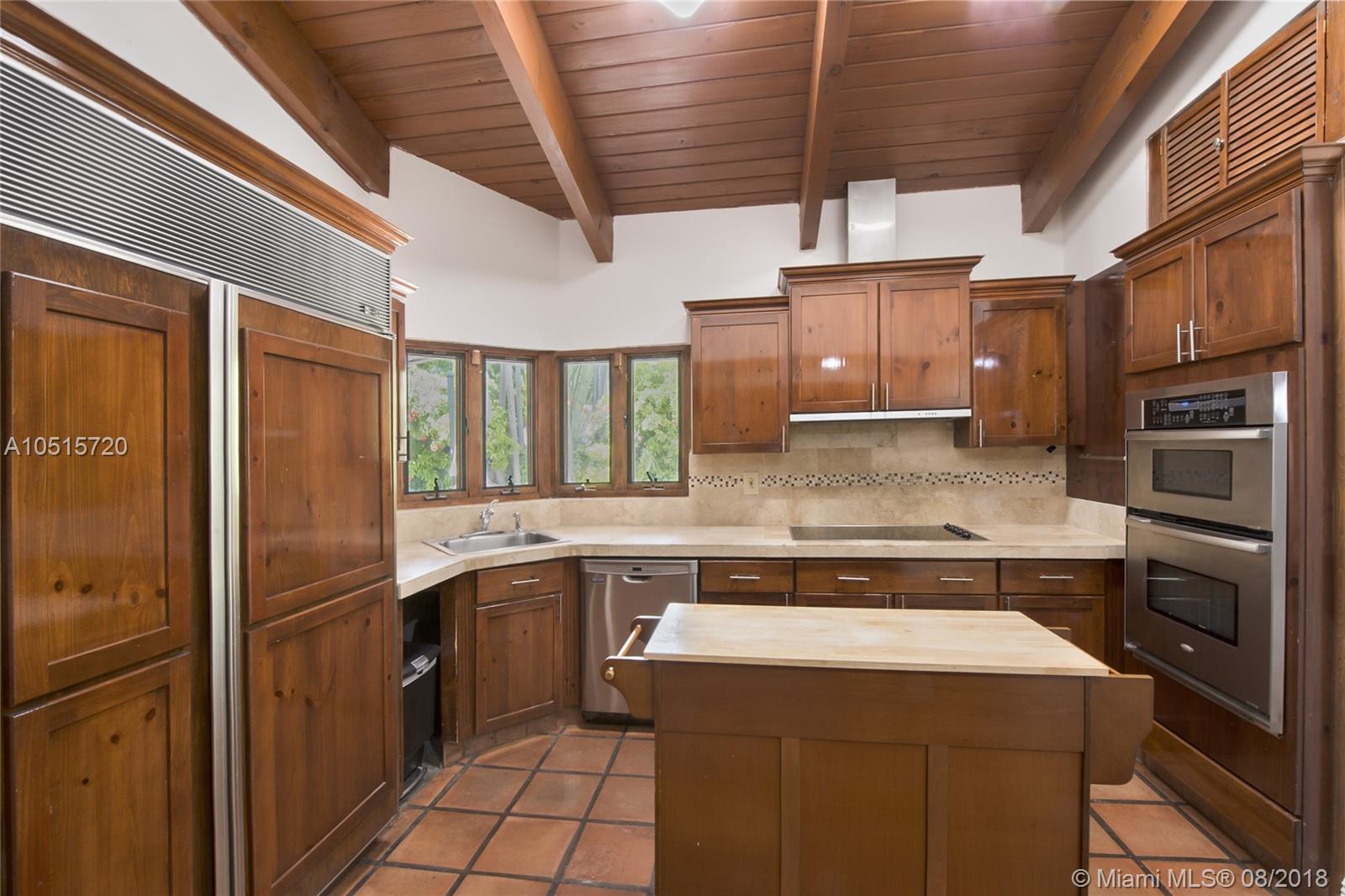 Elegant, spacious, bright and updated pool home with vaulted wood ceilings inviting light into all the house. Open and easy flowing floor plan featuring 5 large bedrooms, 3.5 baths, one bedroom (guest or service quarter) is located adjacent to the kitchen. Living areas open through French doors to a delightful pool and patio area. This is your perfect Key Biscayne location on a quiet street, carport and gated interior courtyard front entrance. This beautiful home is located within easy walking distance to all KB schools, shops, cafes, restaurants, parks, and places of worship. This elegant home won't last! Make your private viewing appointment today!