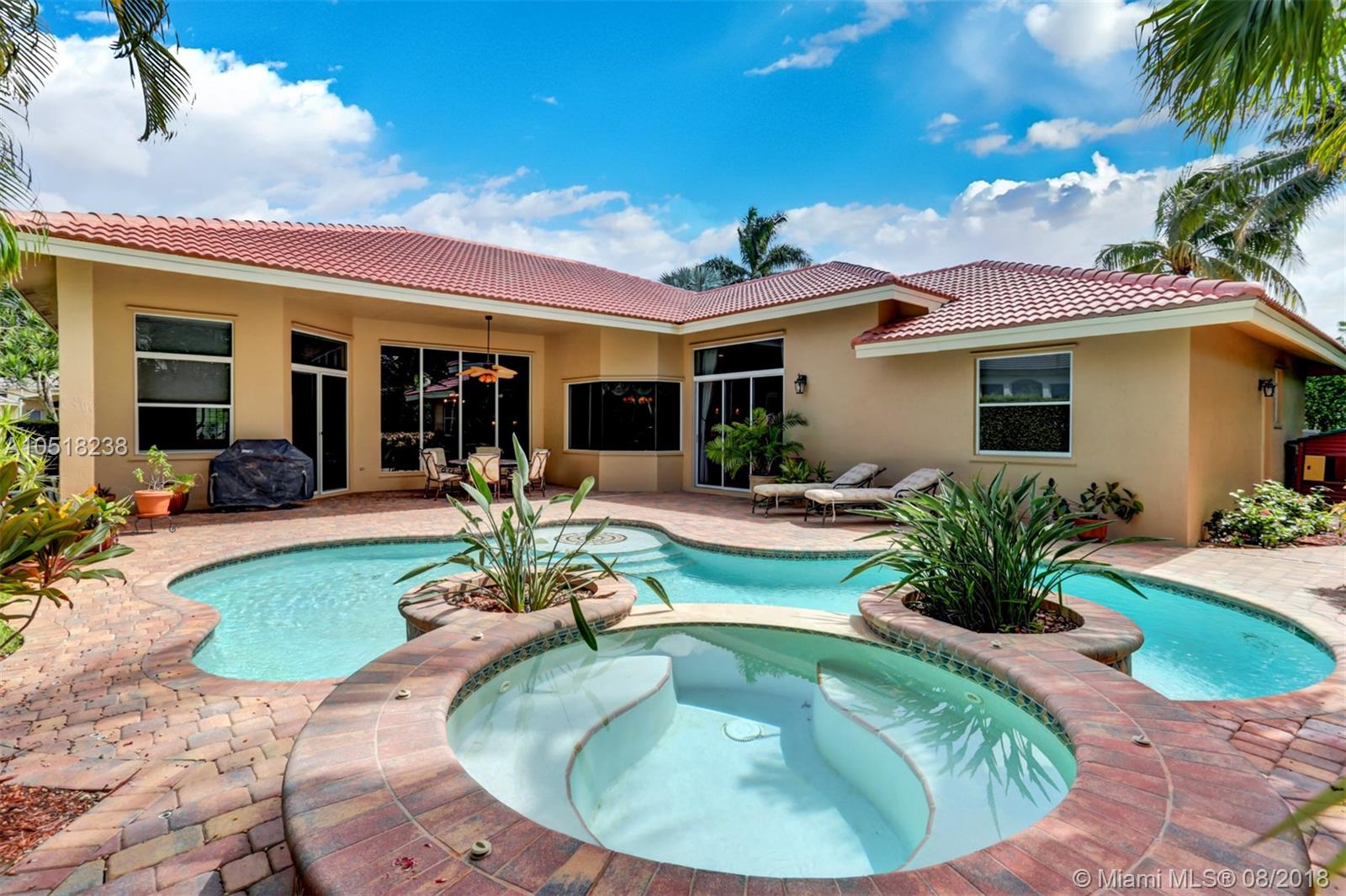 Florentine Elite model custom built home boasts 3200' square of luxurious living area and offers 5BR/3 1/2BA plus 3-car garage. Brand new roof installed June 2018, 2-zone Trane A/C units. Lushly landscaped and fenced backyard, beautiful pool and spa and covered patio. Master bedroom plus sitting room. Kitchen features granite counters, white wood cabinets, walk-in pantry and stainless steel appliances.