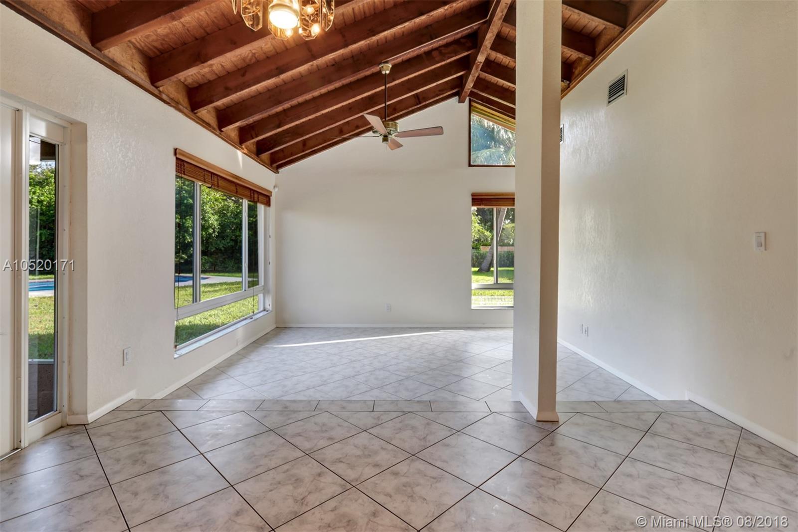 Come look at this wonderful home sitting on over 1/4 acre cul de sac location. This pool home offers vaulted ceilings throughout, A split bedroom plan, lots of windows and open plan with plenty of natural lights. Kitchen ideally situated between Family room on one side and Dining room/ Sunken Living room on the other side with soaring exposed beams. Large Master Bedroom with vaulted ceilings, Jacuzzi tub in Master Bath. Screened front porch and a large screened in patio overlooking the recently resurfaced pool and one huge backyard. Large concrete slab on the side that's perfect for a boat or RV. AC less than 2 tears, hurricane shutters. All this with a 2 car garage. What a fantastic floor plan and well designed home!