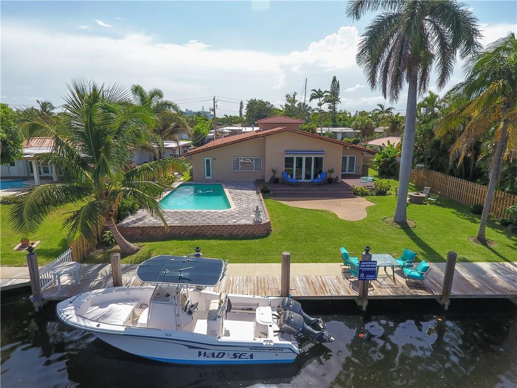 GORGEOUS WATERFRONT FAMILY HOME ONLY MINS TO THE OCEAN BY BOAT OR ON FOOT!! 3400 SQ. FT. SPRAWLING INTERIOR FEATURES HIGH CEILINGS, HUGE ROOMS, LIGHT/OPEN FLOORPLAN W/ GOURMET KITCHEN, 2 WATERFRONT ENSUITE BEDROOMS & MASTER W/ GIANT CLOSET! PLENTY OF ROOM TO ENTERTAIN INSIDE & OUT WITH OVERSIZE LOT W/ BIG BACKYARD, 80' NEWER DOCK & SEAWALL, SUN DRENCHED POOL, ENDLESS WATER VIEWS, & SITUATED FOR PRIVACY FROM NEIGHBORS ACROSS CANAL! BIKE TO LAS OLAS, WALK TO LAGO MAR RESORT, CLOSE TO EVERYTHING! MUST SEE!