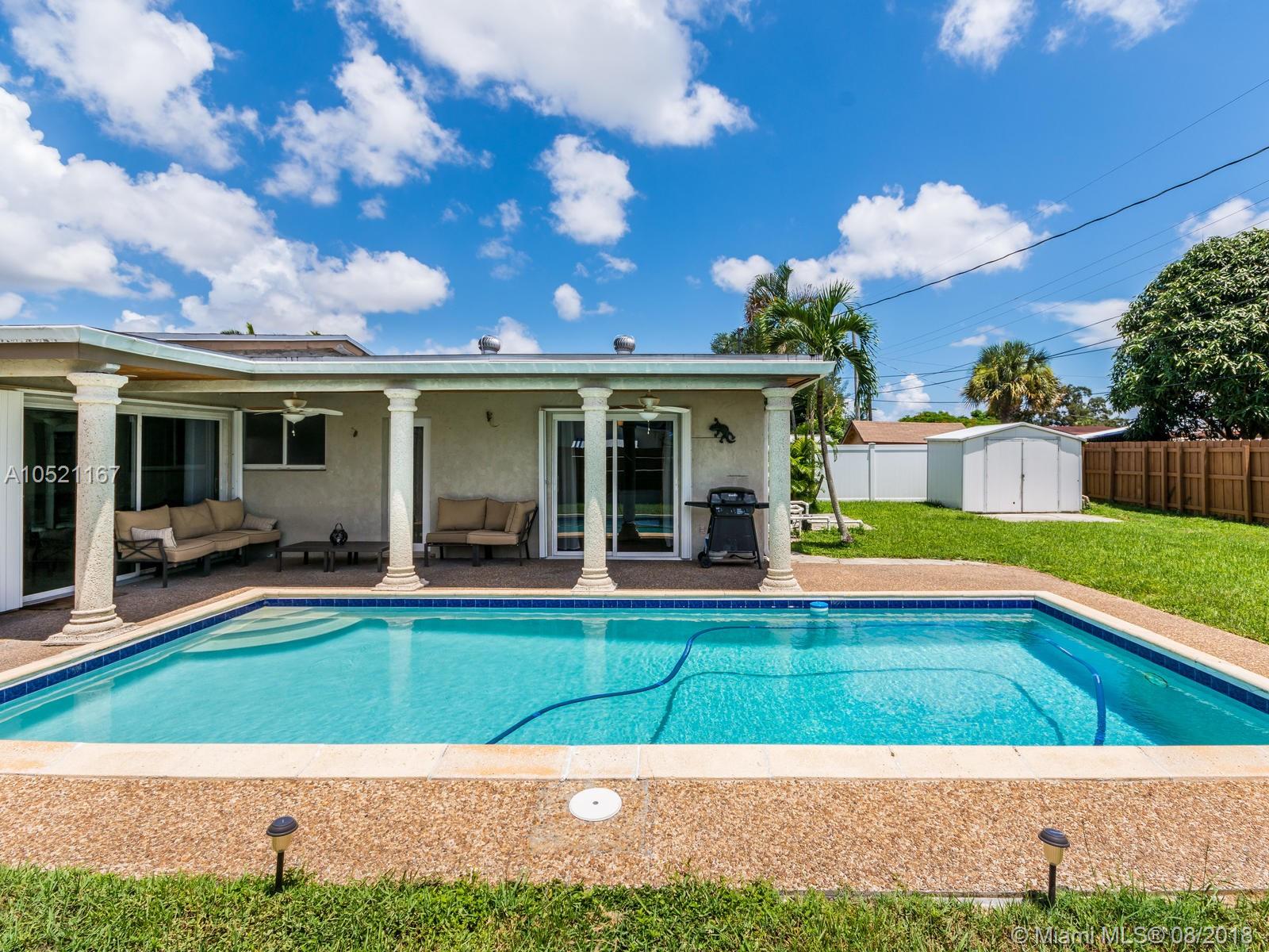 Come on in and see this lovely pool home in west Hollywood. Spacious great room with flex space for living and dining is a perfect place to entertain. Separate utility room with access to a nice sized yard where there's room for kids to play or to grow your own veggies in the garden. Outside is a covered space with fans to keep cool as you watch the kids play in the pool or barbecue your favorite meal. Lots of room to entertain. Cabana bath access from master and french doors open to patio from master bedroom with a relaxing view. Two more bedrooms and a bath finish the living space. There's a shed out back to store your pool toys and floats or that lawn mower! Showings by appointment only Great home at a greater price! Come, see and stay!