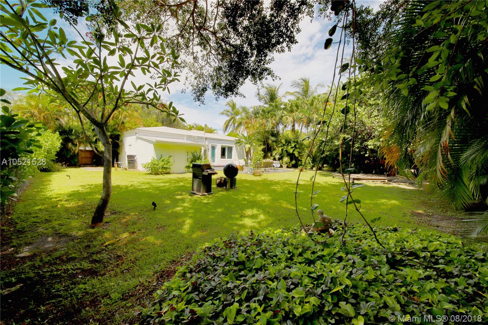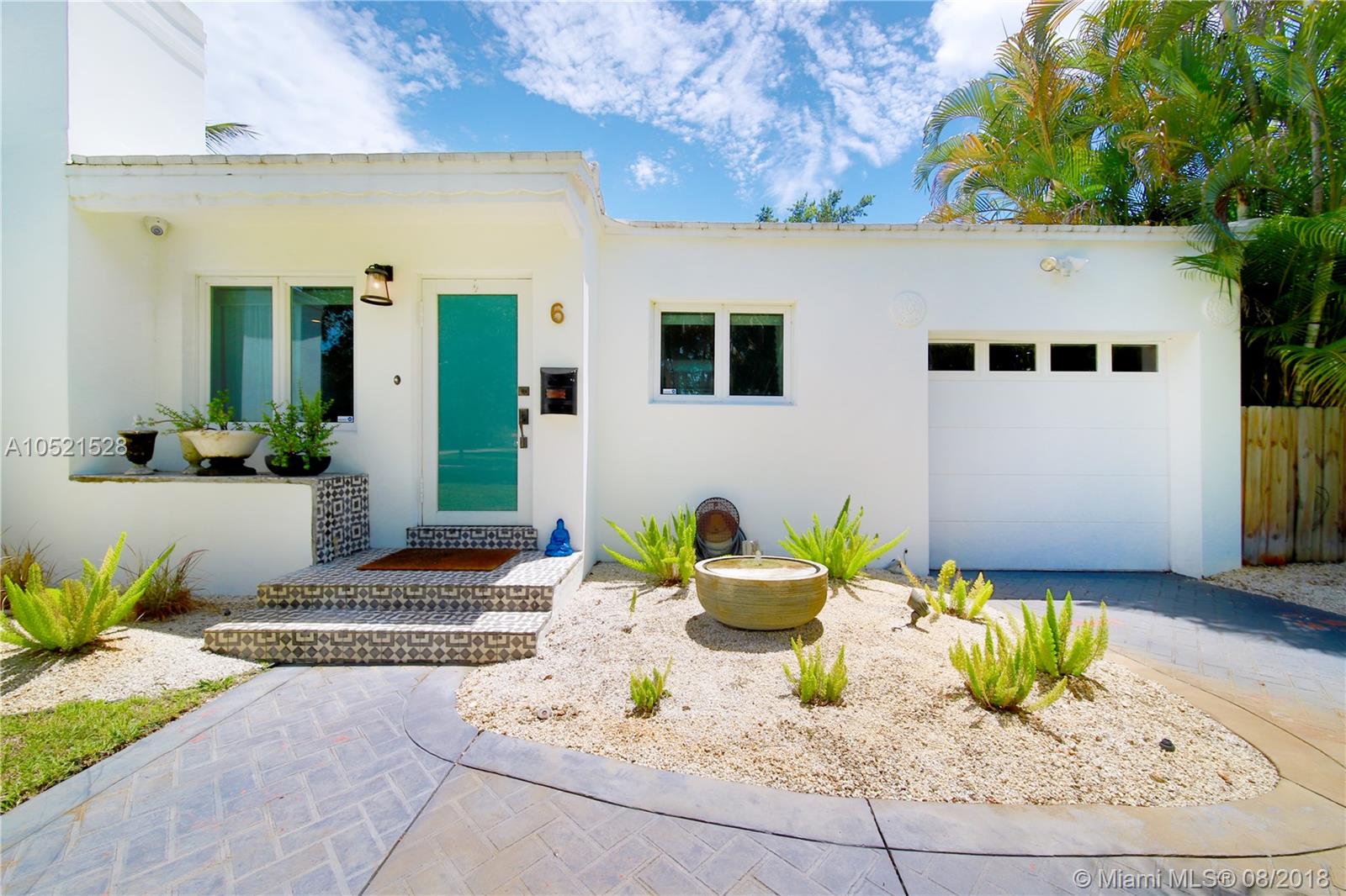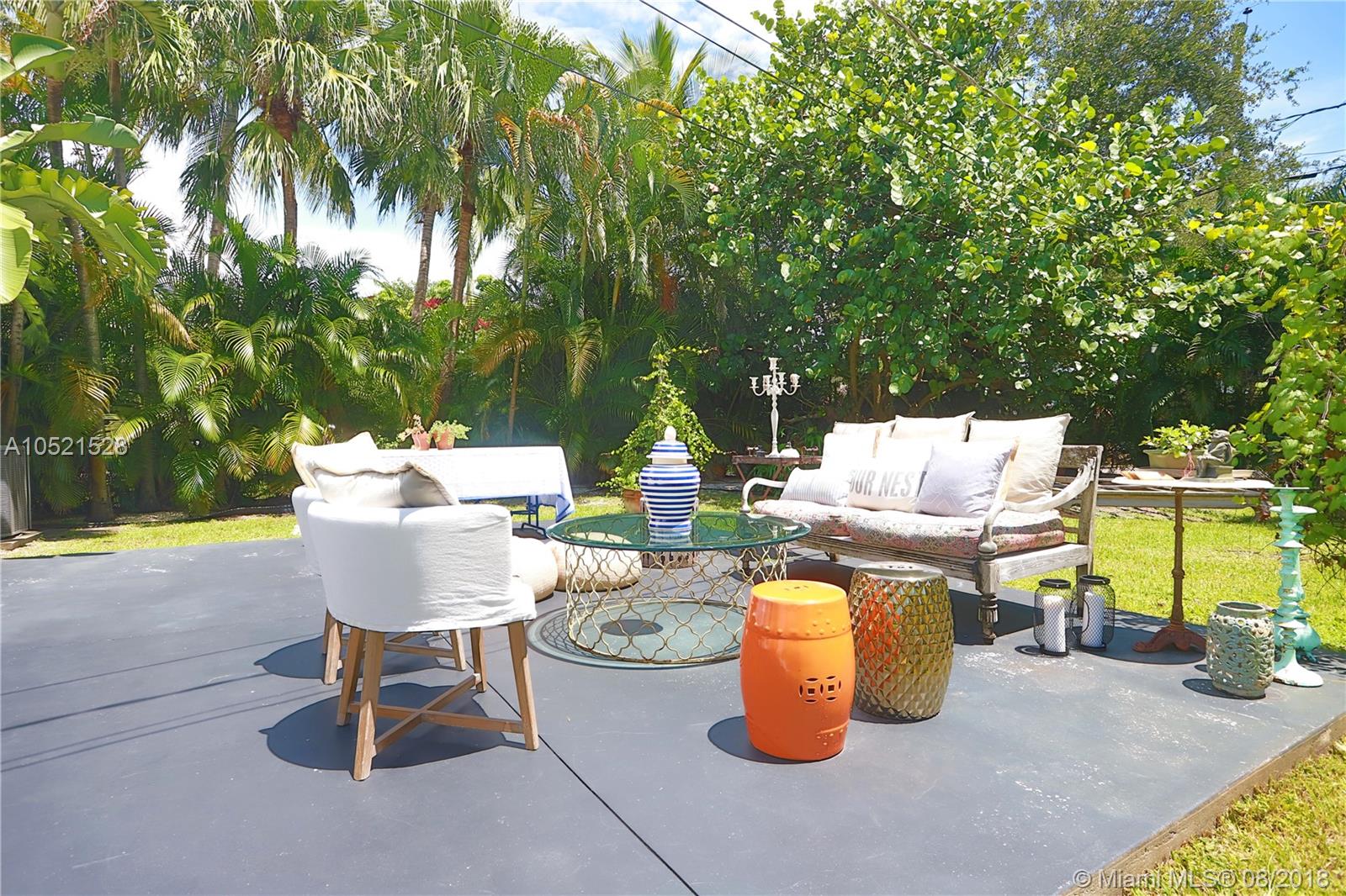 SHORES CASA PALMAS - Live large in this smartly-updated compact 1940s dream home with Deco design details and countless upgrades. Wide-open living area is spacious and perfect for get-togethers. Modern eat-in open gourmet kitchen boasts sleek white cabinetry, SS appliances, and a Carrara marble top island with gas range. Beautifully-maintained original finishes and upgrades include rich hardwood floors, gorgeous retro-chic tiles, new AC, upgraded plumbing and electric, recessed lighting, indoor-outdoor sound system, security cameras throughout, smart Nest thermostat, and impact windows and doors overlooking the private lush tropical backyard with room for a pool. Plus a convertible one-car garage and full storage room. All on a large corner lot in the heart of Miami Shores!