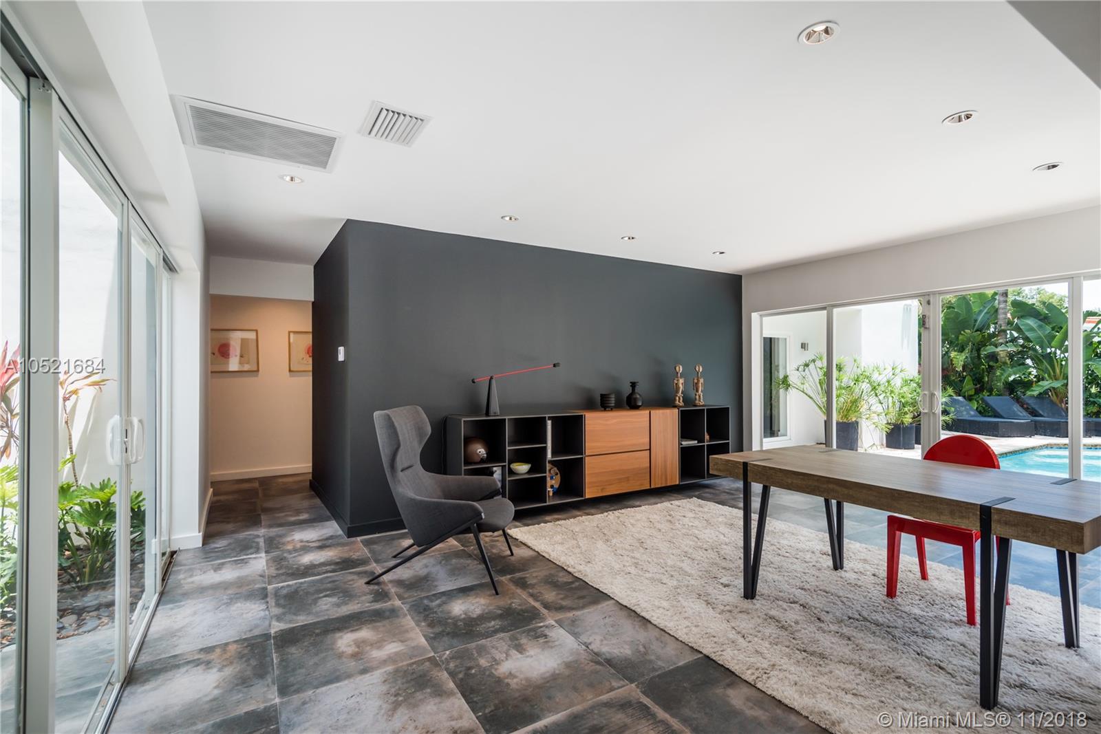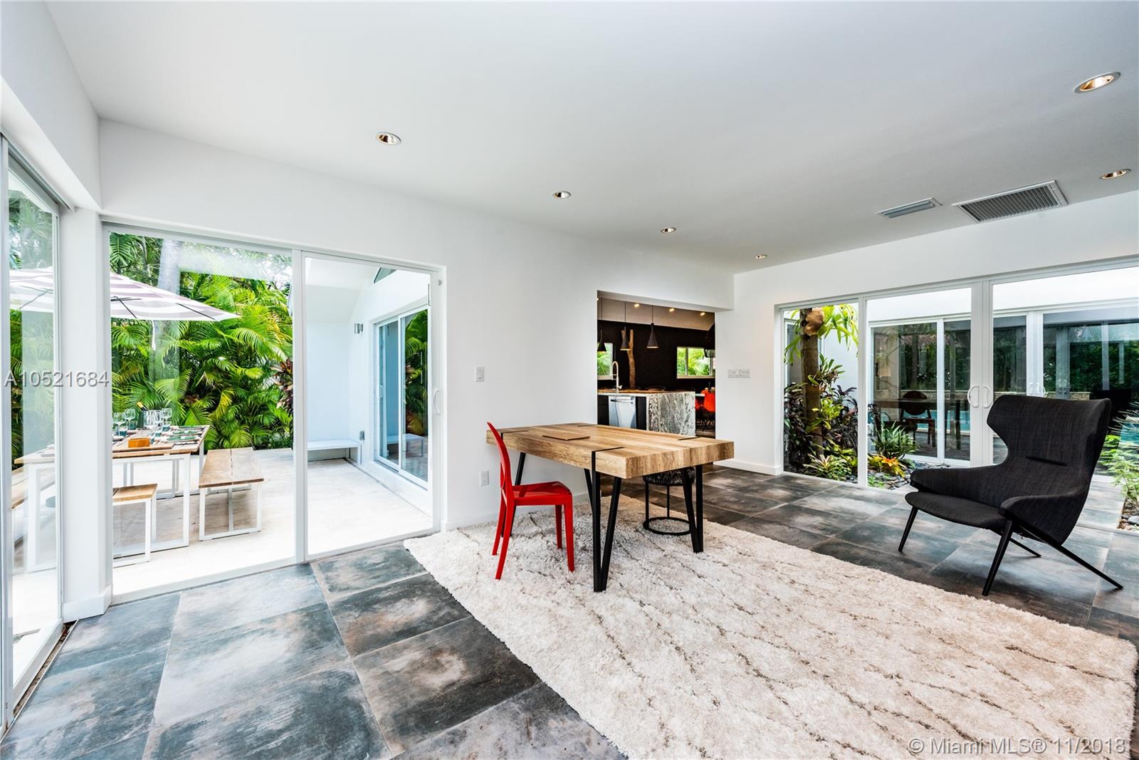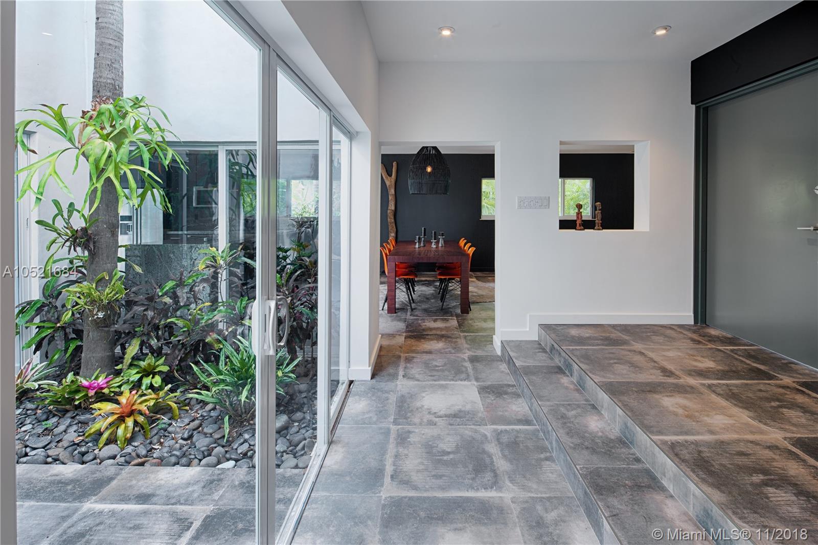 This modern masterpiece looks like it came right out of Architectural Digest magazine! Nestled in a mature canopy tree hammock, this splendidly-renovated statement compound features smart, subtle mid-century inspired design. A spacious, light-filled, modern marvel, delightfully and tastefully secluded from the public realm with intimate privacy. Entertainers will relish the indoor-outdoor living with an oversized custom waterfall pool, multiple entertainment patios, and the Instagram-ready one-of-a-kind open-air atrium at the heart of the home. Thoroughly updated with new roof, electrical, plumbing, European porcelain floors, kitchen and baths, Lutron lighting, impact windows and a spacious two car garage. All in Miami Shores' most prestigious neighborhood, east of Biscayne.