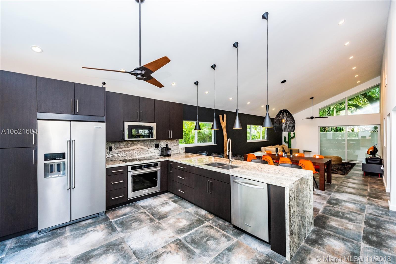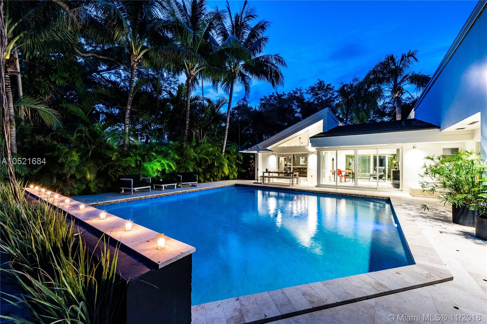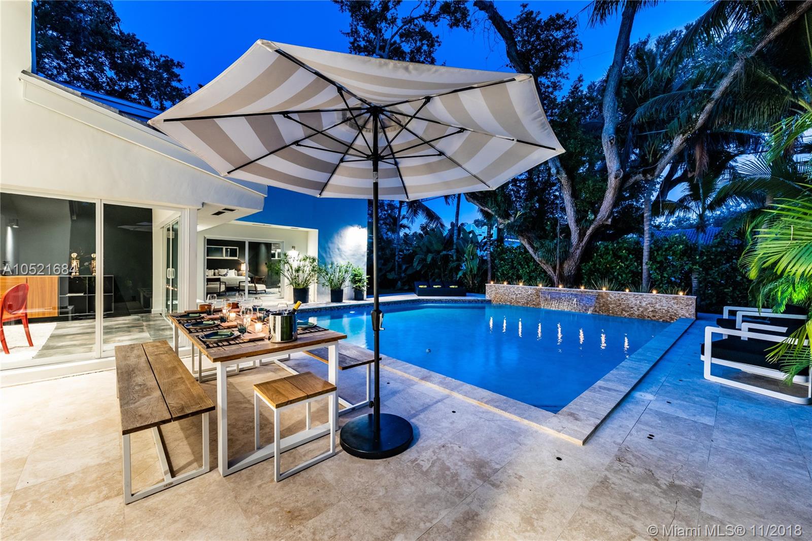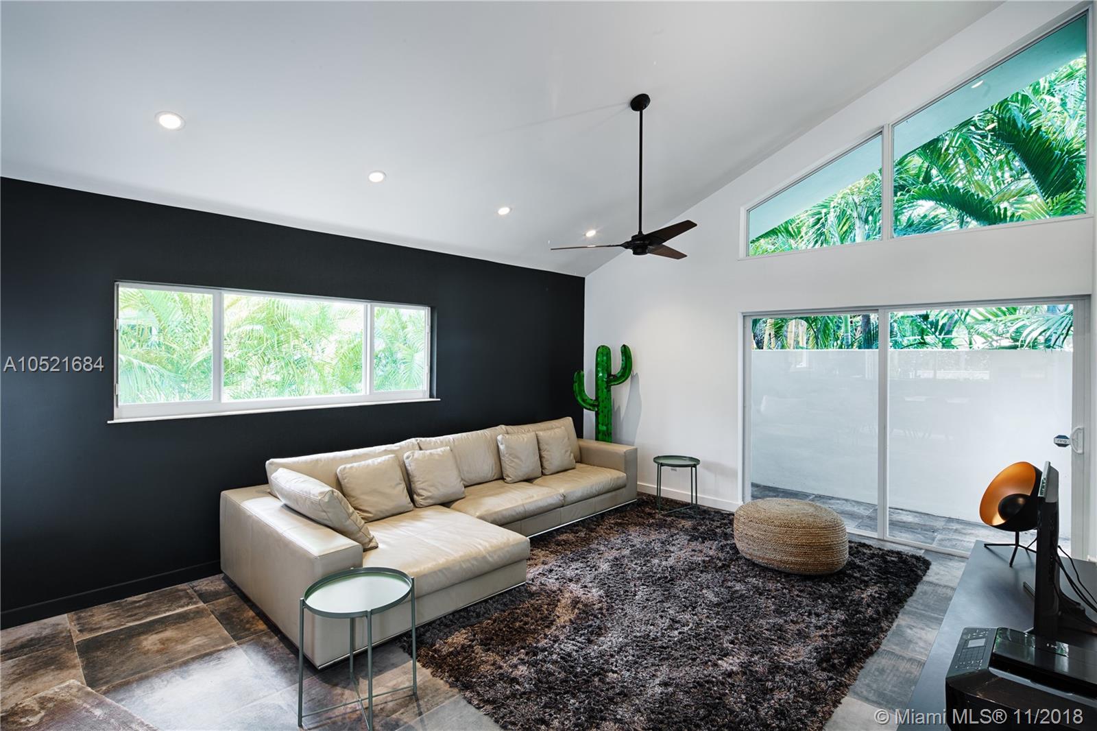 This modern masterpiece looks like it came right out of Architectural Digest magazine! Nestled in a mature canopy tree hammock, this splendidly-renovated statement compound features smart, subtle mid-century inspired design. A spacious, light-filled, modern marvel, delightfully and tastefully secluded from the public realm with intimate privacy. Entertainers will relish the indoor-outdoor living with an oversized custom waterfall pool, multiple entertainment patios, and the Instagram-ready one-of-a-kind open-air atrium at the heart of the home. Thoroughly updated with new roof, electrical, plumbing, European porcelain floors, kitchen and baths, Lutron lighting, impact windows and a spacious two car garage. All in Miami Shores' most prestigious neighborhood, east of Biscayne.