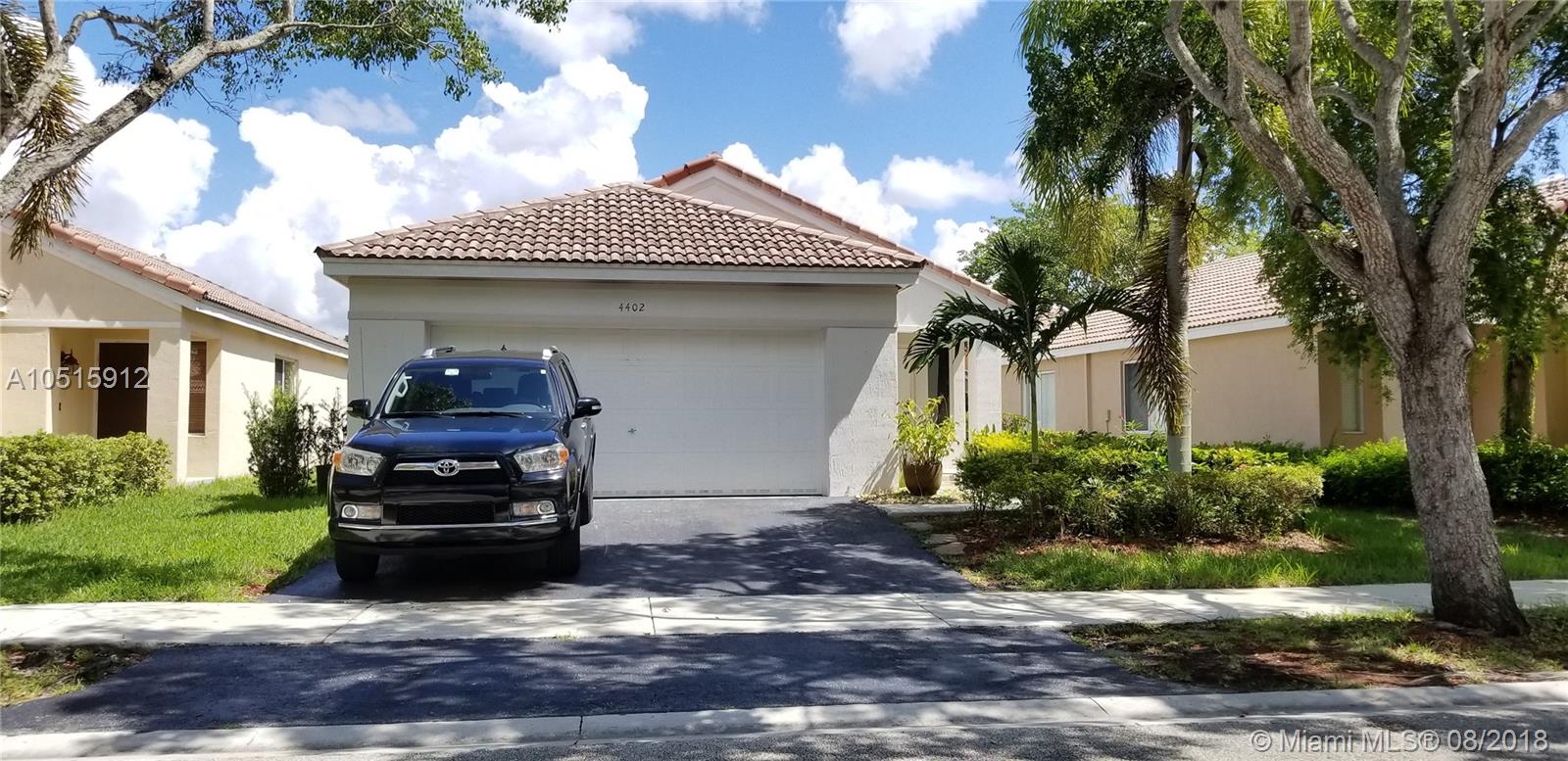 Absolutely Beautiful Move-In Ready! 1 story single family home in the heart of Weston w/ 3 bedrooms, 2 bath, 2 car garage. Wood laminate floors though-out the common areas with carpet in the bedrooms. Open patio over looking a pleasant and private backyard ideal for entertaining. Amenities include a great pool and playground. Conveniently located, close to great schools, park, major roadways and much more. View broker remarks for showing instructions!
