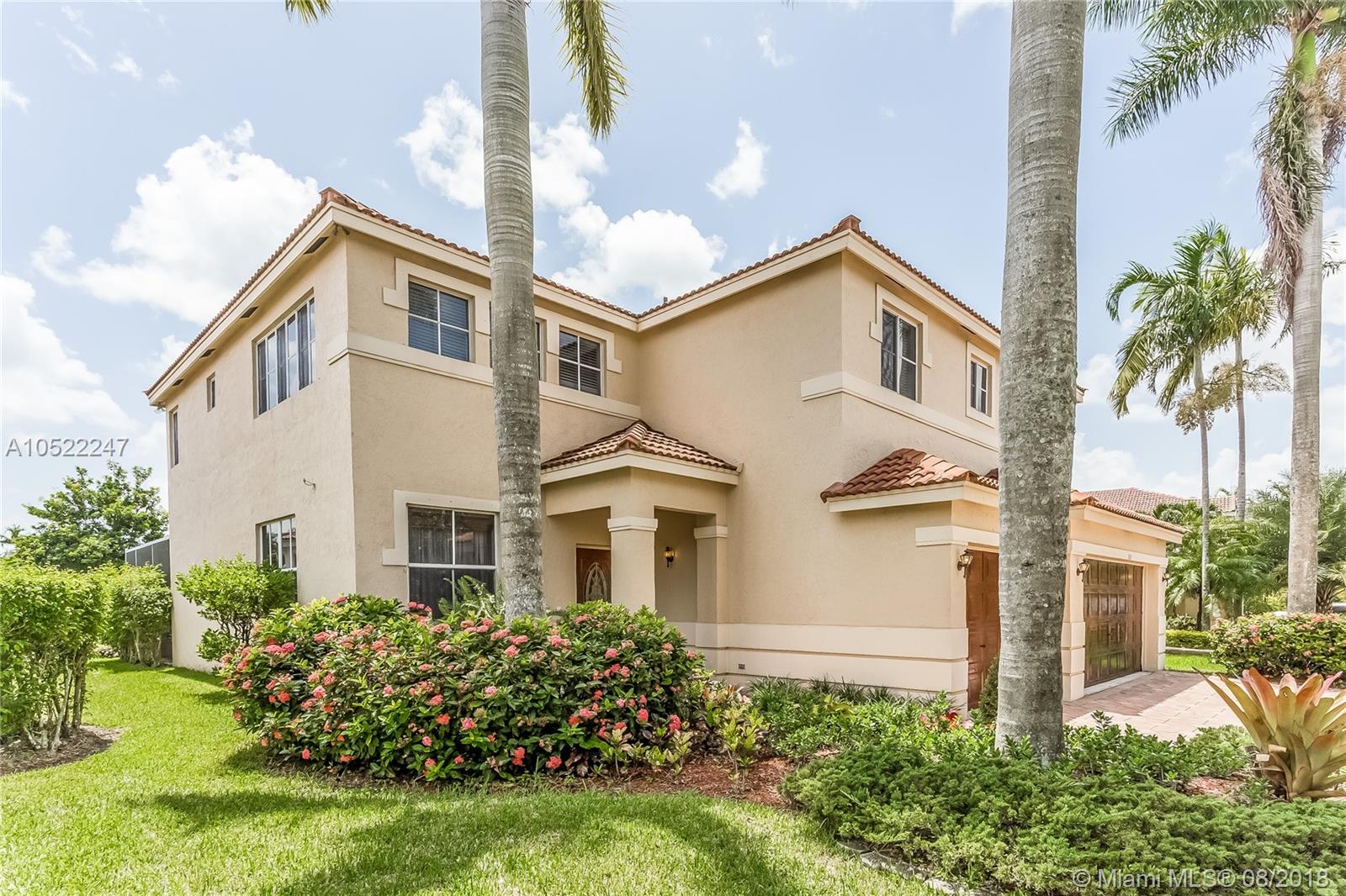 This 6-bed 4-bath single-family home is located in The Meadows, a luxury private Weston Community, with 3,207 sqft of living area and 3,723 total sqft. Recently Renovated: New AC and Hot Water Heater, All New Master Bathroom, Kitchen with Eat- in Breakfast area, Formal Dining, Formal Living Room, Patio Recently Re-Screened overlooking Waterfront w/ plenty of room for private pool if desired. Beautiful Real Wood Floors, & Extra Large Tile in Large Family Room. Lakefront Home, largest lake in Weston, great for fishing. Master Bedroom has bonus room, sitting room/nursery. Guest/Nanny Bedroom & full Bath on 1st level, 5 Bedrooms on 2nd Floor, 3 car garage, Led Energy Efficient lighting throughout. Lushly Landscaped with Fruit Trees, Great Community Pool down the street.