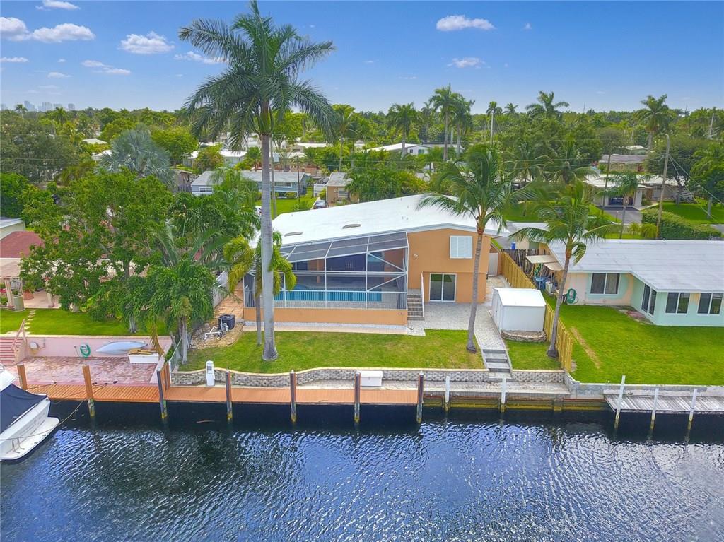 Turn-key Lauderdale Isles deep water 4BR/4BA with 65 ft on ocean access canal, private dock, no fixed bridges. Newly redesigned interior w/new lighting, grasscloth wall covering, porcelain tile flooring throughout. Vaulted ceilings in living + dining rooms w/ sliding pocket doors opening to screened patio and heated pool for year-round entertaining. Renovated kitchen w/top-of-the-line stainless appliances, granite counters overlooking family room. Newer W/D, HWH, pool heater impact windows 2016, A/C 2017.