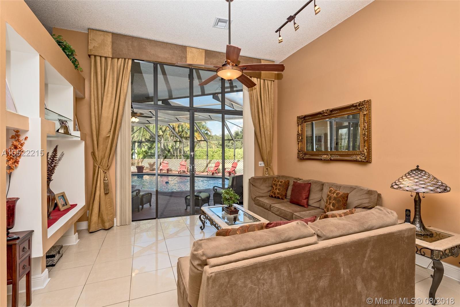 Beautiful corner home located at Tequesta Point Gated community. Four bedrooms / 3 bathrooms, immaculate with many upgrades. This home features: Vaulted ceilings, oversized backyard with screened patio porch, viewing the swimming pool area, manicured landscaping, upgraded kitchen with granite counter tops, walk-in pantry, and garage has upgrades for storage purposes. Air conditioning was replaced on 2014, roof was replaced on 2007, and accordion shutters in windows. Conveniently located, close by Peace Mound Park and A+ schools. MOVE-IN READY, HURRY-MUST SEE.