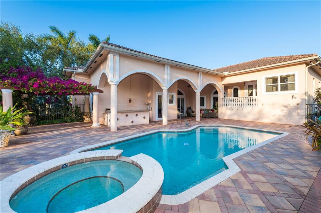 One of a kind custom residence in the exclusive gated community of Northstar Estates. Open floor plan, perfect for entertaining. Gourmet kitchen w/top of the line appliances. This 5/4.5 offers an elegant master suite with generously sized his and hers walk-in-closets, marble bathrooms, private balcony, morning kitchen. Expansive covered outdoor living w/outdoor kitchen & resort style heated pool feat. sun-shelf Jacuzzi spa surrounded by lush tropical grounds. All windows in the home are hurricane/impact windows.