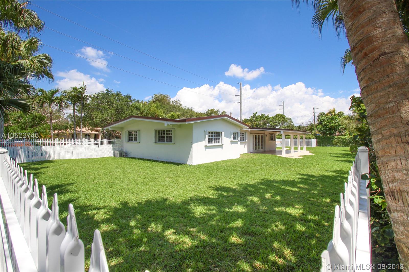 Located in Pinecrest is this completely remodeled 4 bedroom/2 bathroom home built on 16,365 sq. ft. of land. Beautiful all white gourmet kitchen features quartz counter tops, custom cabinetry, and all stainless steel appliances and both bathrooms as well feature quartz countertops with beautiful grey cabinetry. With Epoxy floors throughout the whole house, there are also gorgeous light fixtures and vaulted wood ceilings to give the open concept in living areas. This stunning home has a brand new roof, circular driveway, extended 2 car garage with laundry sink, and a spacious backyard with covered patio. This lot has a newly installed sprinkler system and fresh grass with plenty of space for a custom pool or can keep as is for a huge play area for kids.