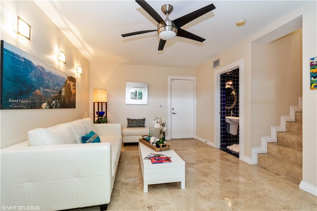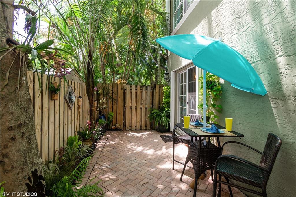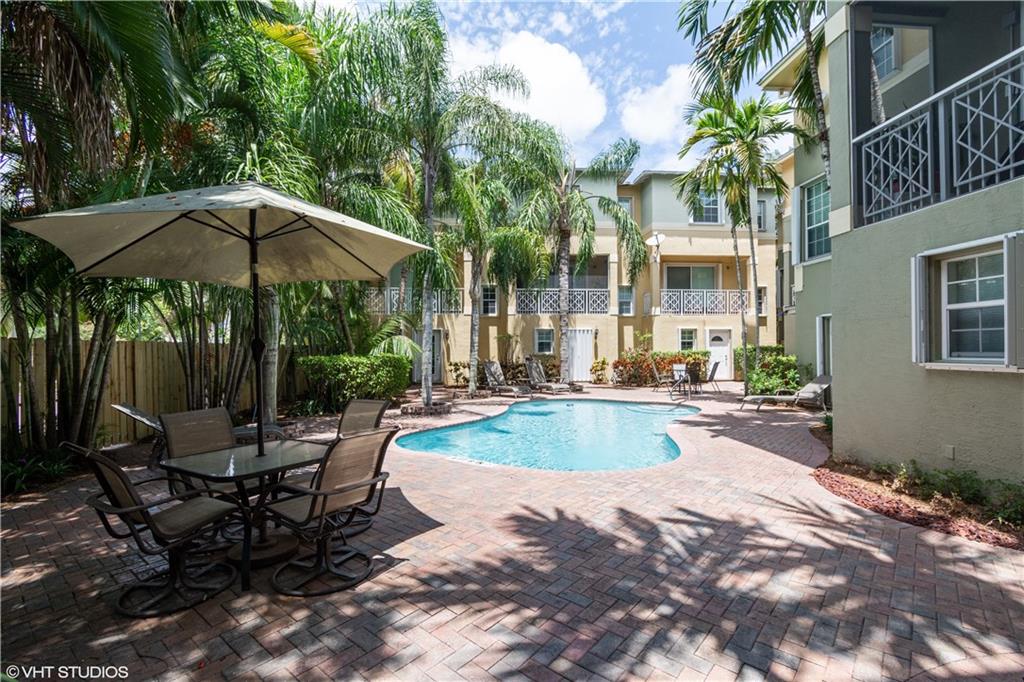 Fabulous & Bright 3 Bedroom, 3 Bath townhome with 1 car Garage & Private Rear Patio. Totally Upgraded. Move-in ready! Designer finishes through-out. VOLUME Ceilings. New LED lighting, Travertine Marble floors-newly refinished. Open floorplan, Kitchen boasts Custom Xtra tall wood cabinets, granite countertops & full backsplashes, custom pot filler, pot rack, upgraded fixtures, Stainless Steel appliances & breakfast bar. 3 Full bathrooms with Designer finishes. Nice Master bedroom with 2 upgraded California walk-in closets. 3rd bedroom currently used as Den. Newer AC. & Nest. Freshly painted through-out. Newly landscaped patio. Must see! Quaint & Quiet TH community with POOL. Walking distance to Las Olas Riverfront, Performing Arts, Downtown. Pet friendly. Low HOA fees. Community Pool.