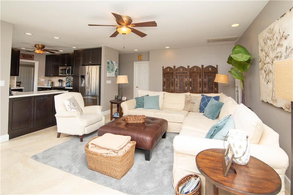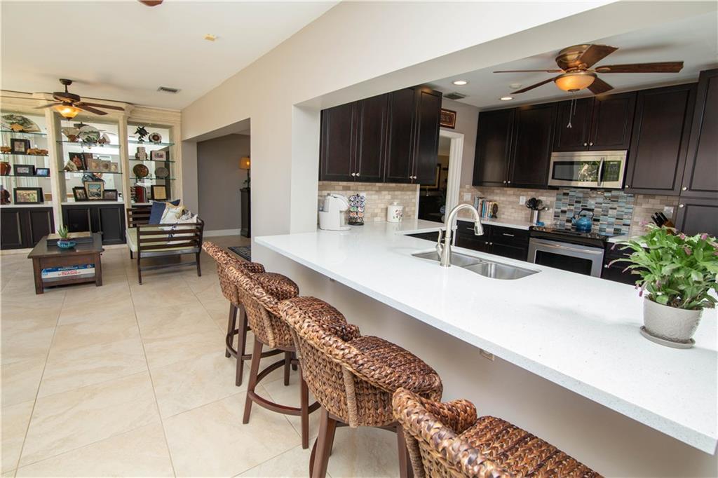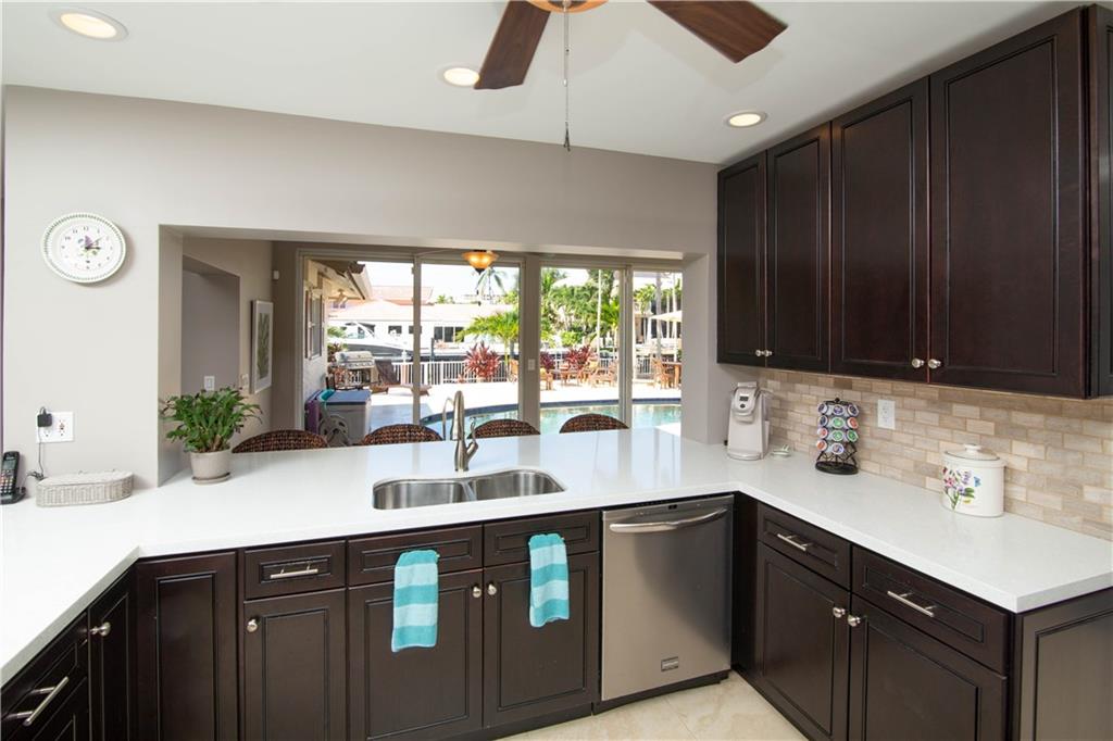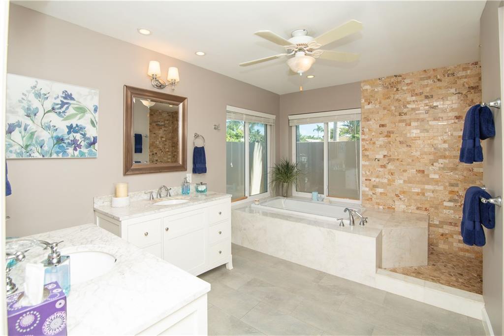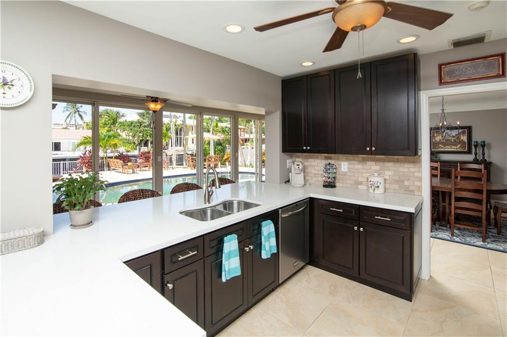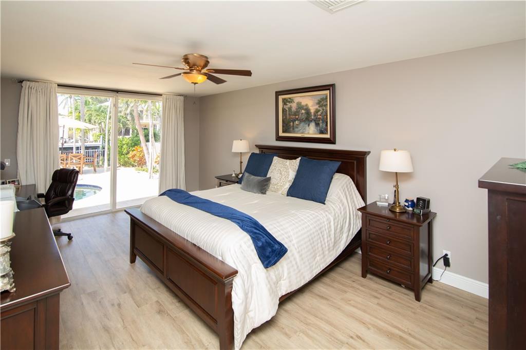 This spacious, tastefully remodeled home is ideal. The four large bedrooms have waterviews and ensuite bathrooms. A mix of hardwood and ceramic floors provide a warm and welcoming ambiance. A large open kitchen off the dining and entertainment areas provides a well lighted space for prepping, cooking, and entertaining. Ceiling to floor patio doors allow for unobstructed views of the pool, the dock, and the waterfront. This home provides the best floor plan in the area.