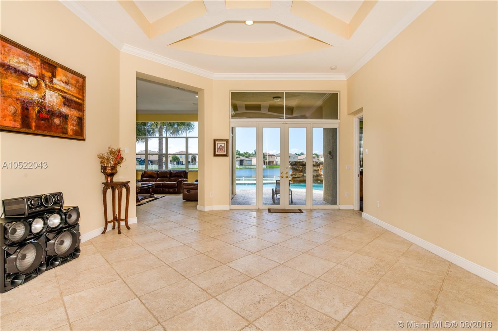 This large rare Palazzo Collection 1 story lakefront Biarritz model has everything you have been waiting for! Step in through the glass doors and you will fall in love! Lots of sunshine, coupled with volume and tray ceilings breathe fresh air into this home. Spectacular lake views from all the living areas as well as the master suite with private ensuite bath. The large chefs style kitchen which opens to the family room is perfect for entertaining. Step through the rear French doors and Imagine a lazy afternoon lounging by the pool overlooking the tranquil lake all from your fully fenced yard! All of this within a beautiful resort style community!