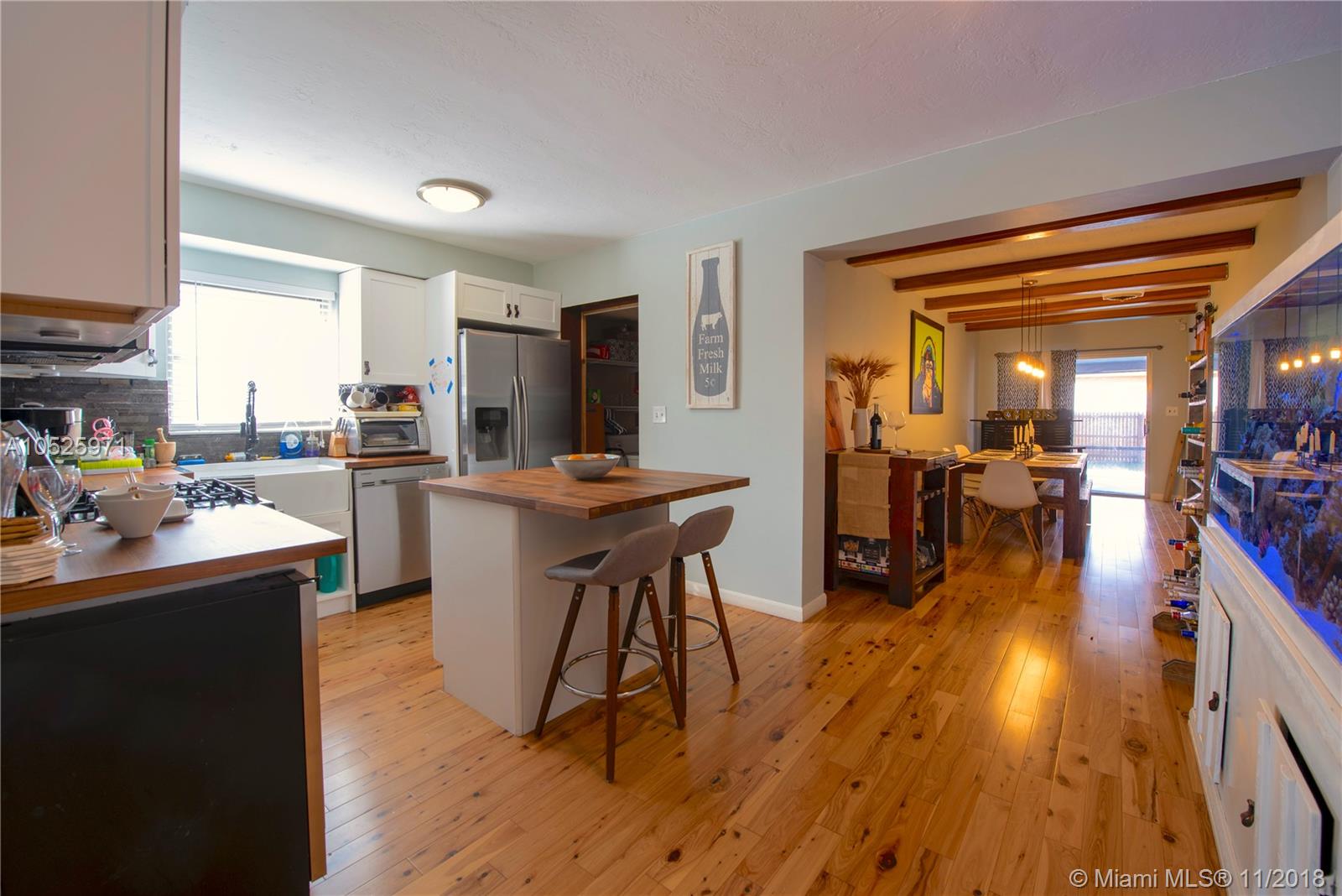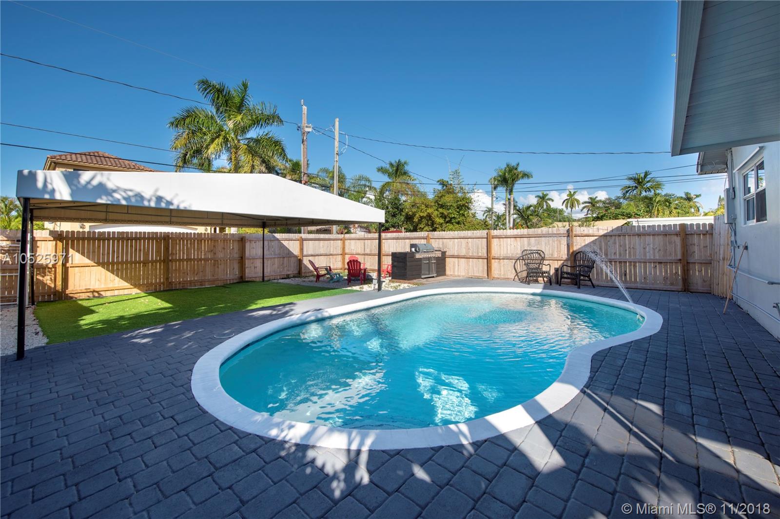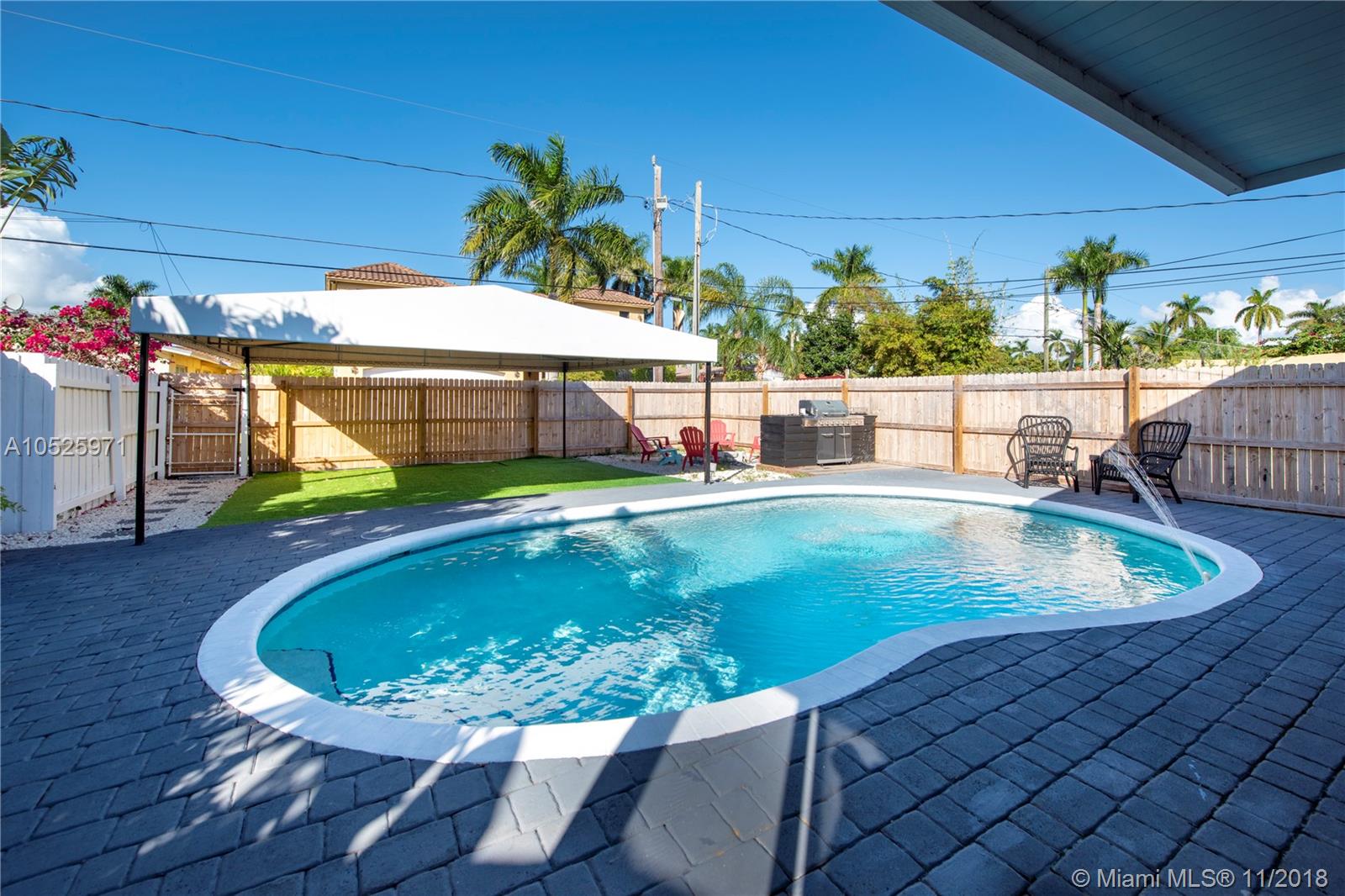 Come experience this large and beautifully renovated 3/2 single family home with a large salt water pool and space for carport. Kitchen features new cabinets, countertops, and state of the art kitchen appliances including a gas stove. Beautiful hardwood floors throughout. Split bedroom plan. All three bedrooms rooms are large enough to fit a king size bed. Large and open living room space. Hurricane impact windows in the front and back of the house and bertha hurricane shutters for the remaining windows. Large size backyard big enough to fit a small boat and built in grill for entertaining. Separate laundry room with full size washer and dryer. Roof and AC replaced under 4 years, pool pump was replaced 3 years ago, electrical system upgraded and the home has a security system. NO HOA!