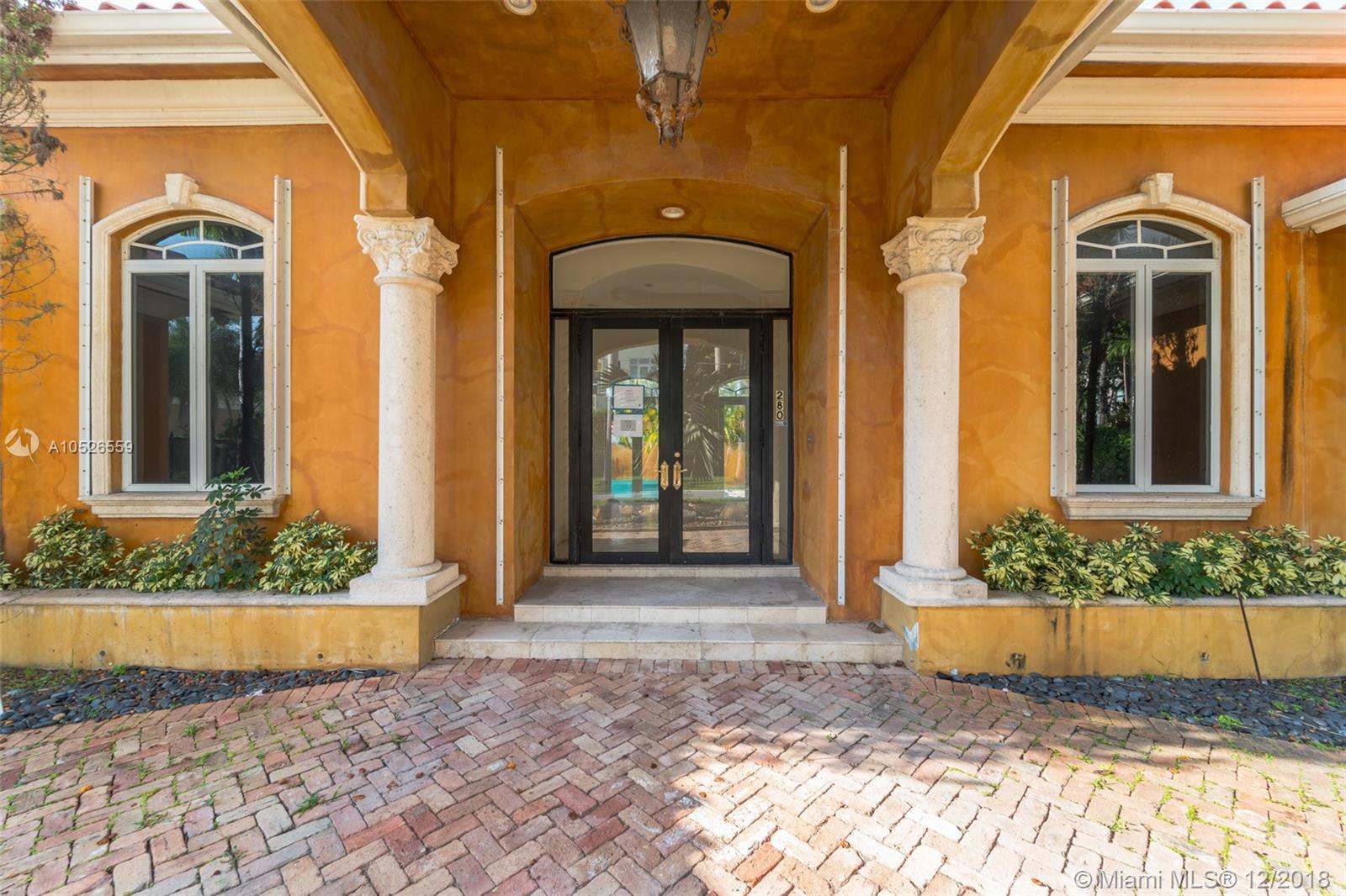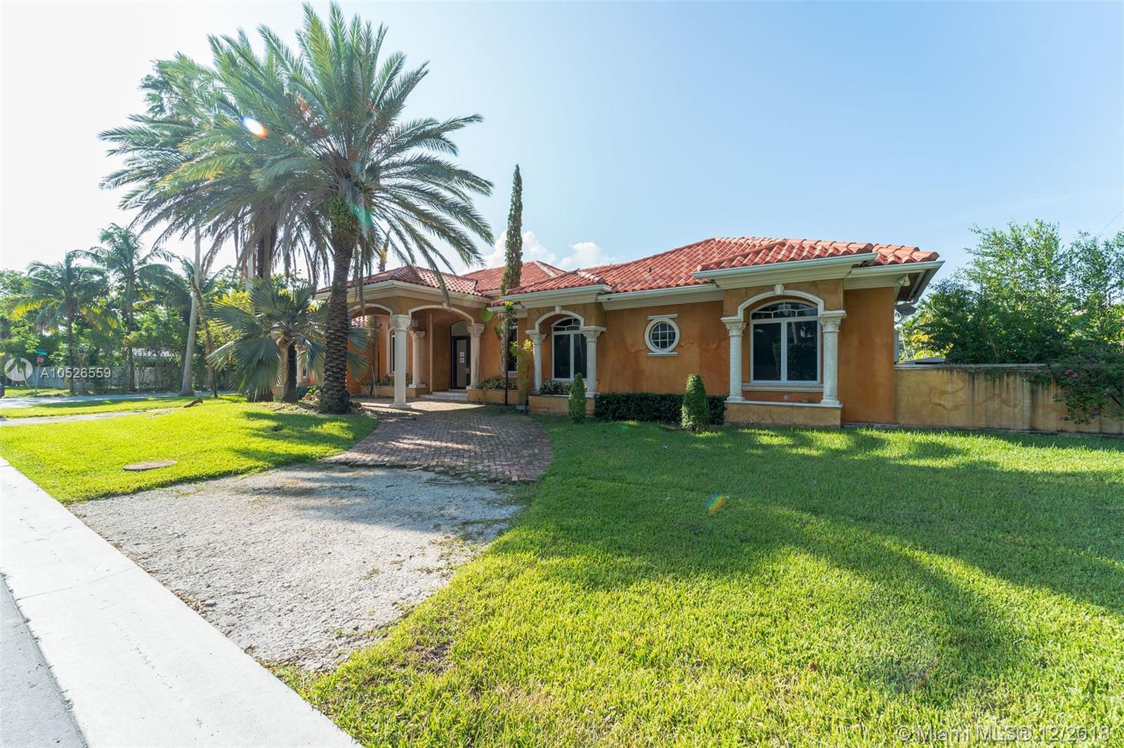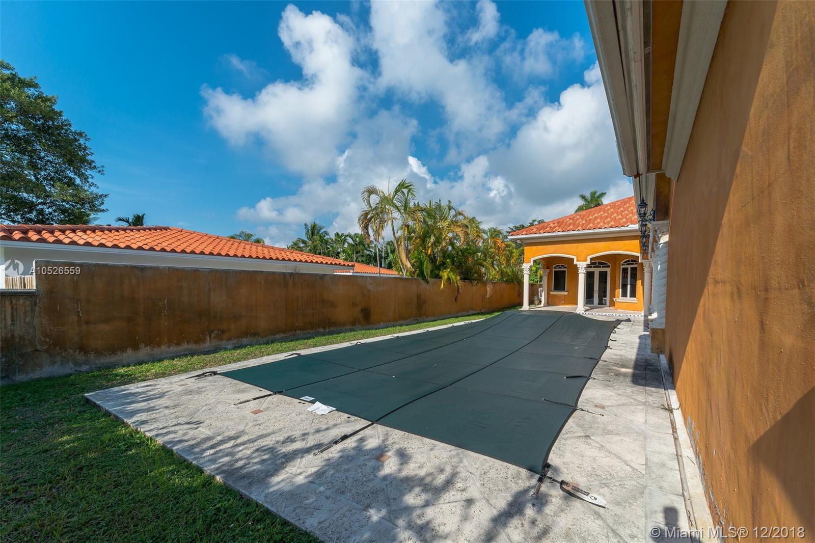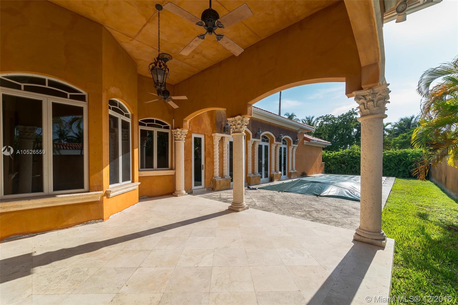 Beautiful custom built home with pillars and marble floors throughout in Gated community. 4 bedroom and 4 bathroom located on corner lot. Amazing outdoor space with covered lanai, in ground pool, cabana, and a fenced in backyard. Volume Ceilings, Spacious kitchen with marble counter tops, separate dining, family rooms and wine cellar. This is a must see must buy home. Come take a look today.