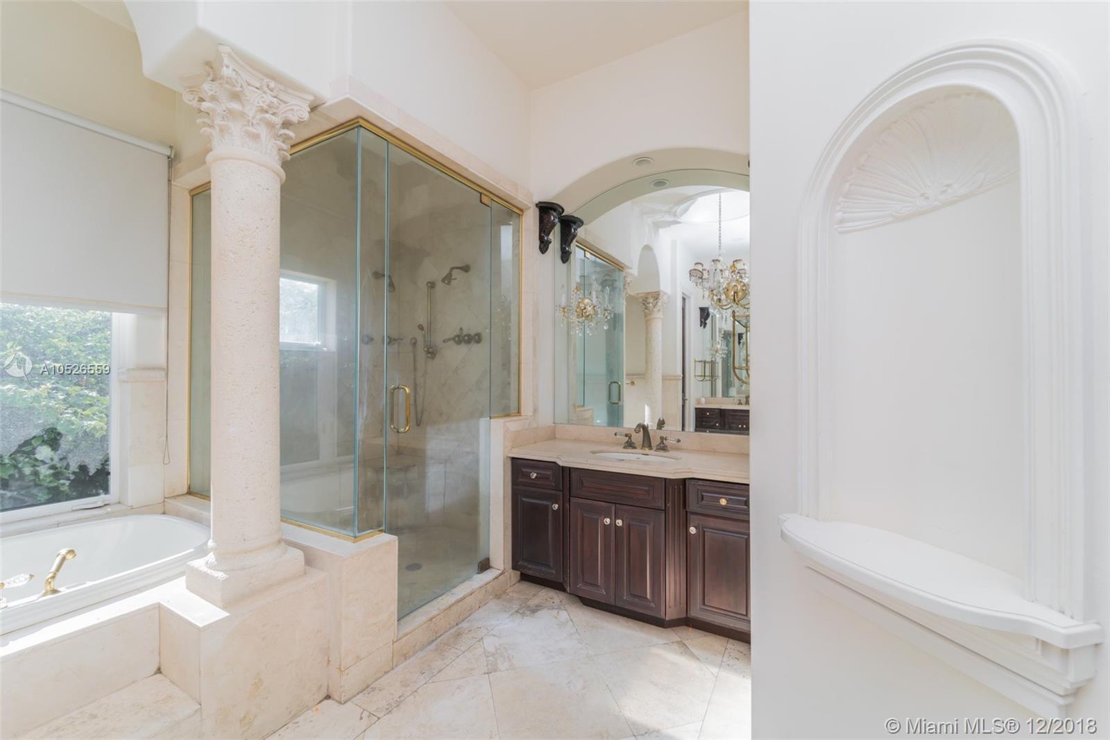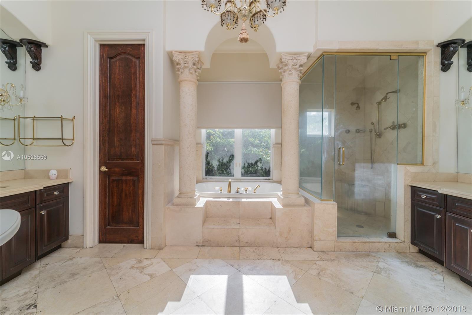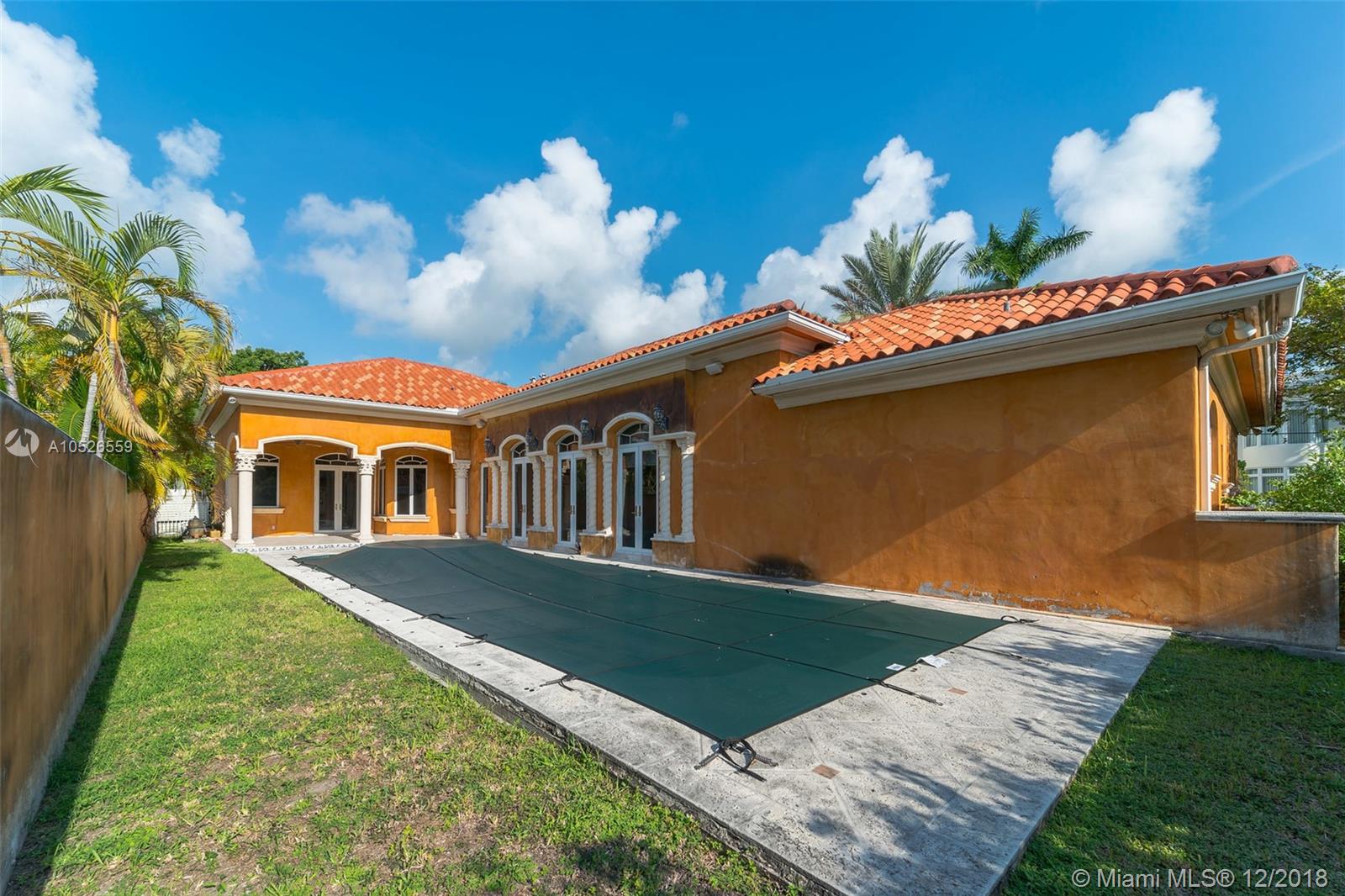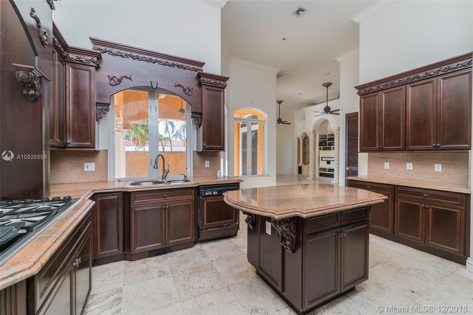 Beautiful custom built home with pillars and marble floors throughout in Gated community. 4 bedroom and 4 bathroom located on corner lot. Amazing outdoor space with covered lanai, in ground pool, cabana, and a fenced in backyard. Volume Ceilings, Spacious kitchen with marble counter tops, separate dining, family rooms and wine cellar. This is a must see must buy home. Come take a look today.