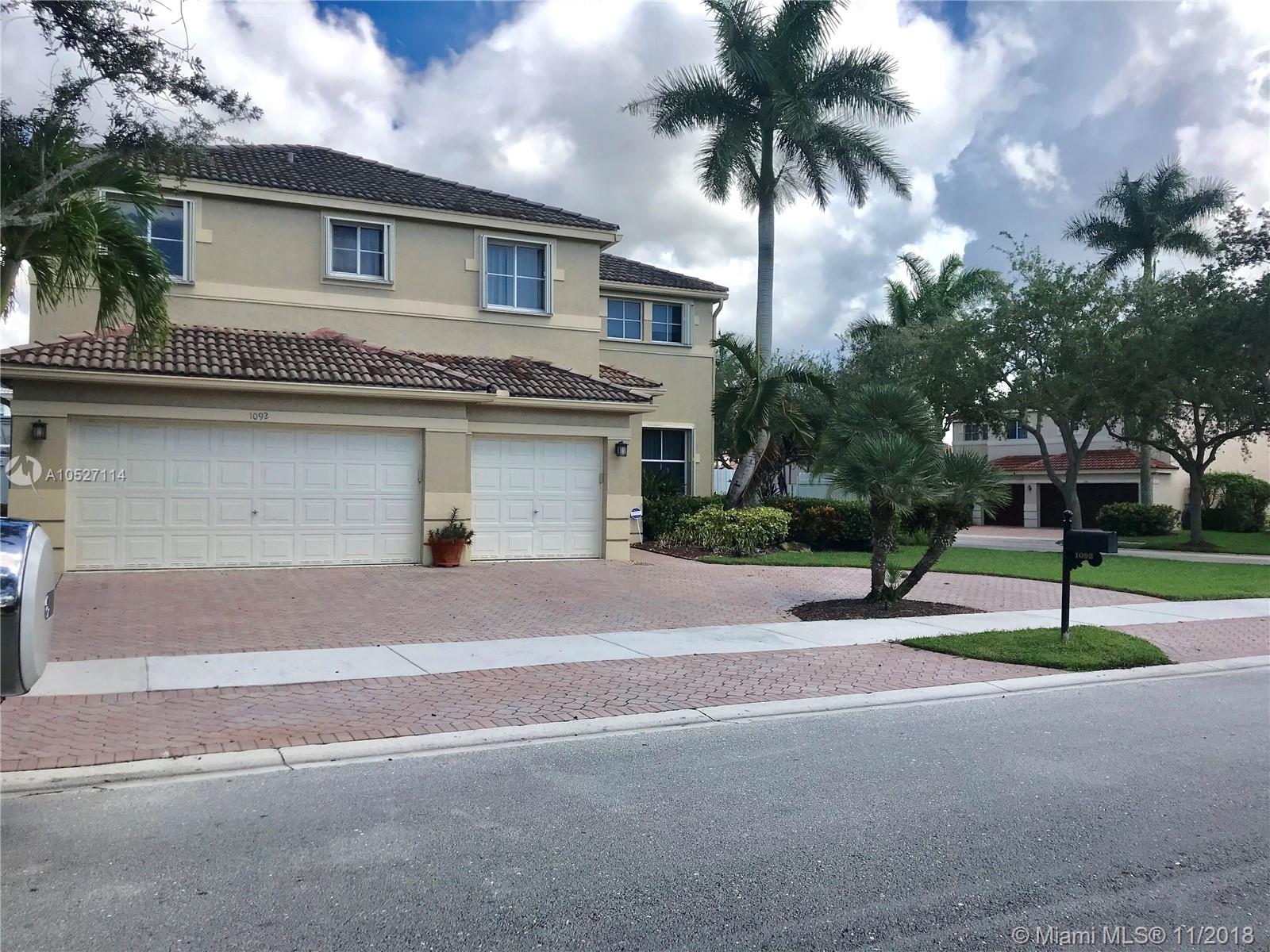 SPECTACULAR 6 BEDROOMS 4 BATHROOMS CORNER LOT IN THE MEADOWS, LARGE SCREENED PATIO, CIRCULAR DRIVEWAY, 3 CAR GARAGE, MASTER SUITE (EITHER SUITE/GYM OR NURSERY) WITH HIS/HERS CLOSETS, NEW APPLIANCES AND AC UNIT, KITCHEN WITH EAT-IN BREAKFAST AREA, FORMAL DINING AND LIVING ROOM. UPGRADED BATHROOMS, GUEST BEDROOM AND FULL BATHROOM ON 1ST FLOOR, ACCORDION SHUTTERS, BEAUTIFUL LANDSCAPE WITH FRUIT TREES. PRIVATE COMMUNITY WITH FULL TIME GUARD GATED, COMMUNITY POOL AND BASKETBALL COURT.