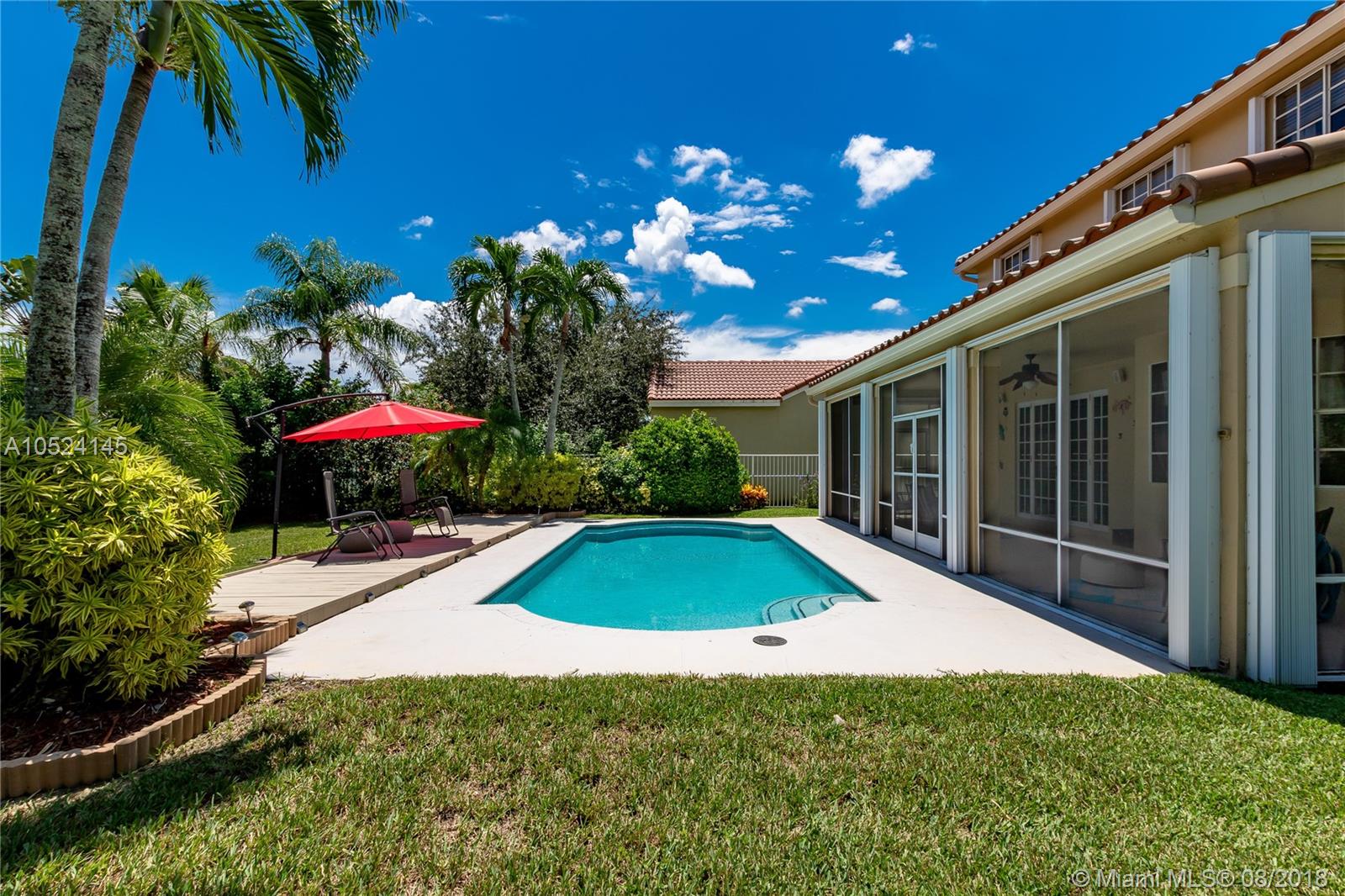 This elegant and meticulously kept pool home boasts a new barrel tile roof, crown molding, porcelain tile floors, an updated kitchen and bathrooms, a spacious screened veranda and plenty of light and bright living space to entertain! It is located in an area that is envied for its consistent top "A"-rated schools and it is abundant with recreational parks for everyone in the family to enjoy, which feature: skate boarding ramps, roller hockey rinks, picnic areas, jogging trails, fishing lakes and numerous soccer, football and baseball play fields. The golfers in your household will also find ample choices of nearby public links to play, and the shoppers in your household will enjoy a fantastic spectrum of shopping venues. Don't miss out on this incredible opportunity!