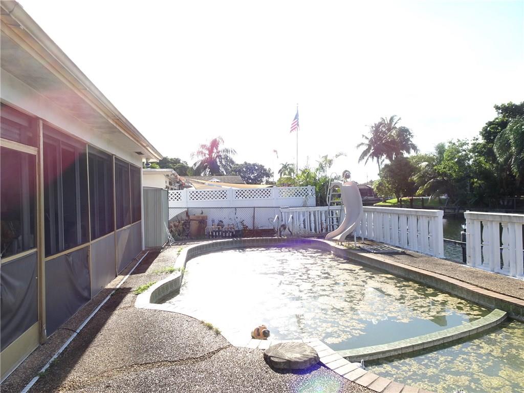 Waterfront Pool home with beautiful water views from your Ocean access canal. Bring your boat and lets make this your dream home. Home needs to be renovated as well as boat dock and lift. Great opportunity to create and do your upgrades with your own personal touch and make this your own pool, ocean access paradise. Gas range and newer washer. 3 bedroom, 2& 1/2 bath, huge screened patio overlooking pool, canal. Spacious interior. Circular driveway, 2 car garage. East of I-95, close to the beach.