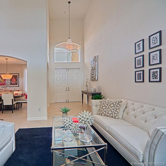 Exquisitely renovated large 4 bedroom, 2.5 bath pool home in the gated community of Goldvue in Doral. From the moment you walk in you’ll love the Vaulted Ceiling and Natural lighting in the Living and Dining rooms. Plenty of space for cooking and entertaining in the Kitchen equipped with SS Appliances and Granite countertops. Elegant Chandeliers and Drapes are included. Hardwood floor throughout second floor and staircase. Large Master Bedroom with sitting area and large Balcony which overlooks the plush landscaping from the Golf Course. Private backyard with pavers and relaxing pool for hours of entertaining. 2 New ACs under 1 yr old. Low HOA fees includes: Community Pool, Children's playground, Mowing Front Lawn, Fiber Optic Internet, Basic TV Package and 24 hour Security Guard