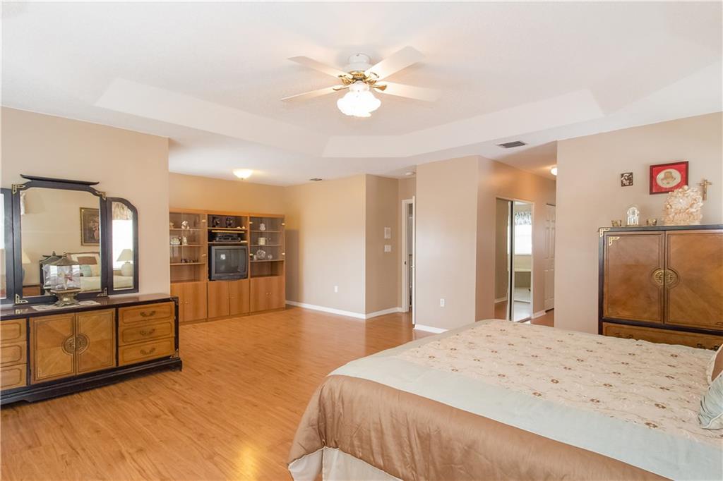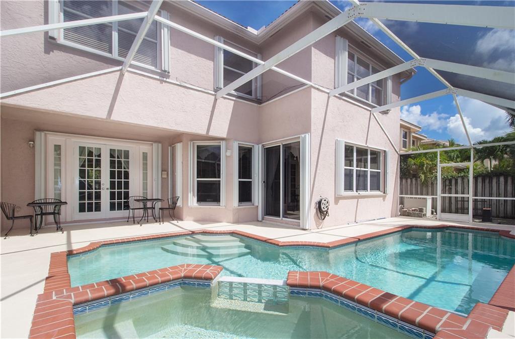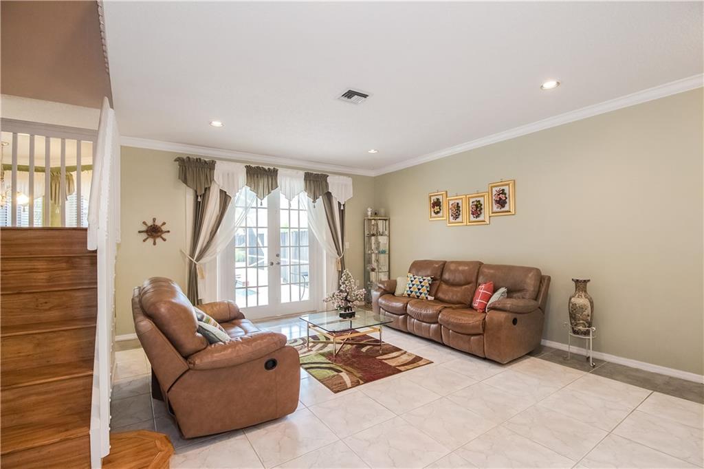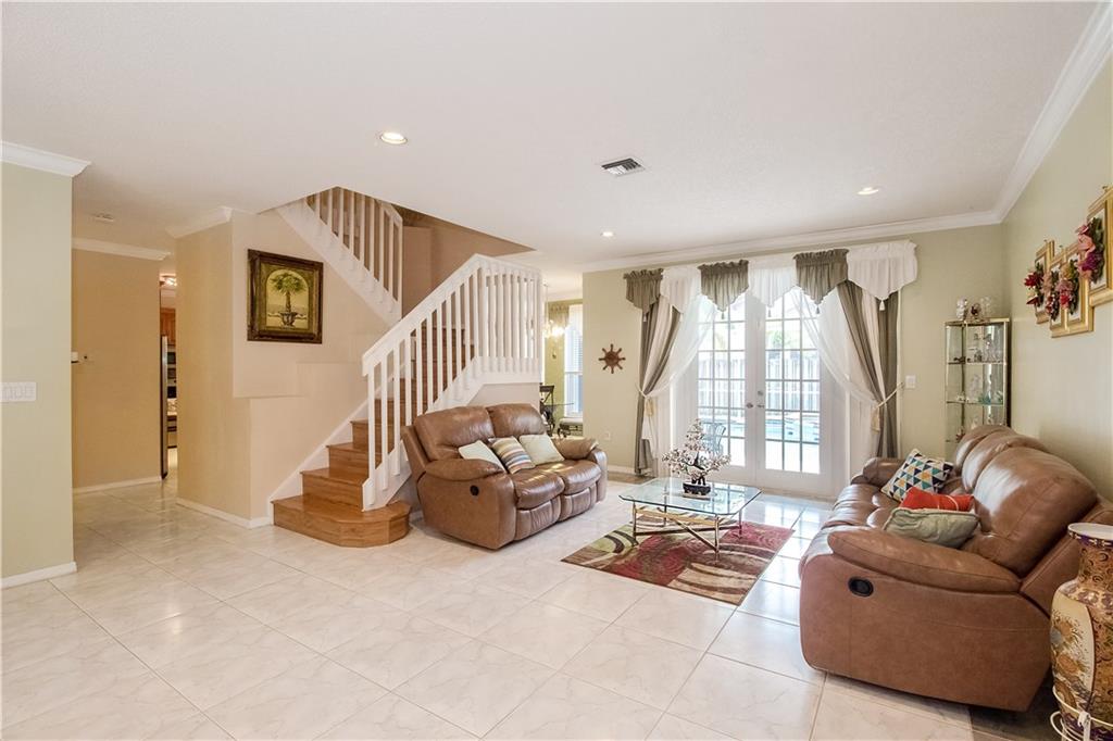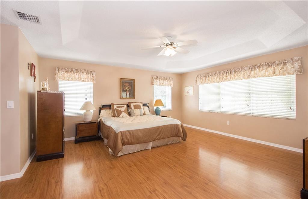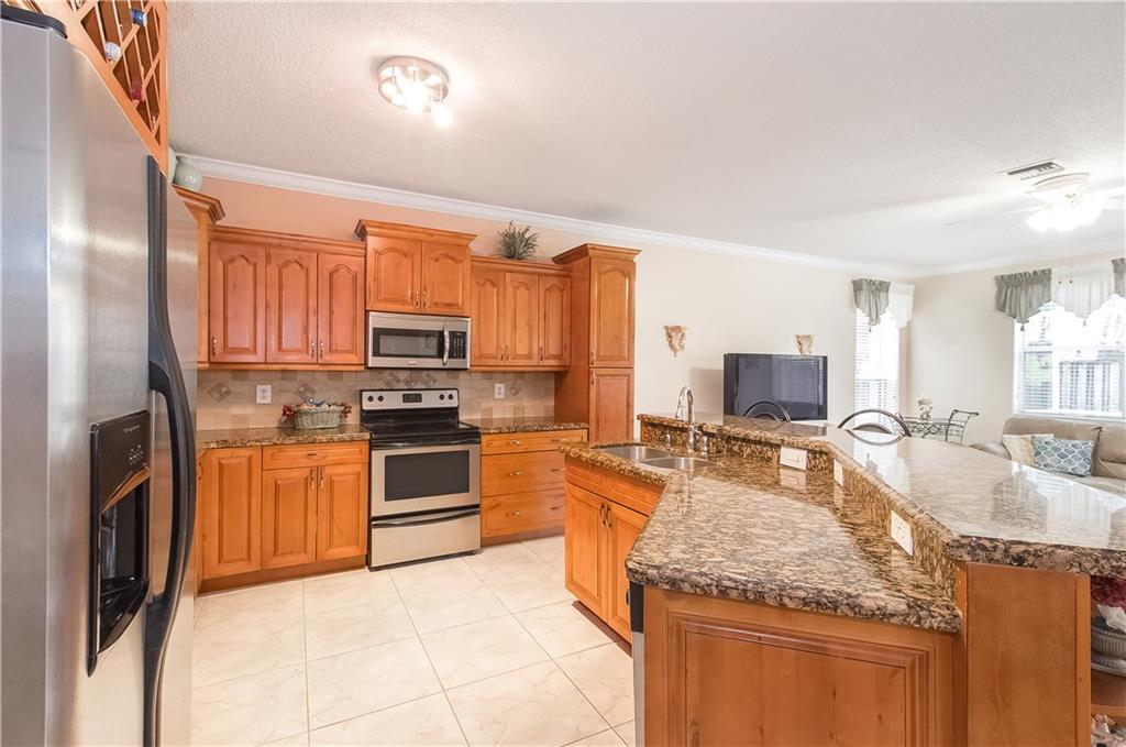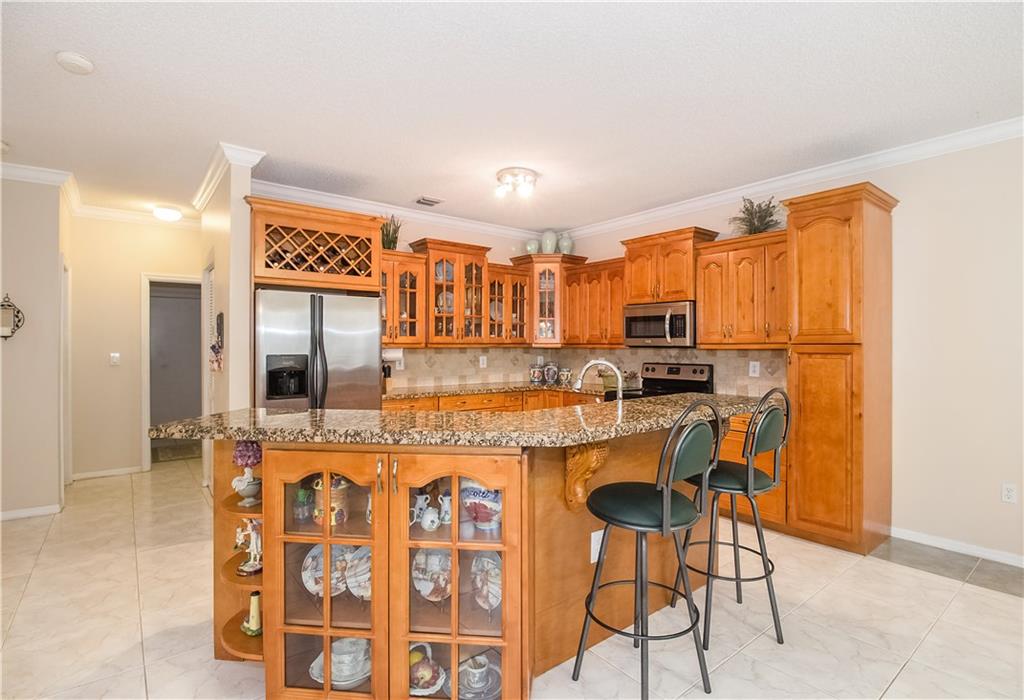 Gorgeous 5/3 pool home in manned guard gated section of Silver Lakes! Tile flooring on first floor, wood flooring on stairs & upper level. Bedroom & full bath located downstairs. Completely upgraded kitchen w/granite countertops, hardwood cabinets & drawers. Newer ss appliances, snack bar & breakfast area. 2 full baths are completely upgraded w/new flooring & brand new vanities. Expansive master w/sitting area. Backyard is perfect to relax by heated pool. 2 years old AC. Protected by accordion shutters.