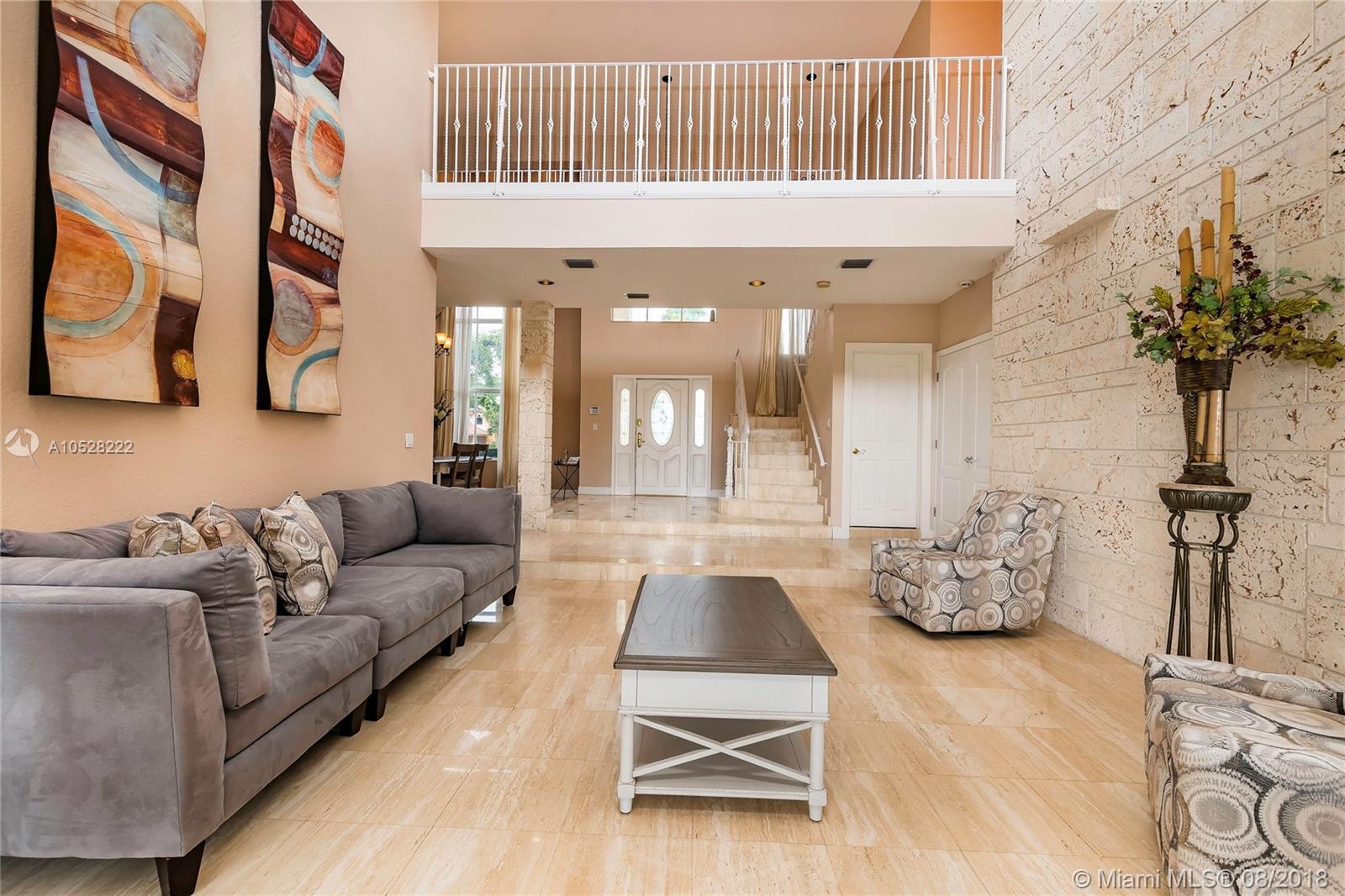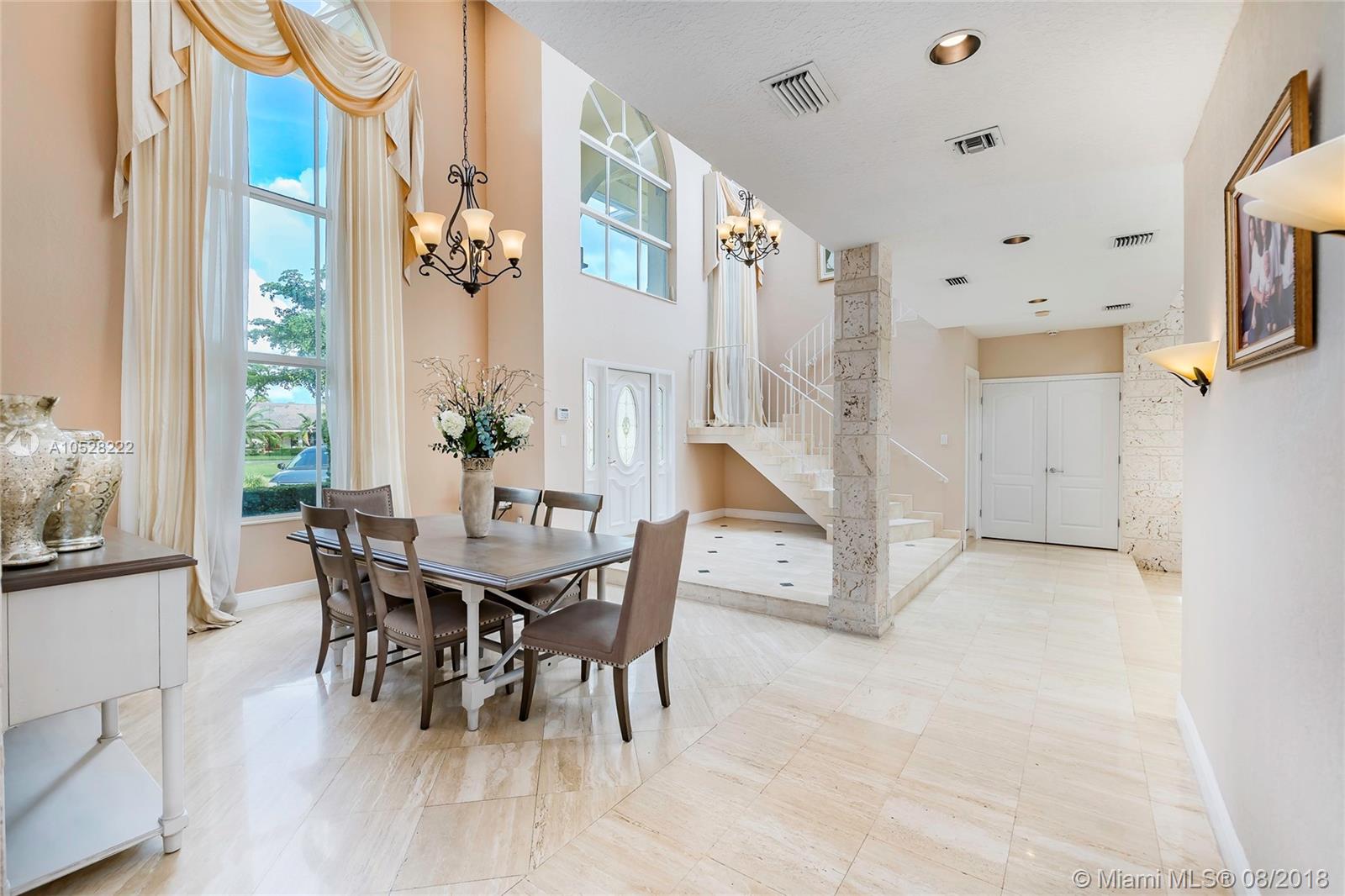 Fabulous, two-story, custom-built home in Country Club of Miami. Terrace, pool, golf course.Featuring 5,700 sq ft of spacious, flowing living areas, high ceilings, 8 bedrooms,5 ½ baths including 2 huge master suites on a split floor plan with master baths,each with their own private balcony overlooking the pool and golf course.The open, eat-in kitchen leads to a covered terrace and elegant pool deck, both at the edge of the golf course - the perfect setting for elegant entertaining outdoors during Miami’s balmy days and nights. Details are lovely and easy to integrate into any decor.Marble flooring- first floor, wood laminate flooring- second All bathrooms were tastefully remodeled. Paved,circular driveway,2-car garage,and for more privacy, the 12,500 sqft lot is situated on cul-de-sac.