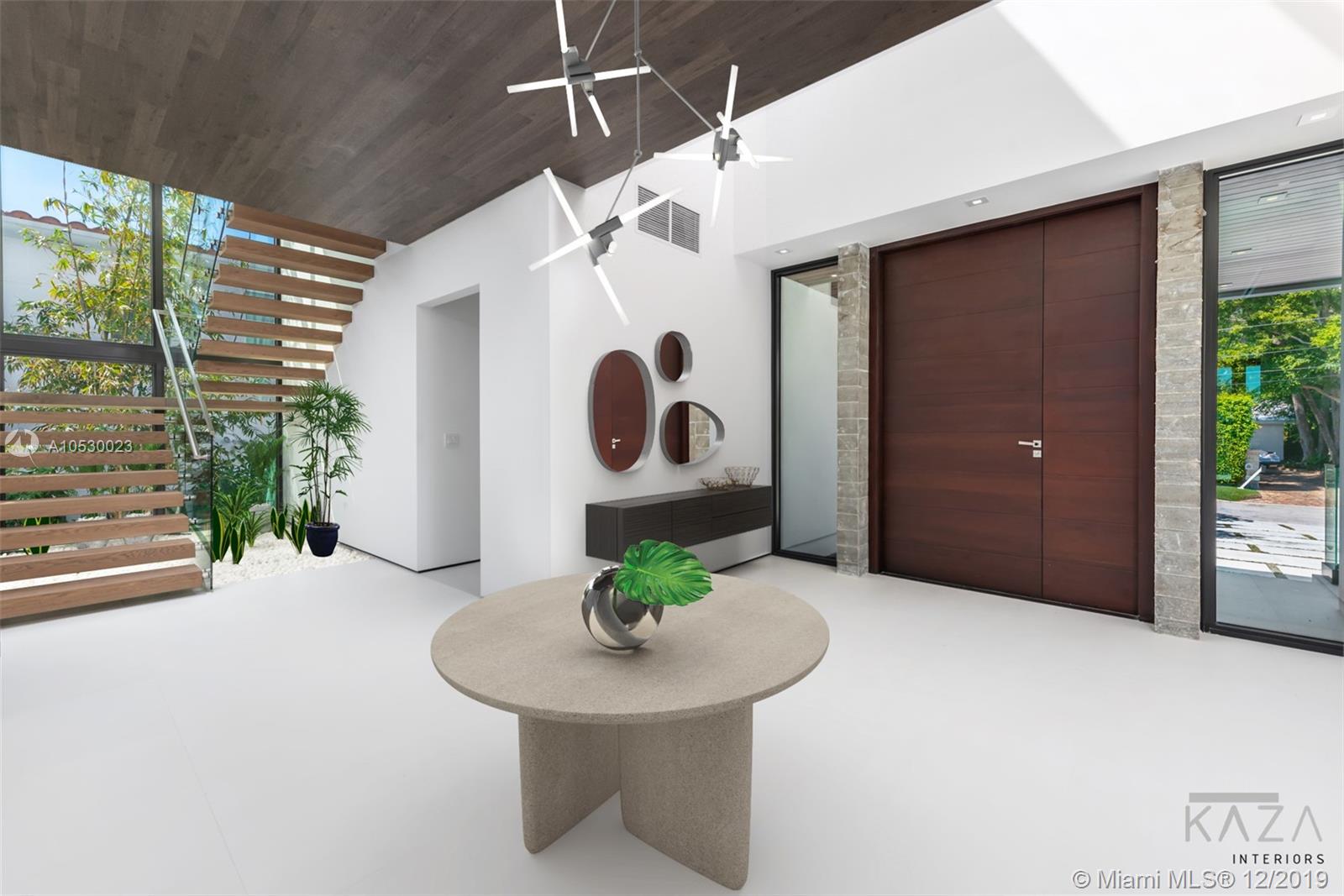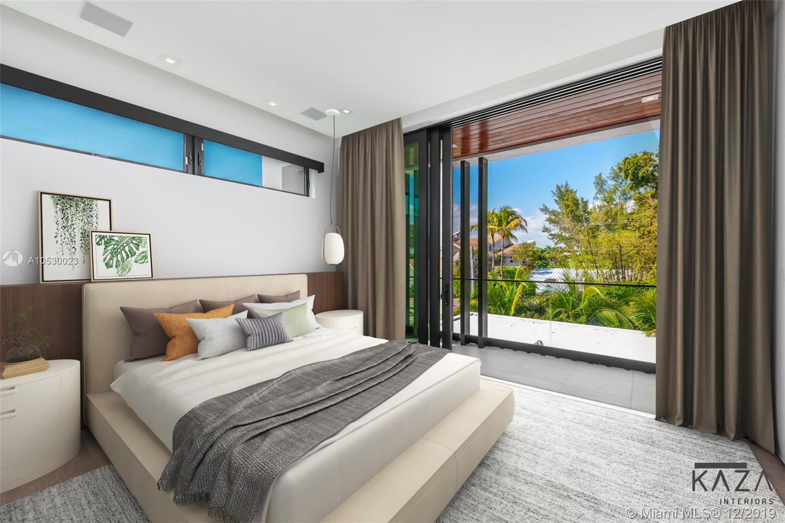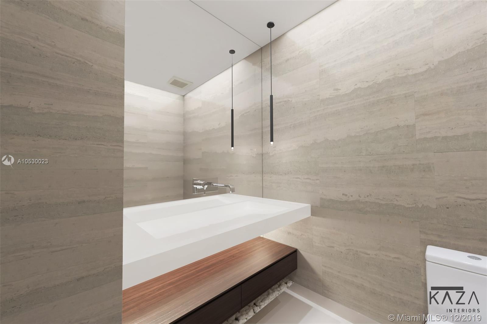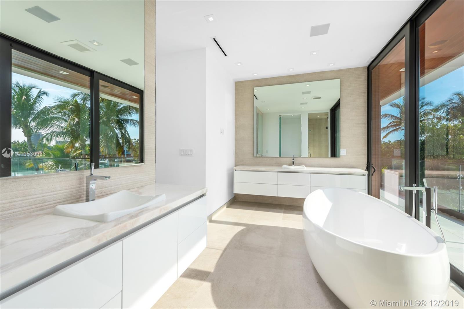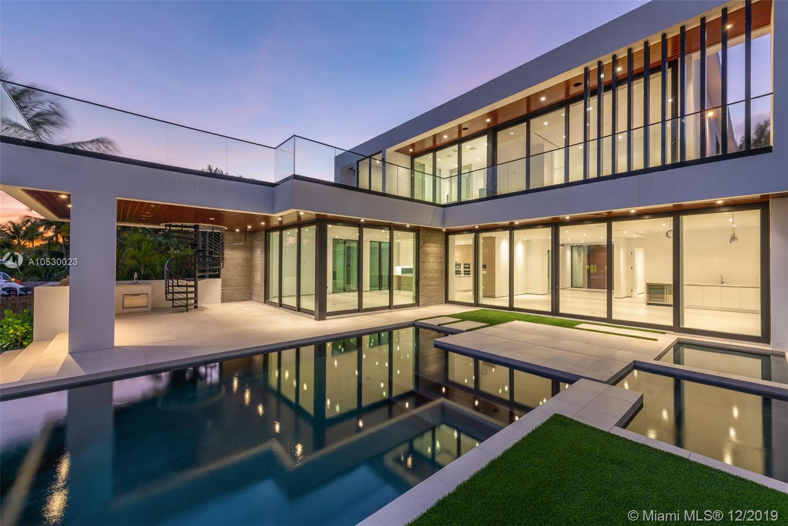 Spectacular water views from the moment you step inside this modern architectural gem! High end finishes & superb attention to detail throughout. Floating steps & gorgeous water feature greet you as you ascend to the mahogany front door. Floor to ceiling impact glass & soaring 12-24 ft ceilings invite lots of natural light. Enjoy open living areas, private elevator & Wolf/Subzero kitchen boasting enormous island & endless storage. Perfect home for indoor & outdoor entertaining w/it's oversized roof top terrace & sun deck, outdoor summer kitchen, midnight bar, infinity edge pool, Jacuzzi & 68 ft of prime waterfront w/boat dock. An ideal family retreat in this secluded neighborhood! Walk to beach, schools, restaurants, Bal Harbour Shops & houses of worship. Stunning home! No expense spared!