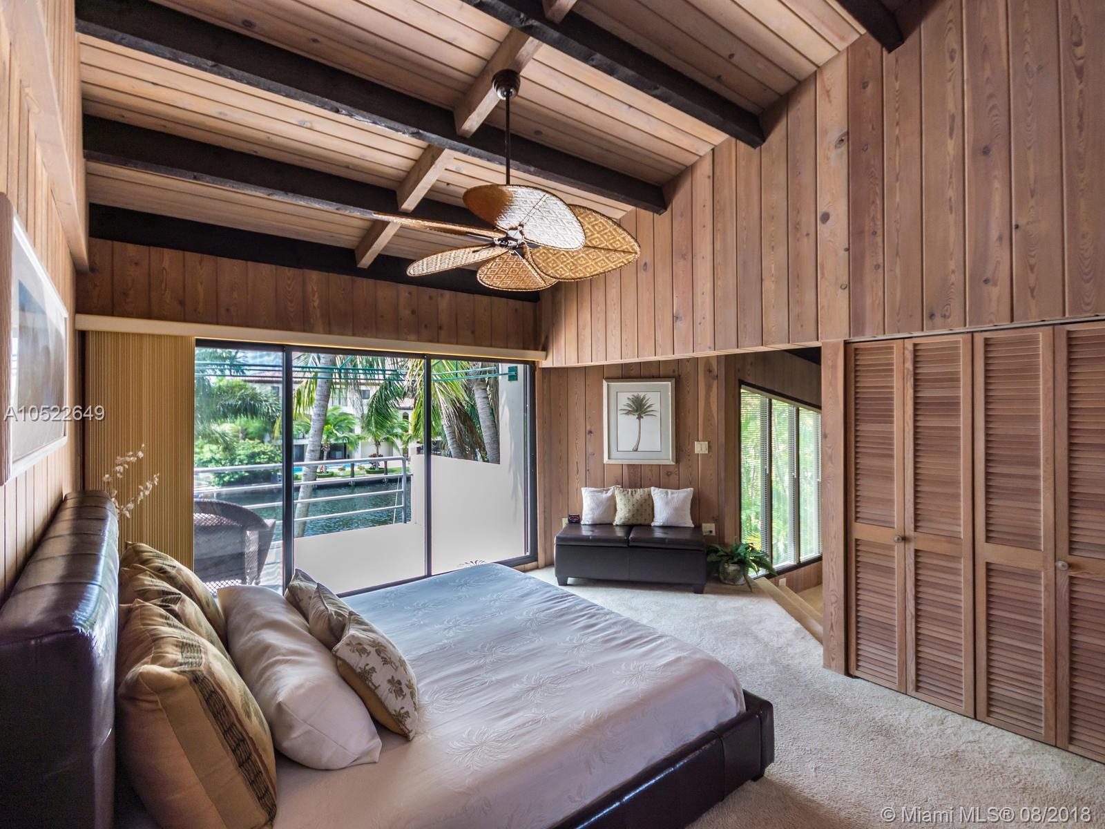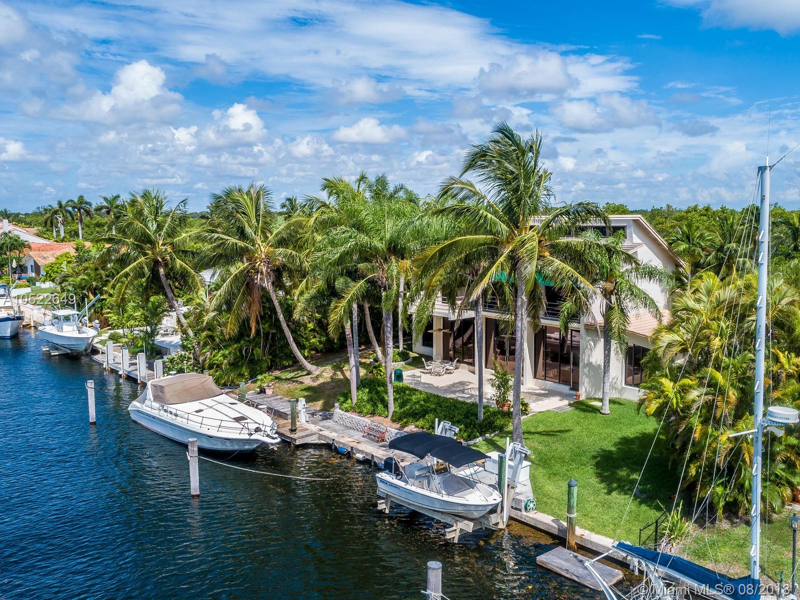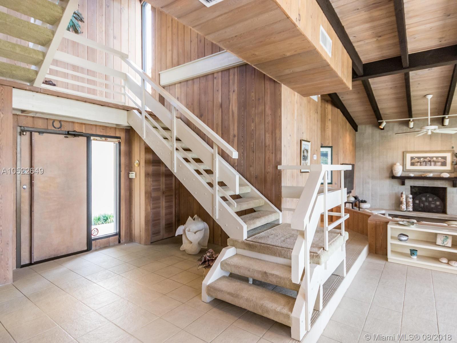 Direct ocean access home with 100’ seawall, dock & davits on wide waterway, no bridges to Biscayne Bay in gated Gables by the Sea. 1970 3/2.5 2-story home on 11,500 SF waterfront lot filled w/artistically fun features incl 11.5’ open wood beam ceilings. Light filled open floor plan, waterway views from every room. Galley style kitchen & breakfast bar perfect for entertaining. 2-car separate garage/workshop. Ideal opportunity for renovation or new build. Guard-gated community, top schools.