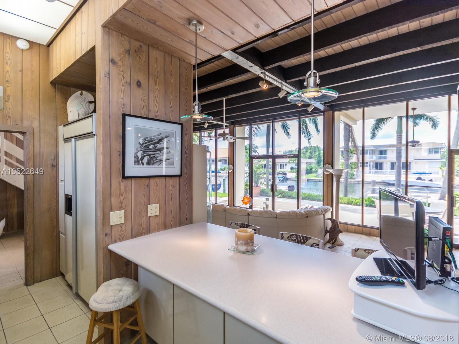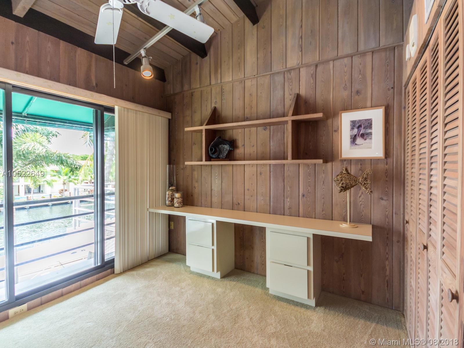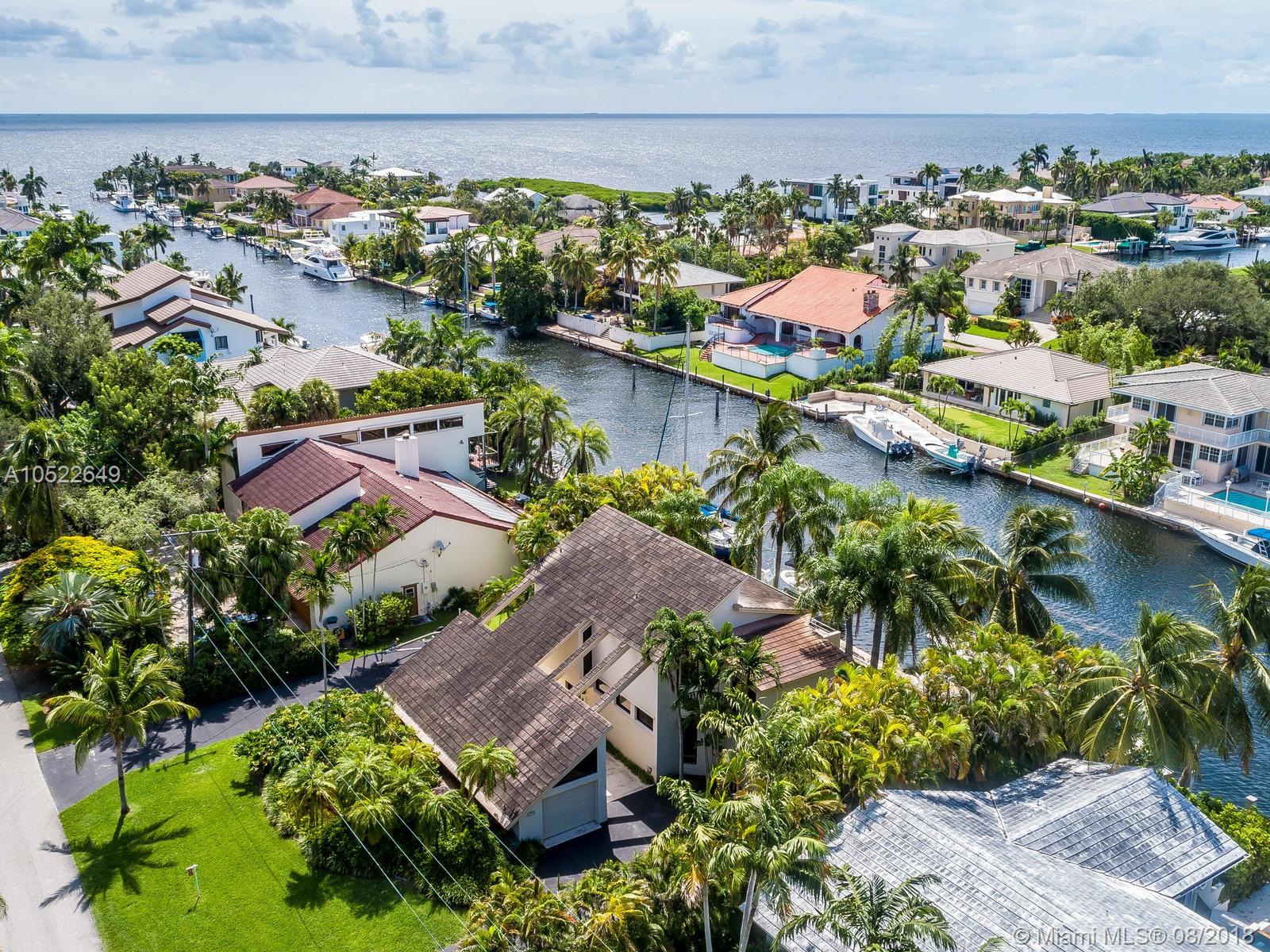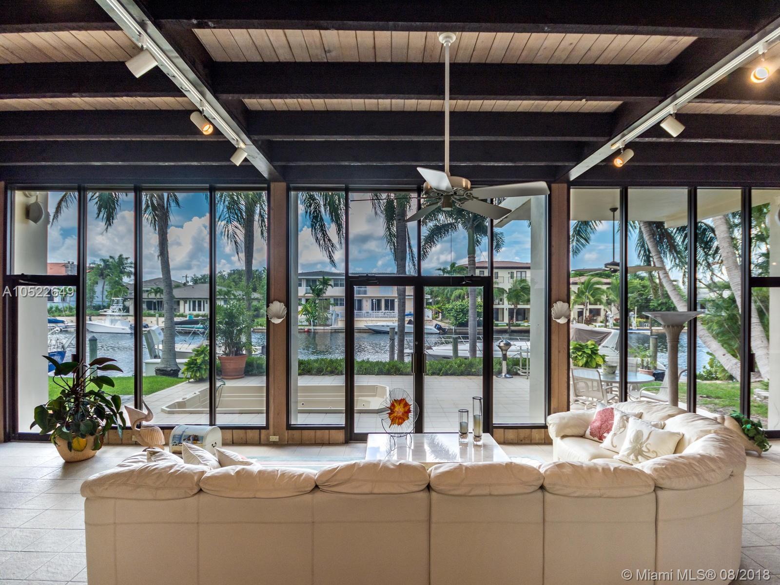 Direct ocean access home with 100’ seawall, dock & davits on wide waterway, no bridges to Biscayne Bay in gated Gables by the Sea. 1970 3/2.5 2-story home on 11,500 SF waterfront lot filled w/artistically fun features incl 11.5’ open wood beam ceilings. Light filled open floor plan, waterway views from every room. Galley style kitchen & breakfast bar perfect for entertaining. 2-car separate garage/workshop. Ideal opportunity for renovation or new build. Guard-gated community, top schools.