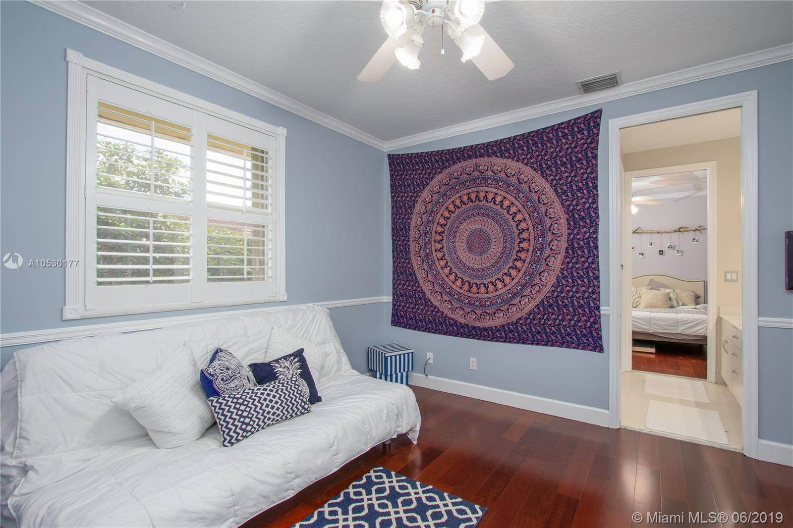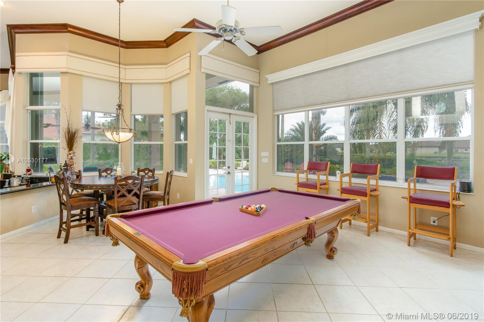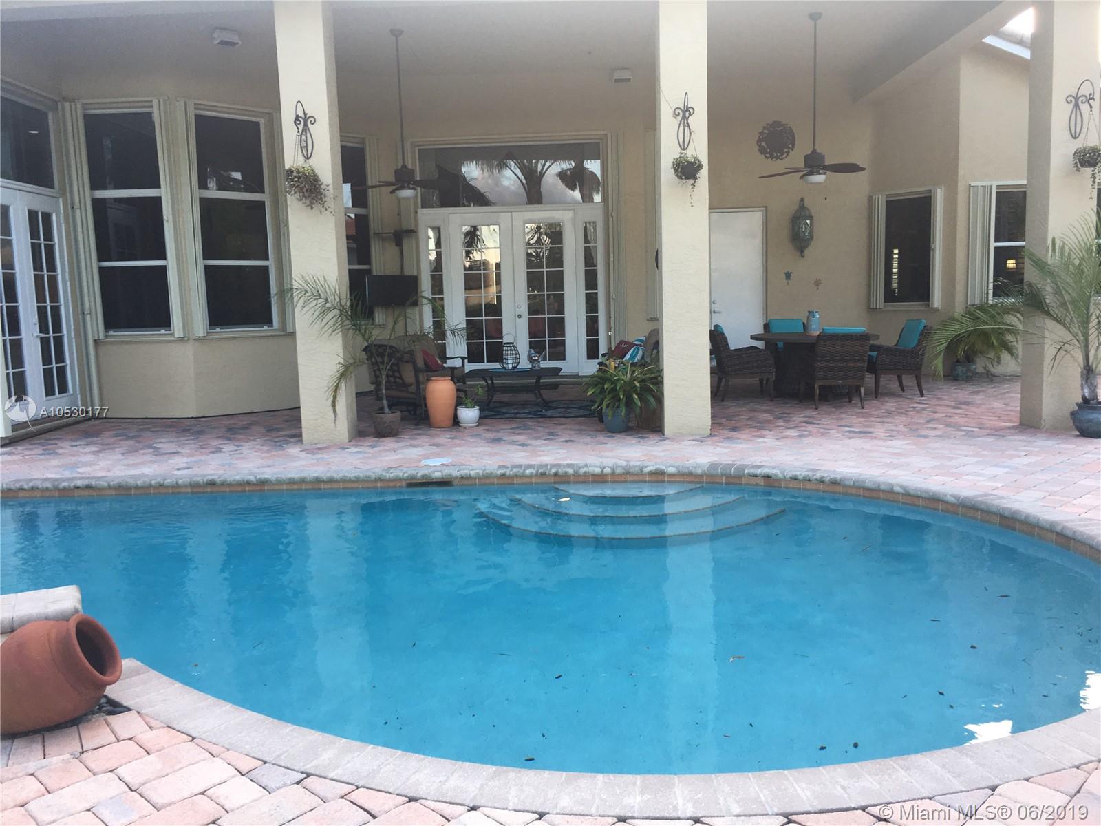 Entertain in the spacious open living room, the sunken bar, on the deck by the fire pit, or head to the patio to relax in the pool with waterfall. Features ceramic tile in the living areas and wood in the bedrooms. The living areas and master bedroom overlook the patio and pool. The master is huge at 23 X 14 with dual walk-in closets leading to the master bath with a soaking tub and separate shower. This home has a newer roof still under warranty. Two air conditioners and the water heater have been replaced. Access the attic through two entrances for massive storage. The community is gated and includes a park with sand volleyball, ball court, and play accessories. Low HOA fees.